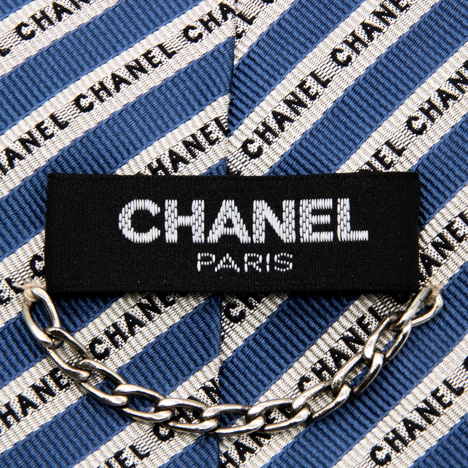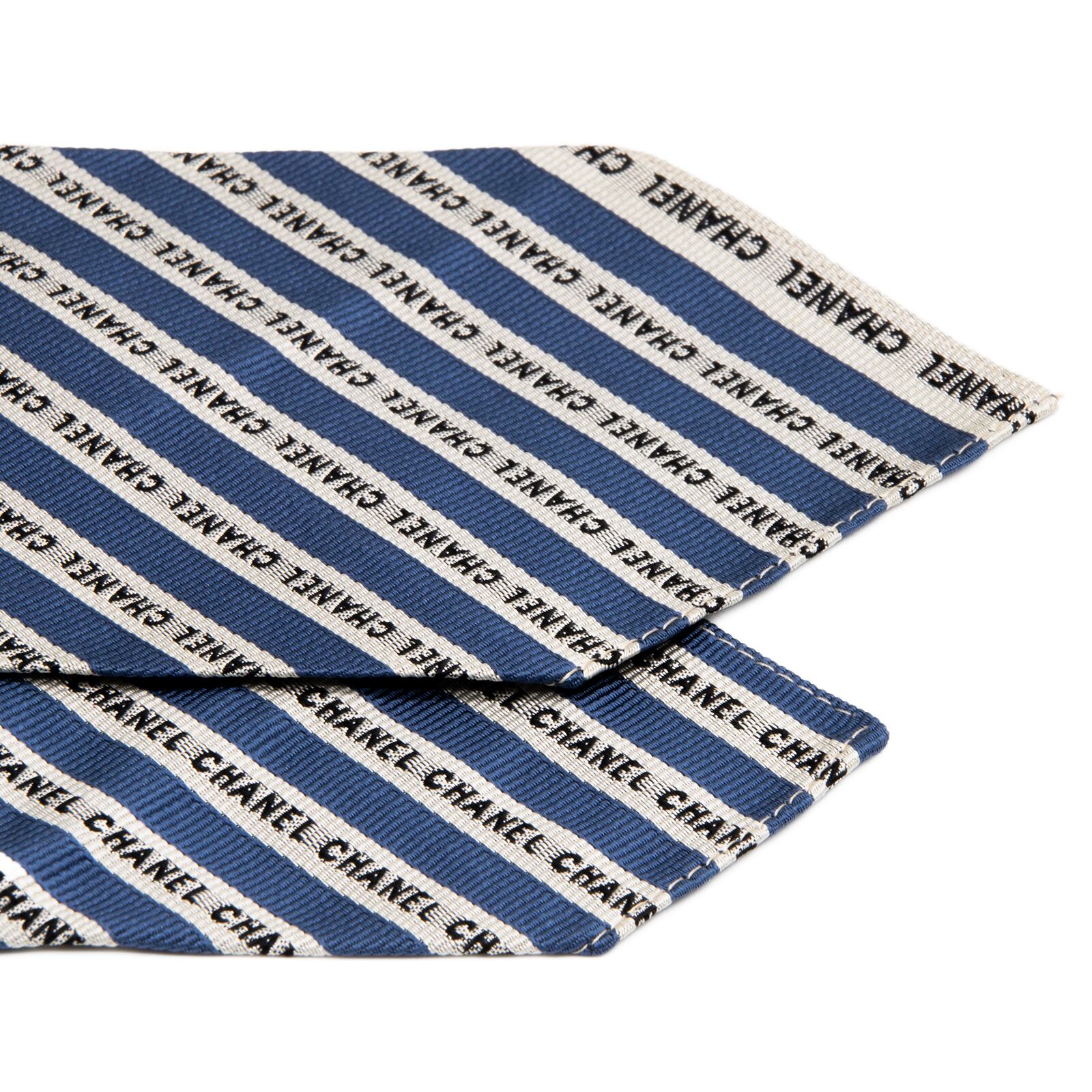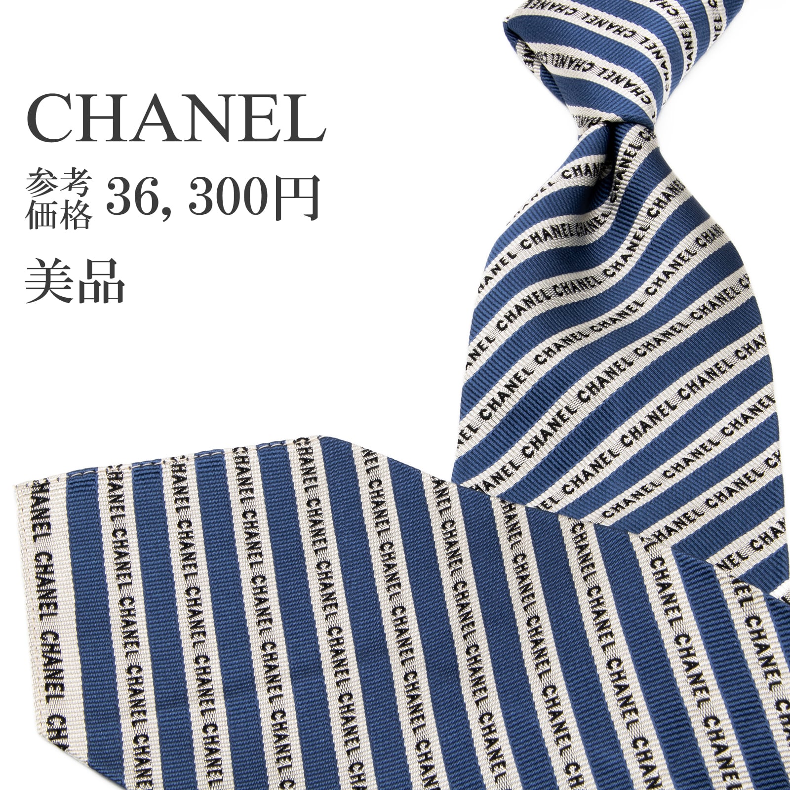 送料無料 シャネル ネクタイ レギュラータイ ジャガード シルク 青 ブルー シルバー 黒 ストライプ ロゴ シンプル ハイブランド 綺麗 P820