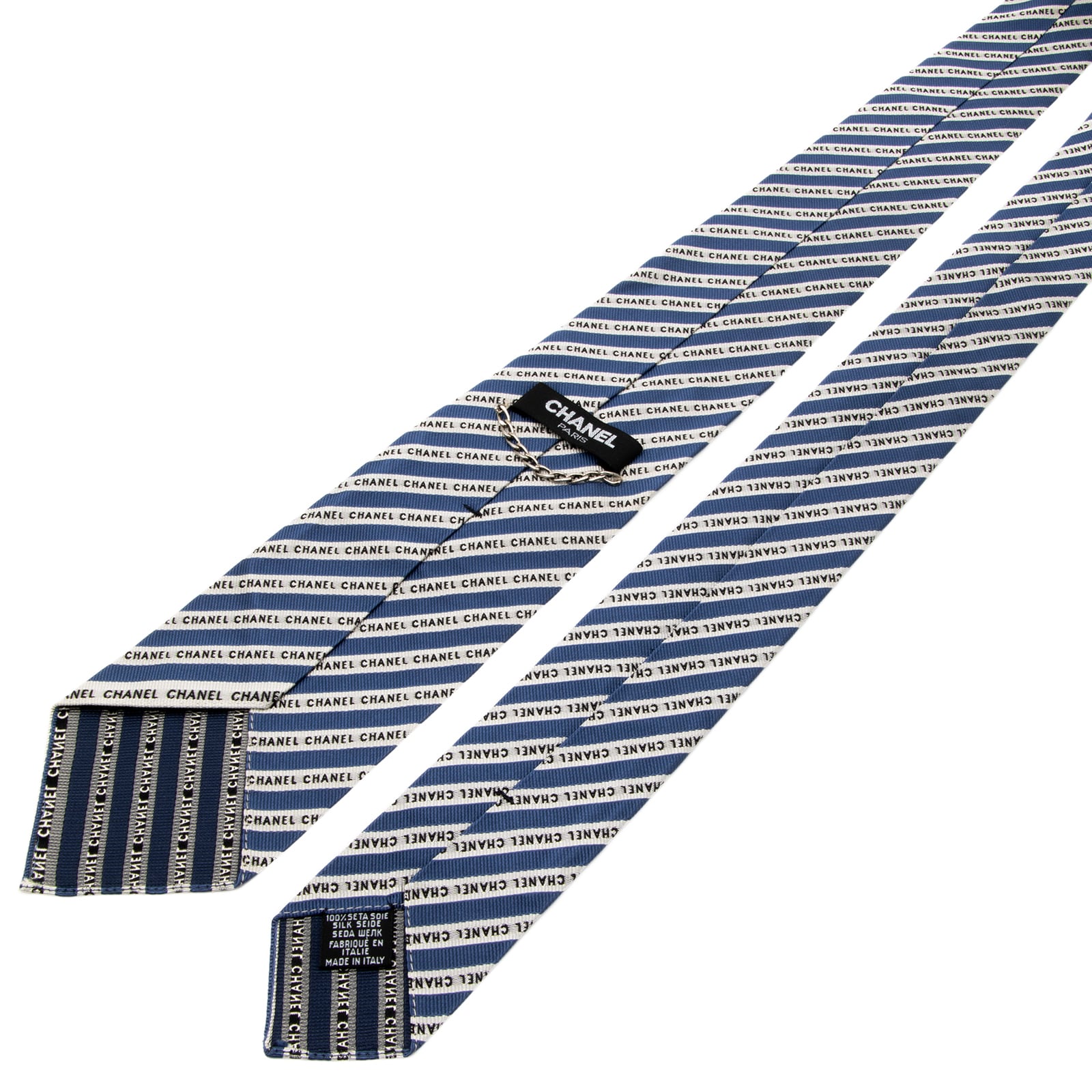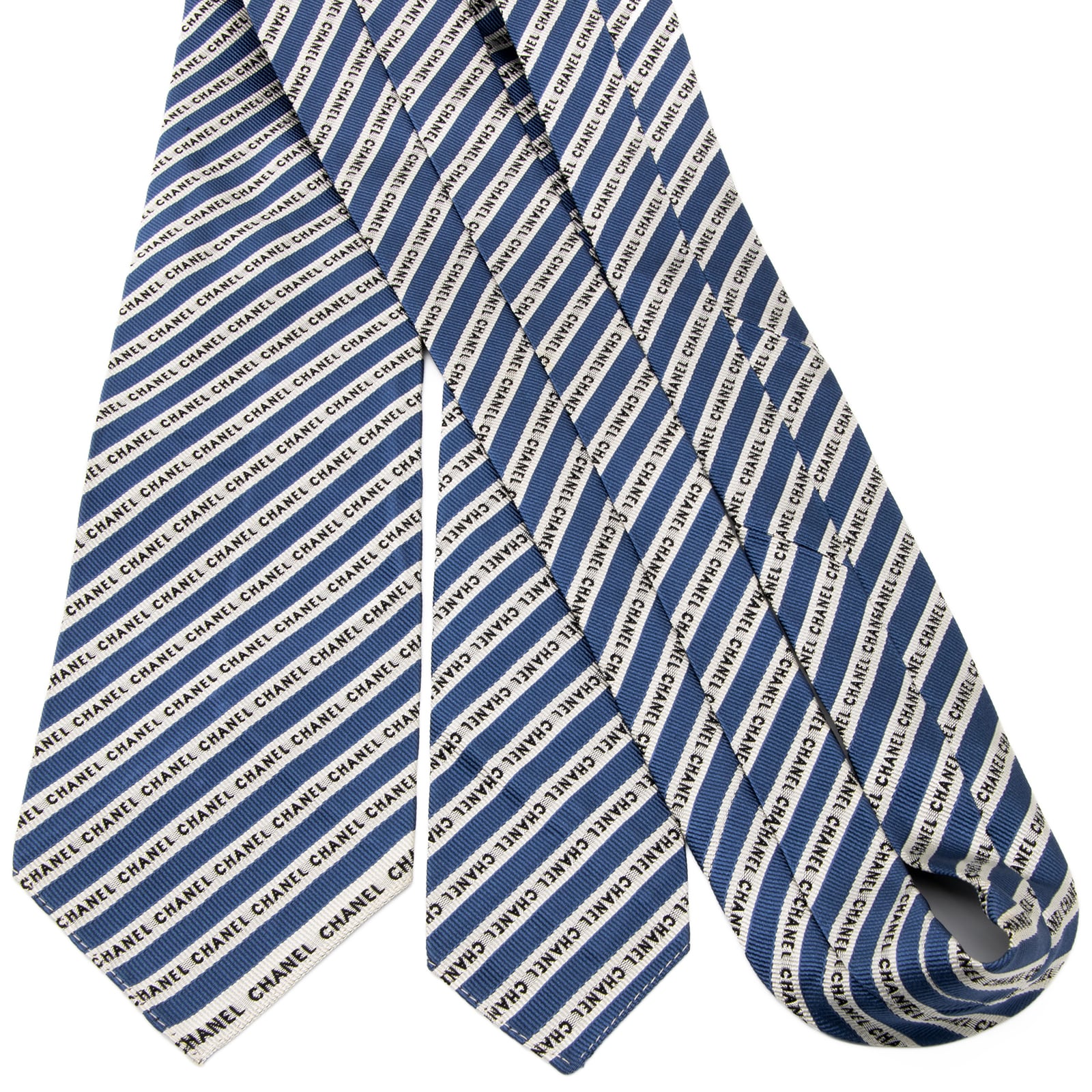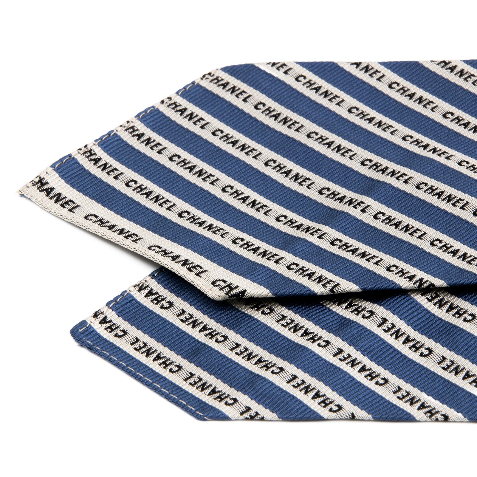 送料無料 シャネル ネクタイ レギュラータイ ジャガード シルク 青 ブルー シルバー 黒 ストライプ ロゴ シンプル ハイブランド 綺麗 P820