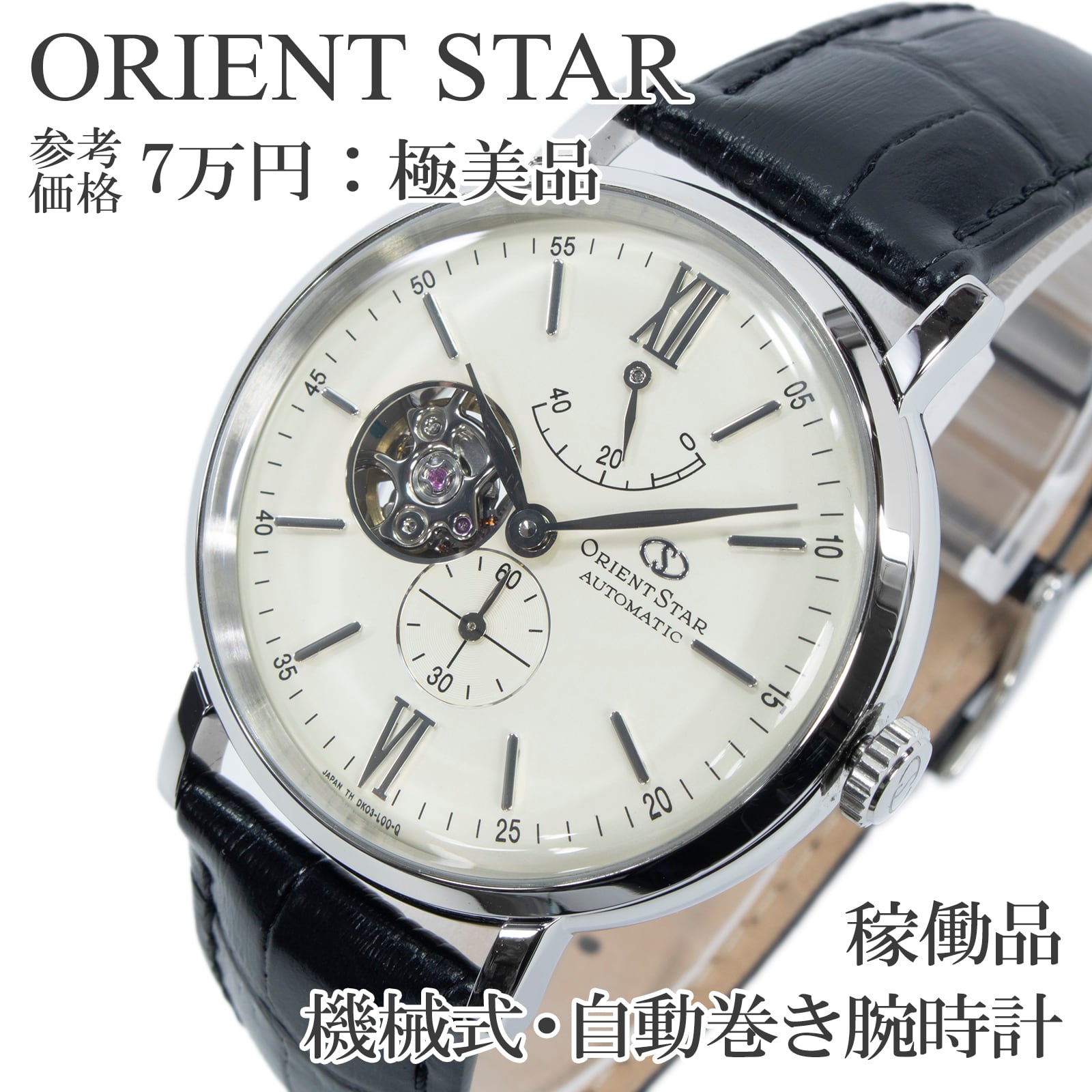 稼働品 送料無料 オリエントスター 腕時計 自動巻き メンズ クラシック セミスケルトン DK03-C0-B WZ0131DK 白 オープンハート 綺麗 X524