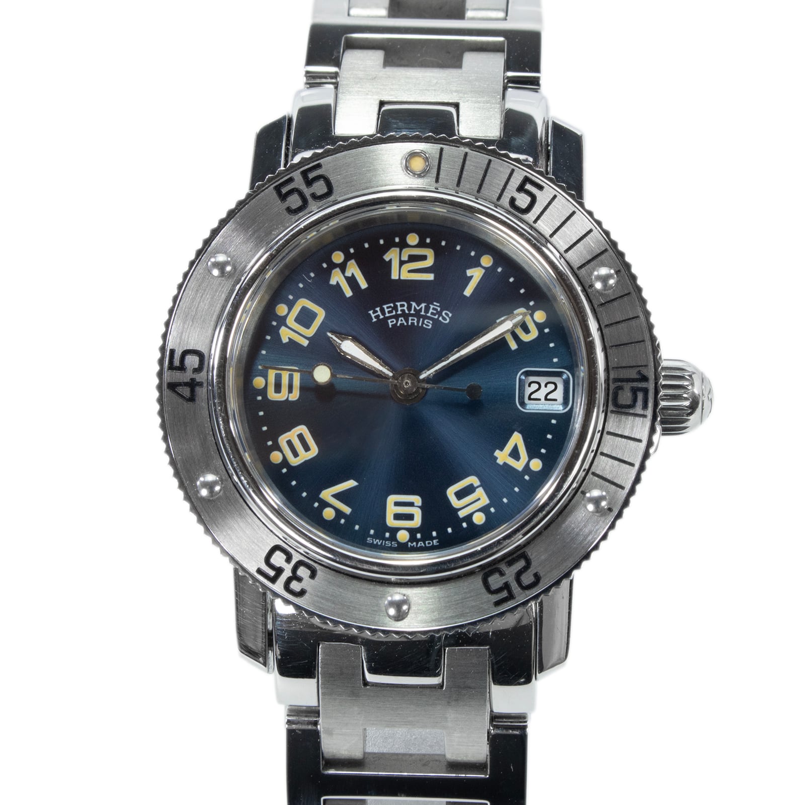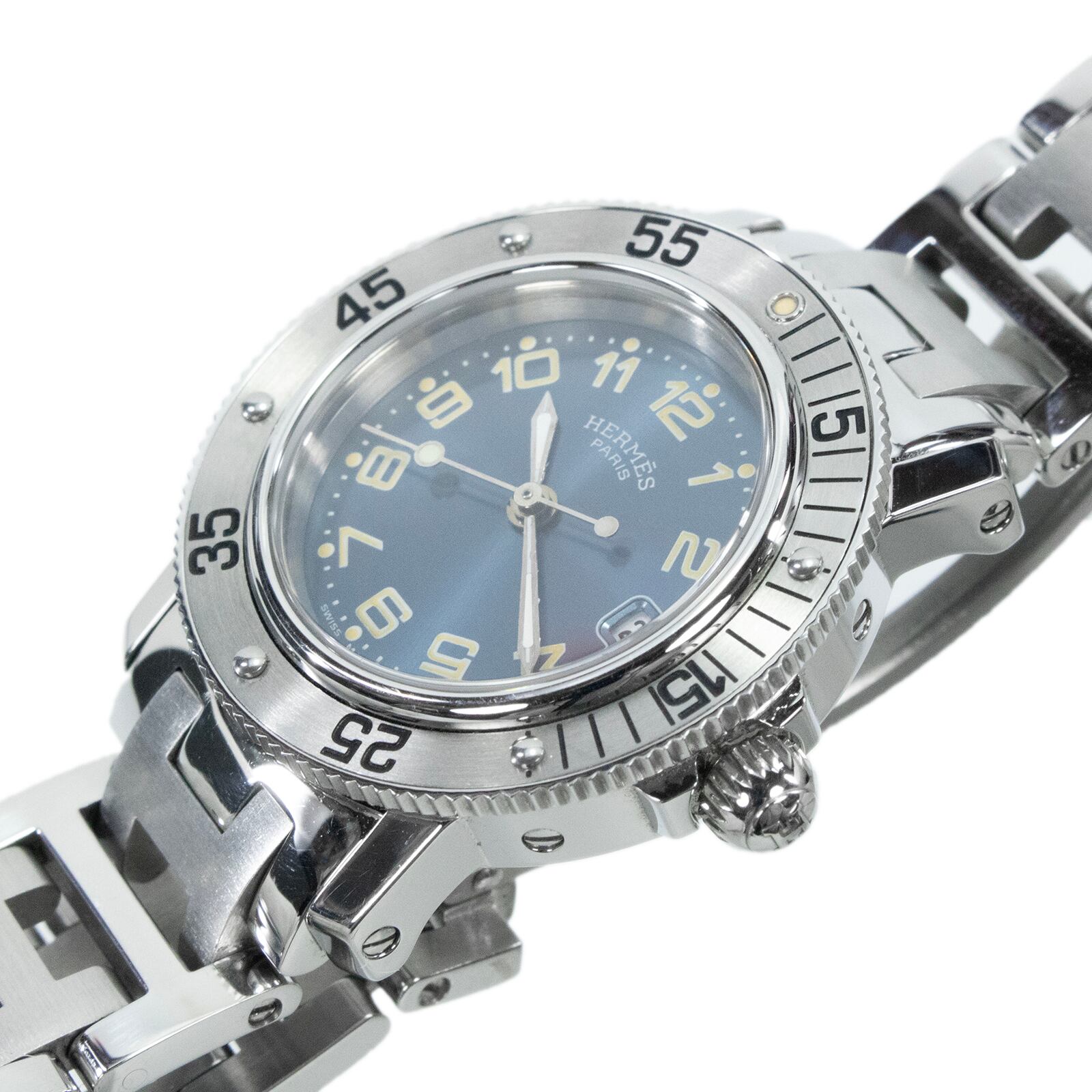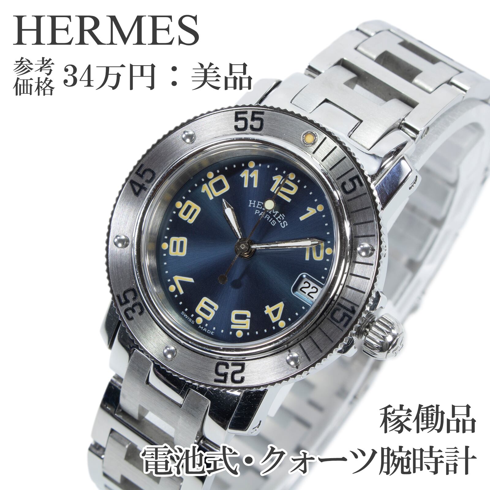 稼働品 送料無料 エルメス 腕時計 クォーツ 3針 レディース クリッパーダイバー CL5.210 ネイビーブルー H文字ベルト ダイバーズ 綺麗 X532