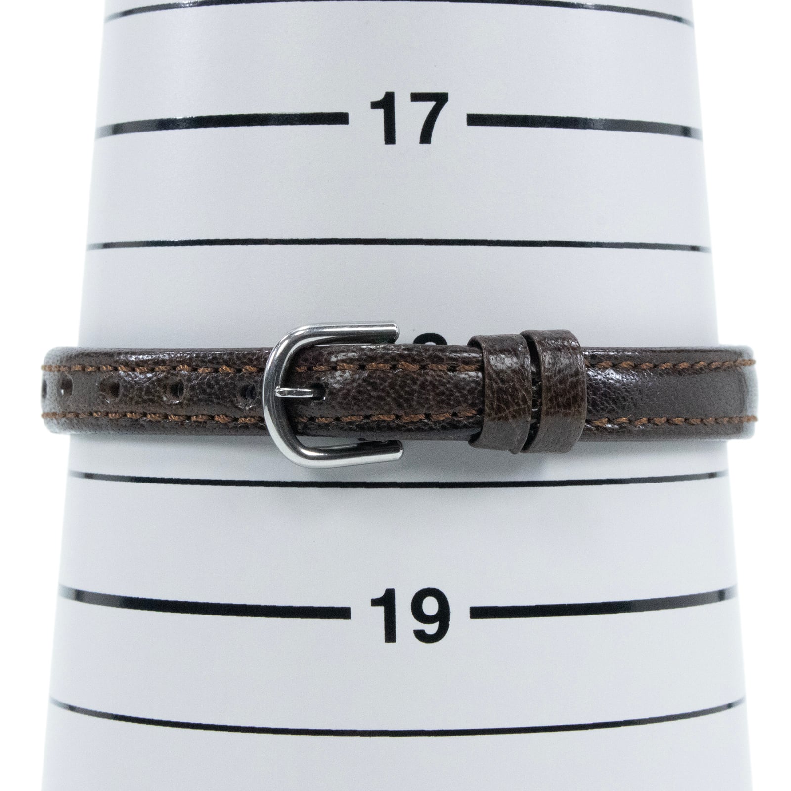 落ち着きのあるダークブラウンのレザーベルトが、全体をシックに引き締めております。