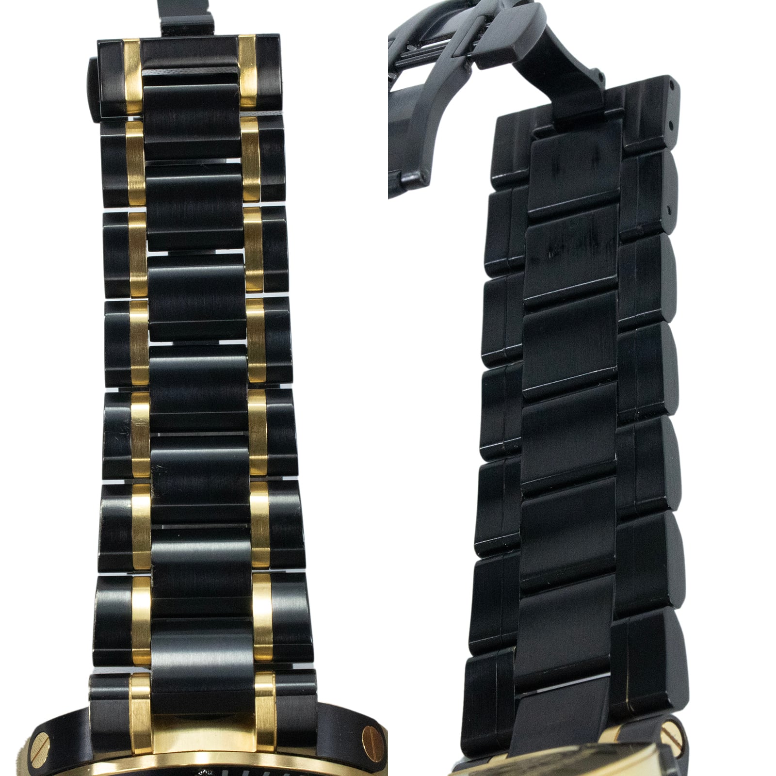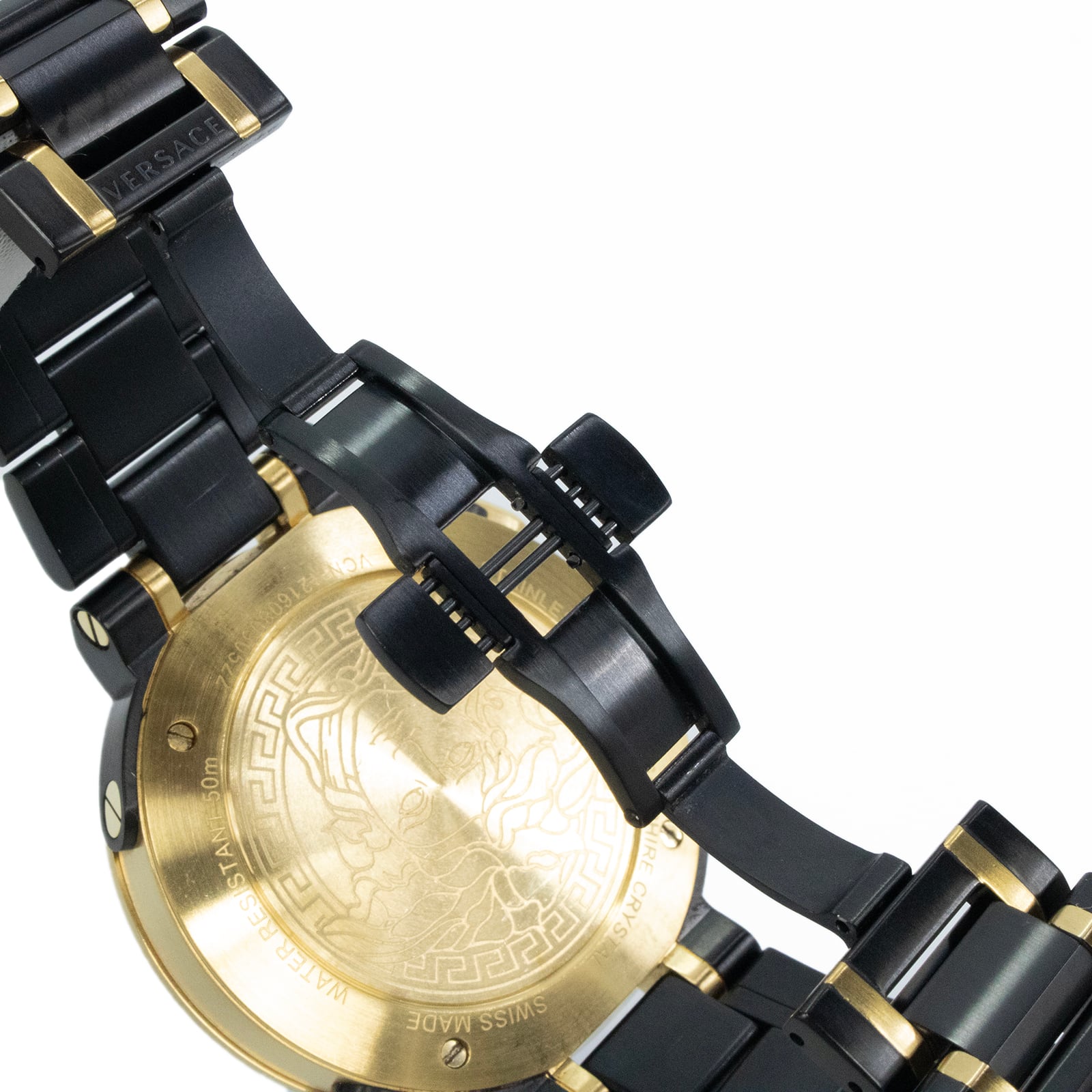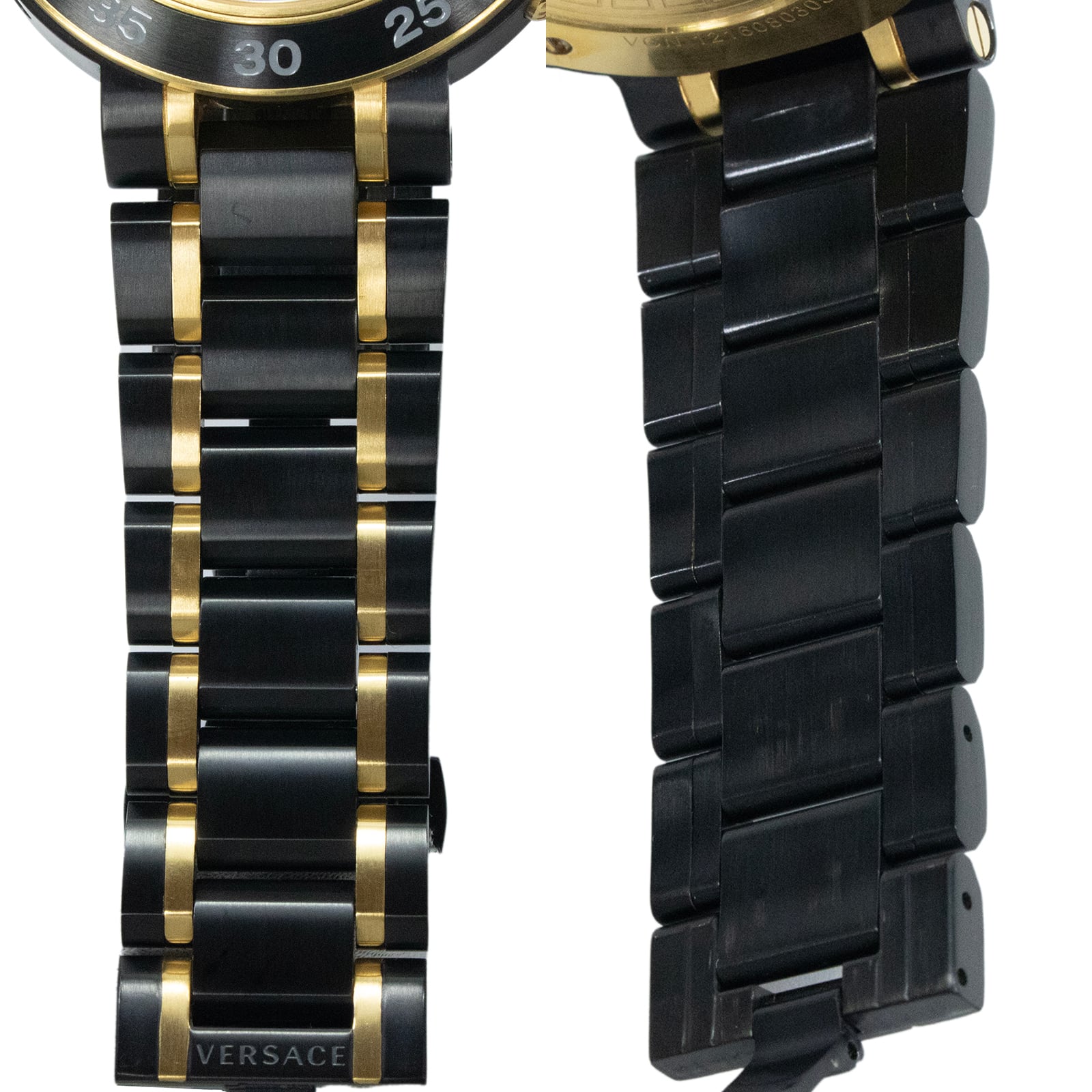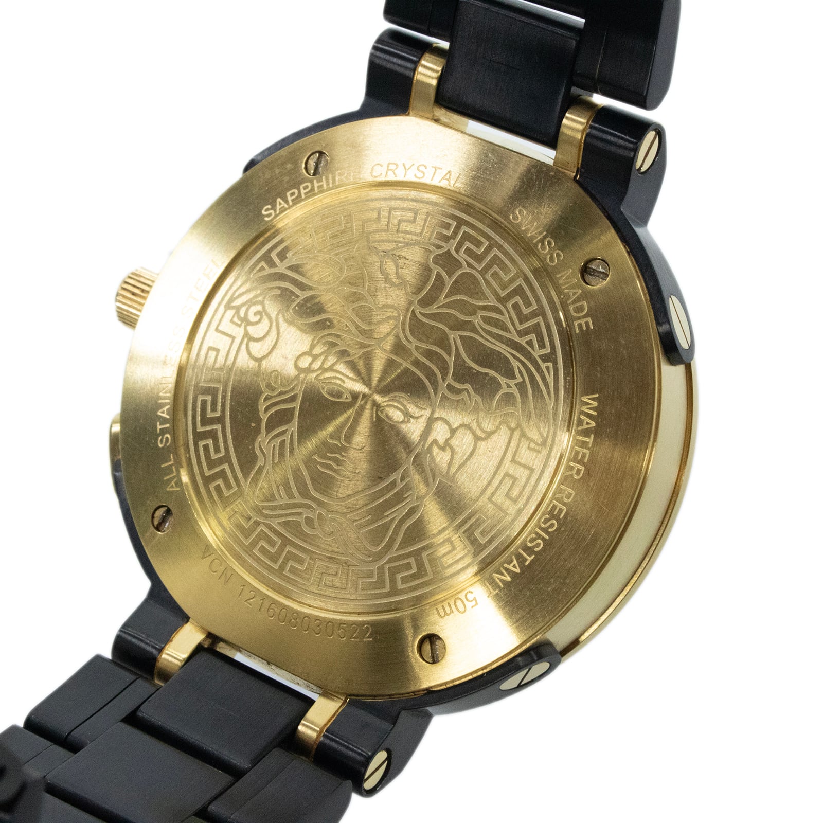 稼働品 送料無料 ヴェルサーチェ 腕時計 クォーツ メンズ Vエクストリームプロ VCN040017 黒 ゴールド ビッグデイト メドゥーサ ロゴ Q228