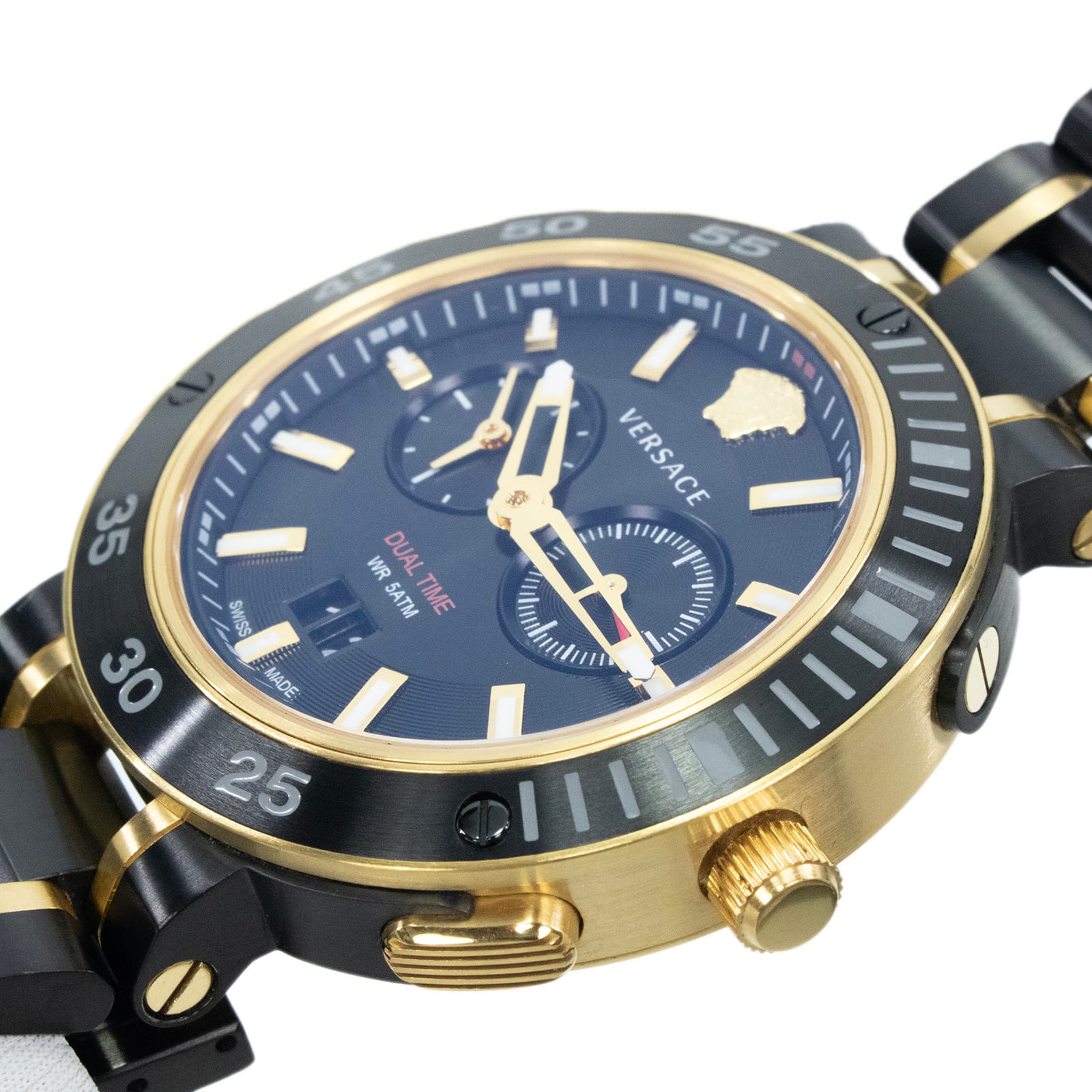 こちらは、圧倒的な存在感が腕元で力強く主張する、ヴェルサーチェのVエクストリームプロ・腕時計でございます。