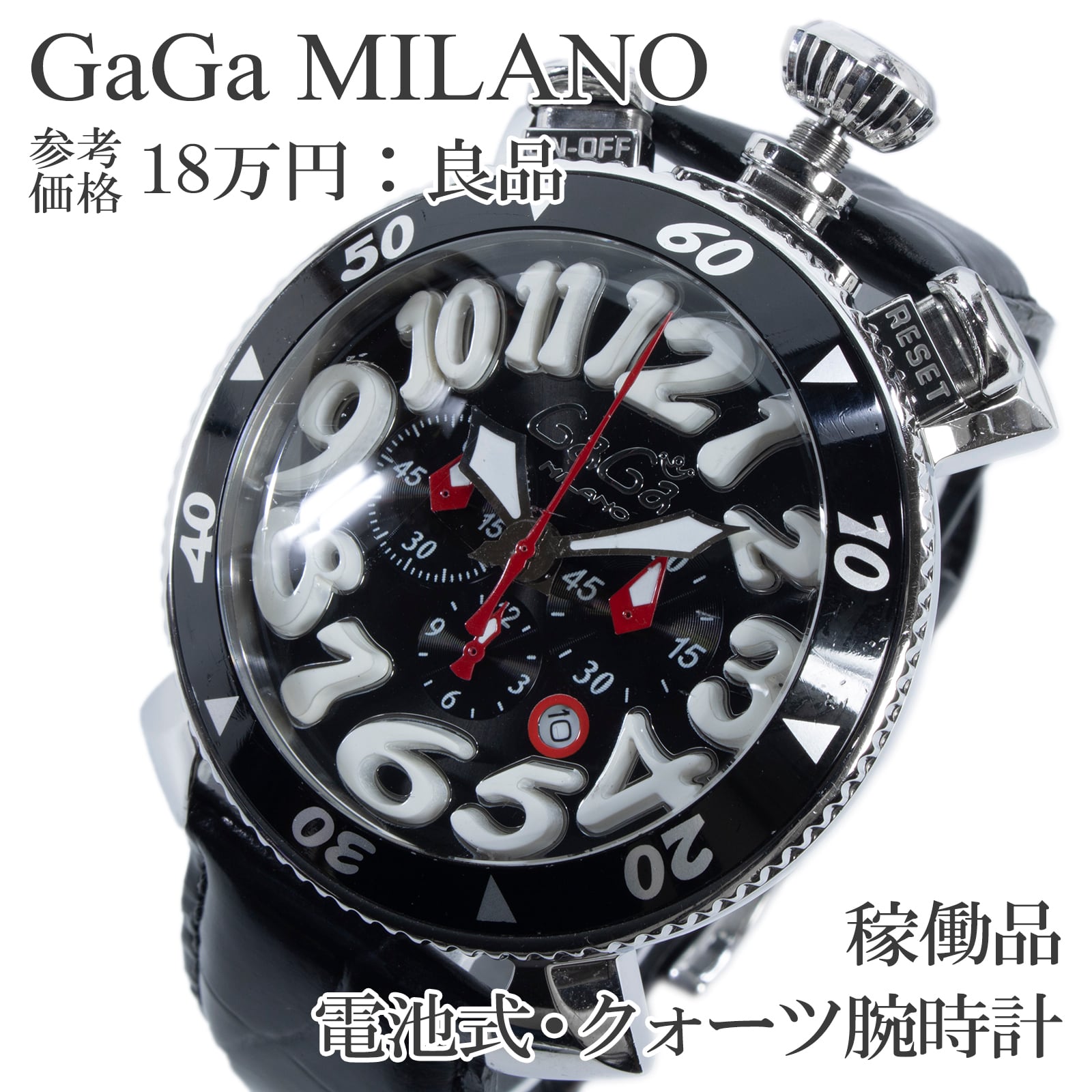 稼働品 送料無料 ガガミラノ 腕時計 クォーツ メンズ クロノ48mm 黒 クロノグラフ Y2K 00s 目立つ 重厚感 大きい 大型 ハイブランド Q231
