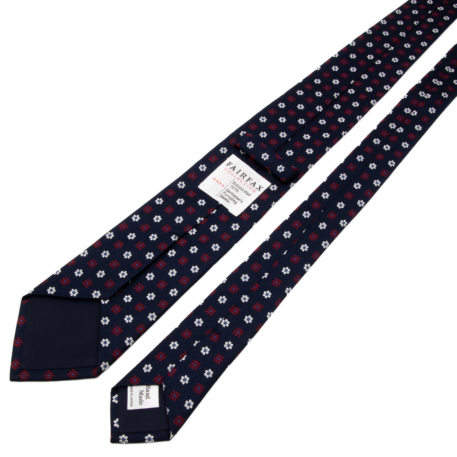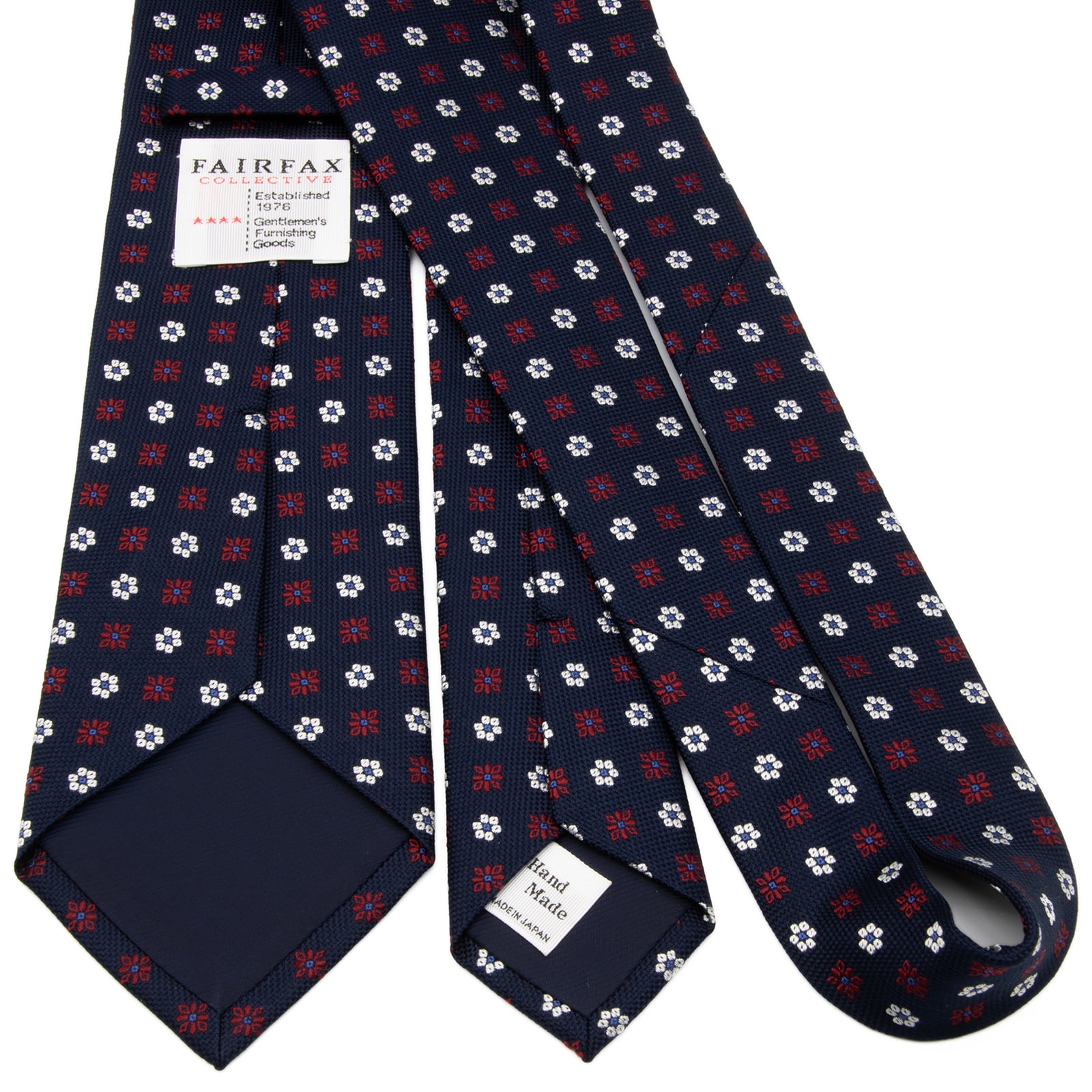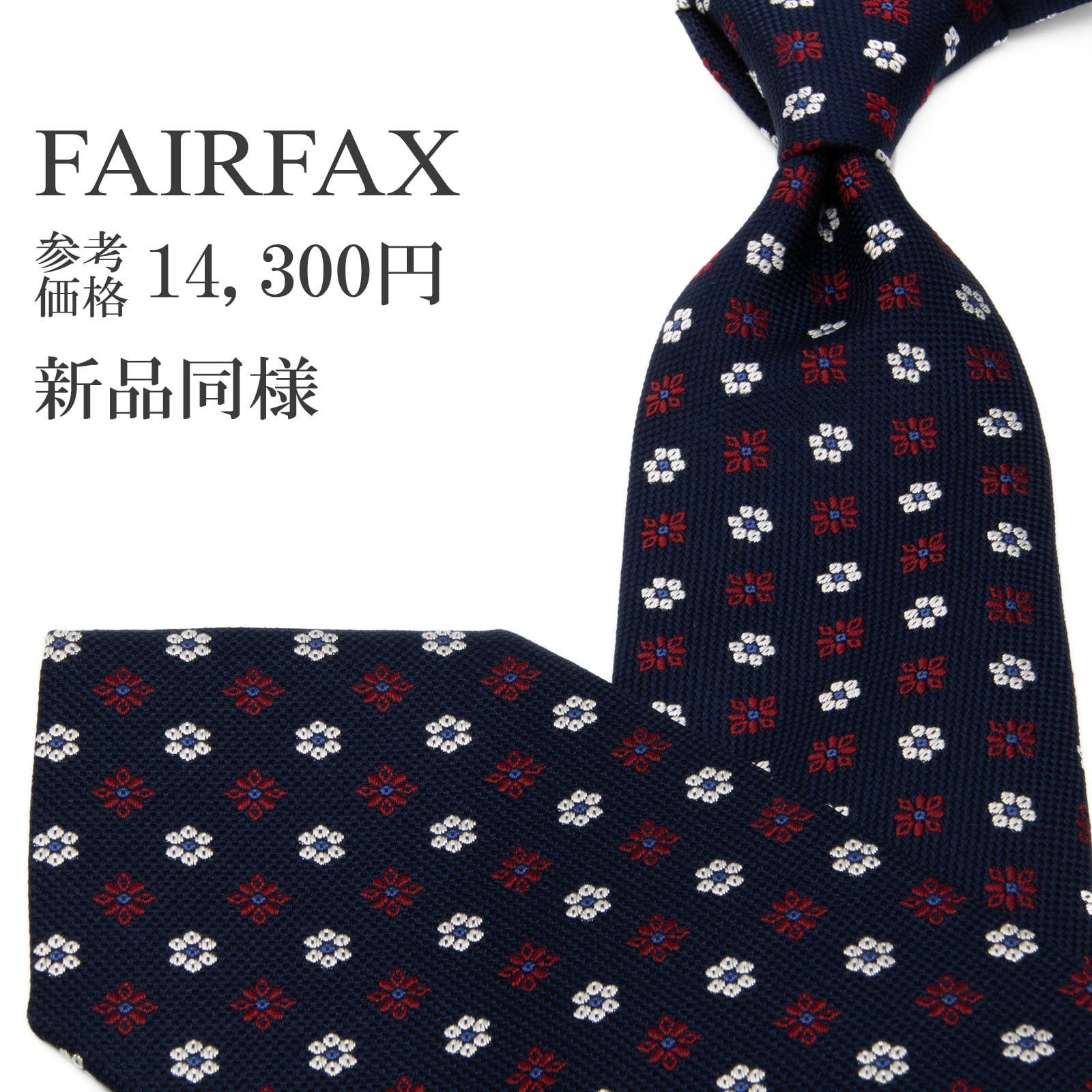 新品同様 送料無料 フェアファクス ネクタイ レギュラータイ ジャガード ネイビーブルー 赤紫色 ボルドー シルバー 小紋 総柄 花 綺麗 P704