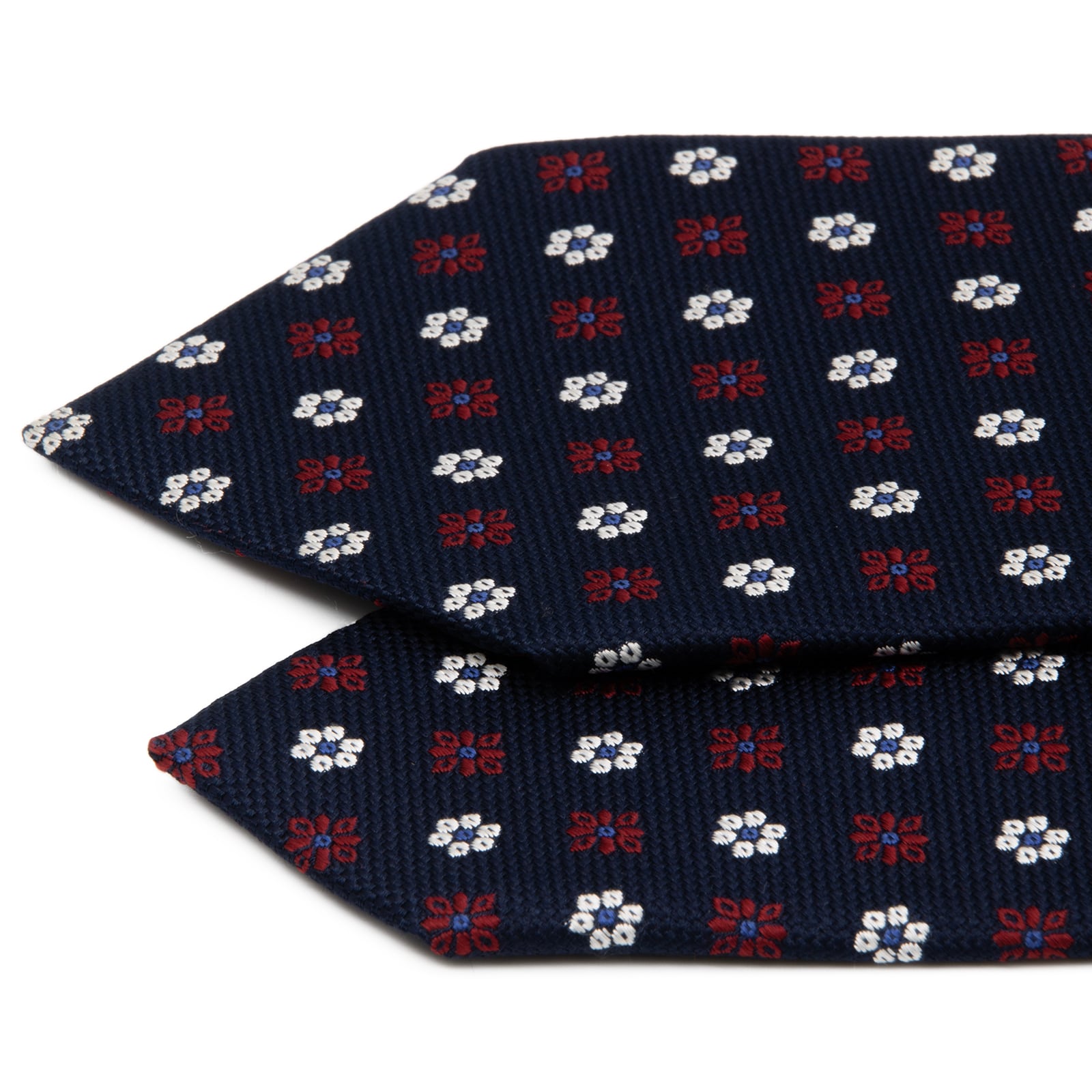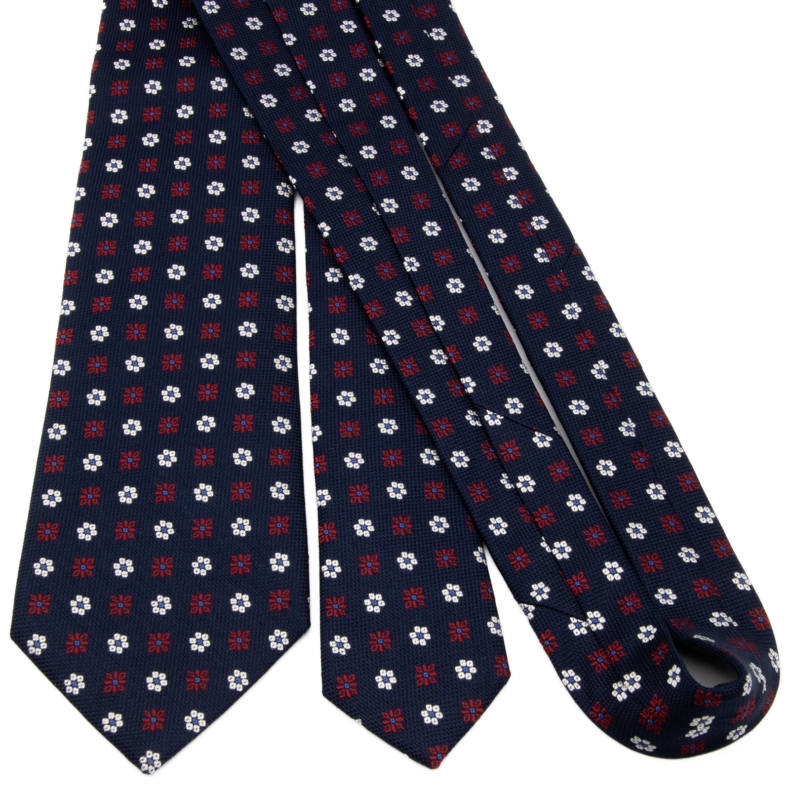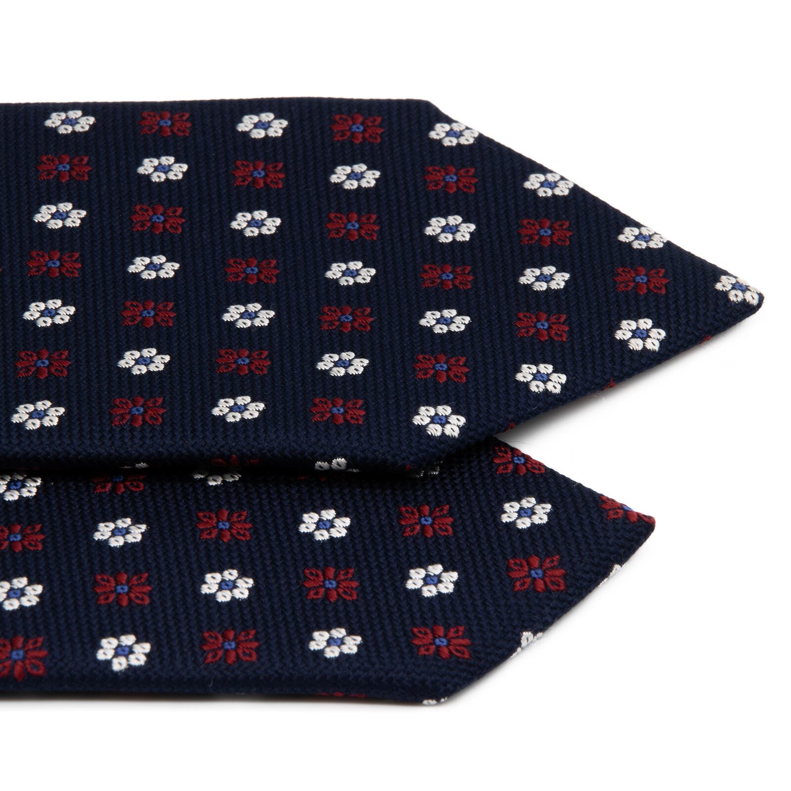 新品同様 送料無料 フェアファクス ネクタイ レギュラータイ ジャガード ネイビーブルー 赤紫色 ボルドー シルバー 小紋 総柄 花 綺麗 P704