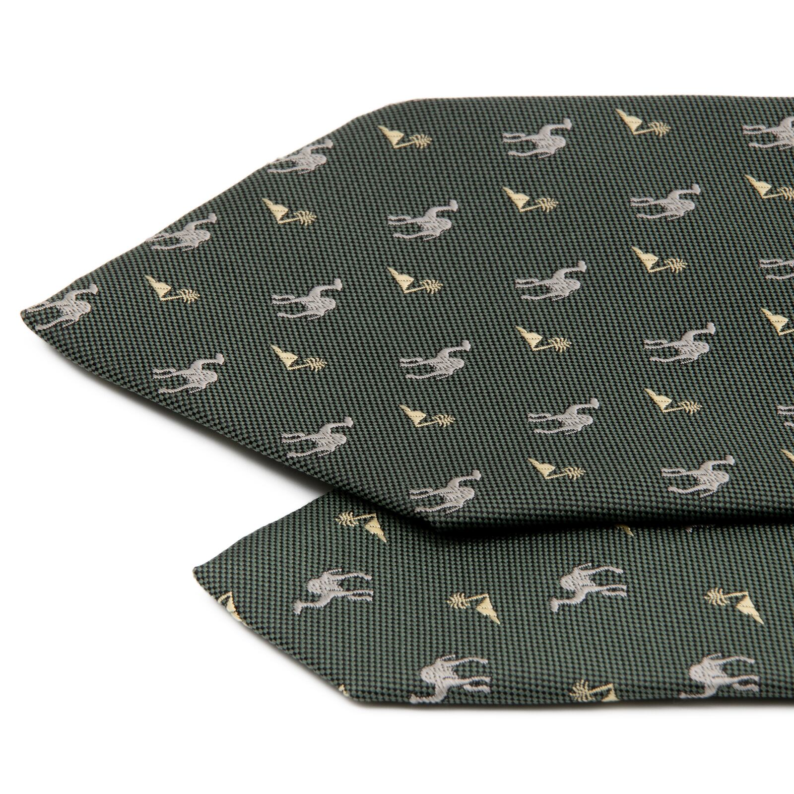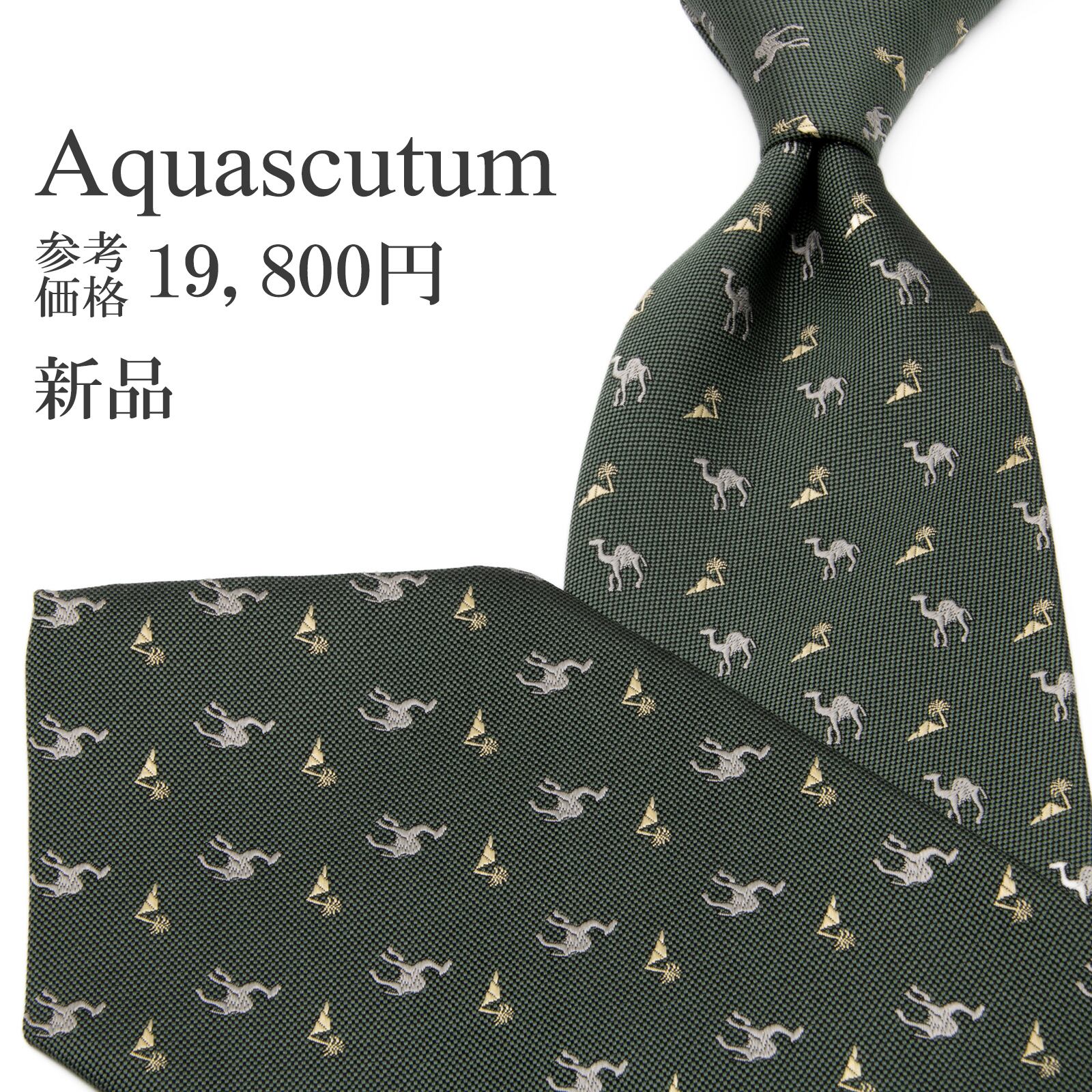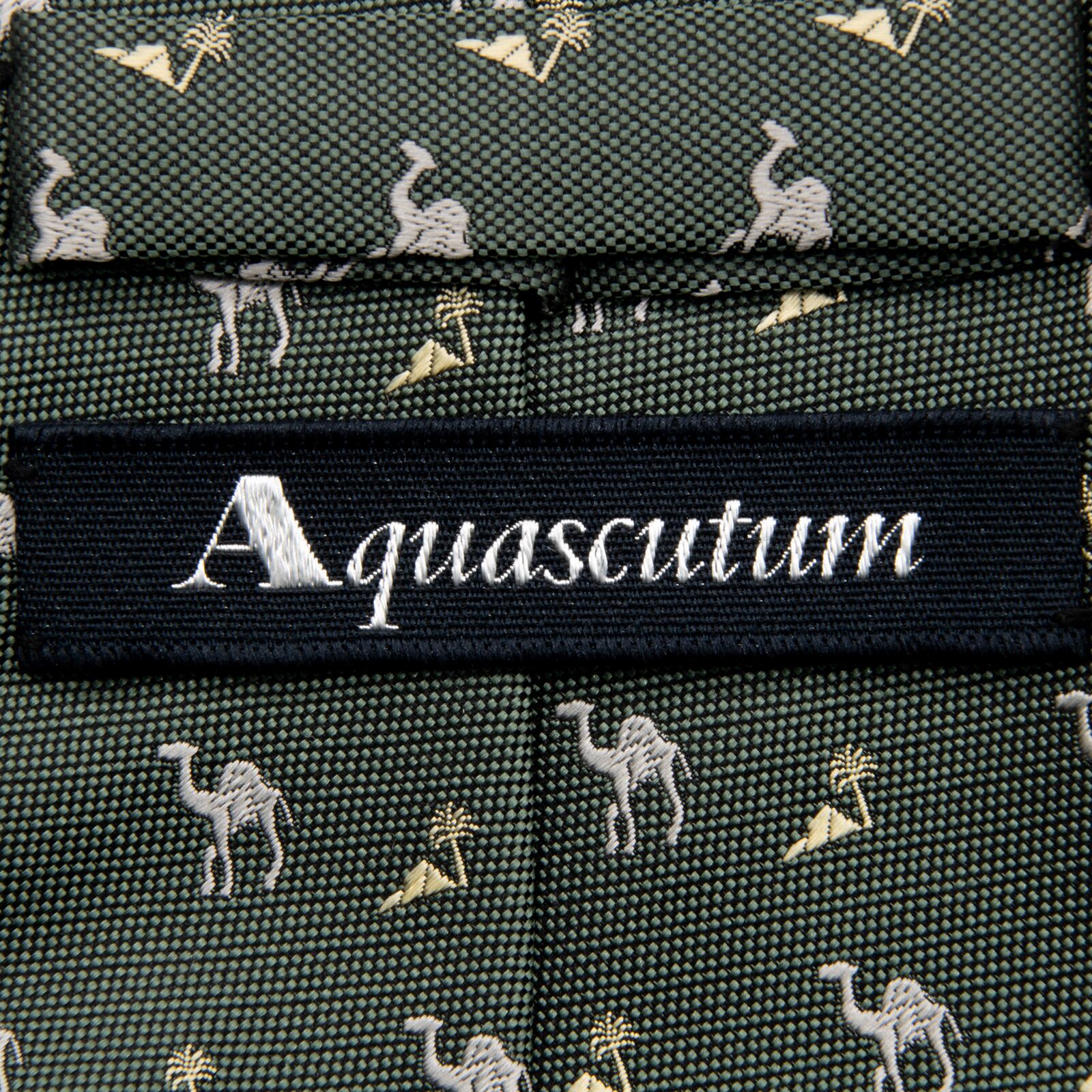 新品 送料無料 アクアスキュータム ネクタイ レギュラータイ ジャガード 深緑色 グレー ベージュ 小紋 ラクダ 砂漠 ハイブランド 綺麗 P724