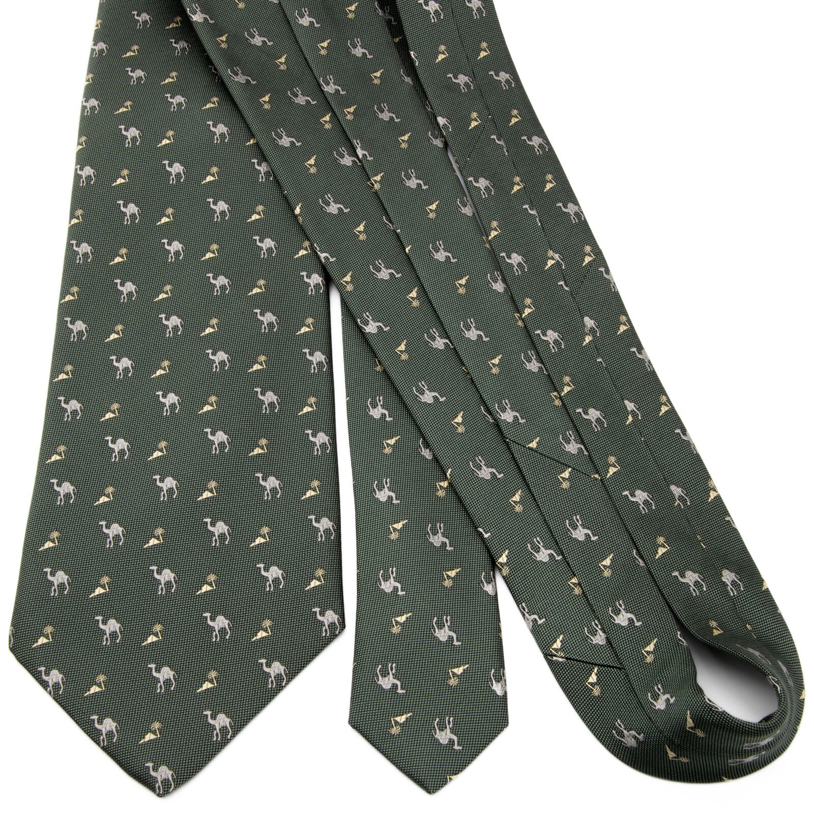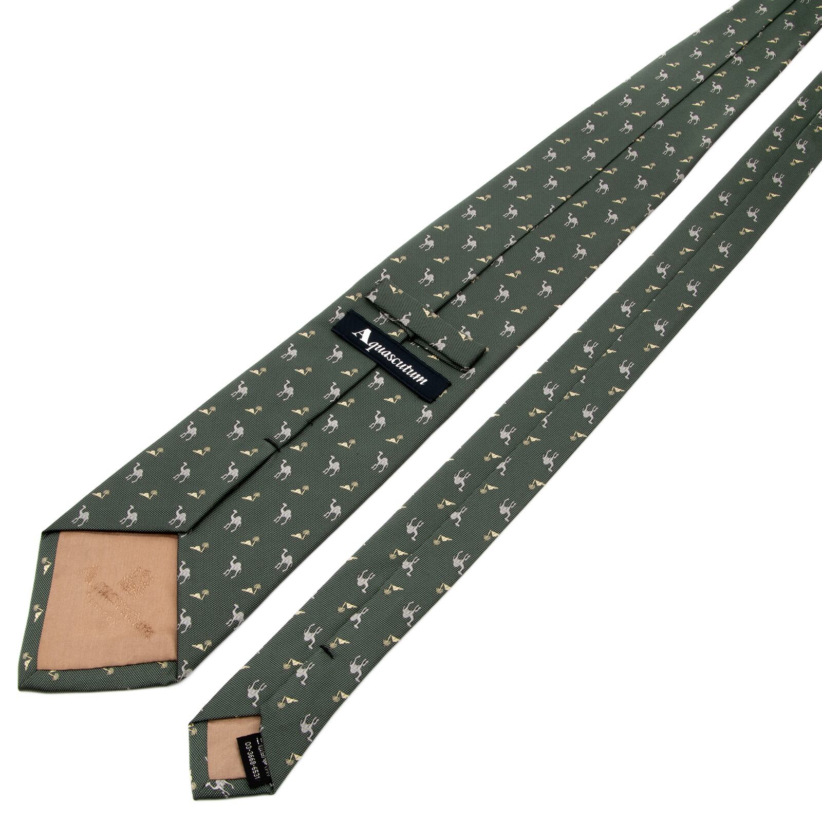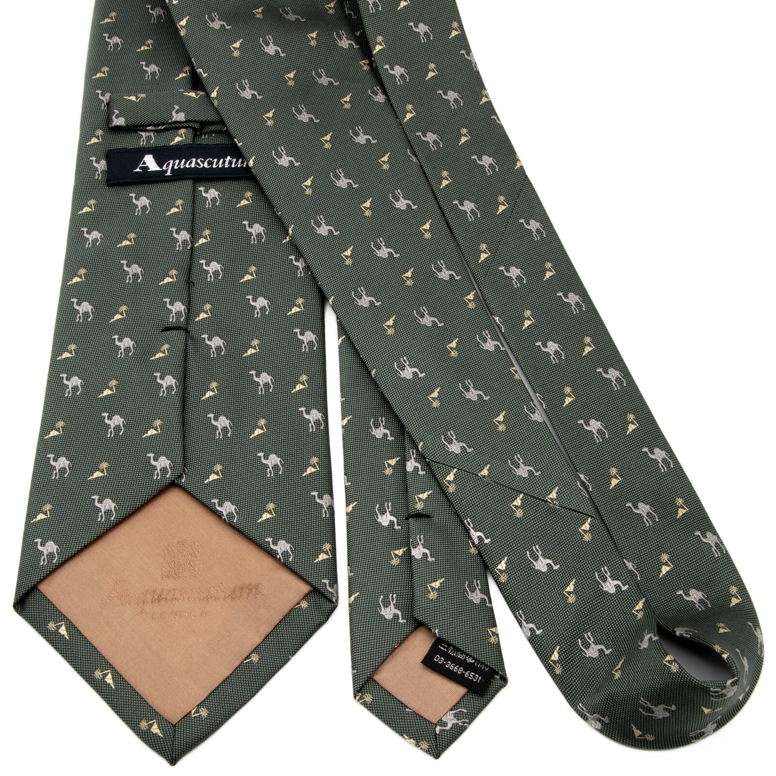 新品 送料無料 アクアスキュータム ネクタイ レギュラータイ ジャガード 深緑色 グレー ベージュ 小紋 ラクダ 砂漠 ハイブランド 綺麗 P724