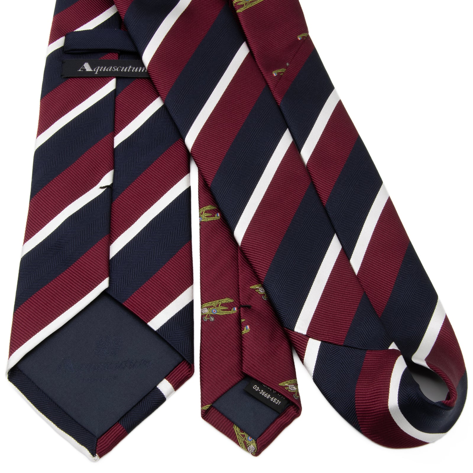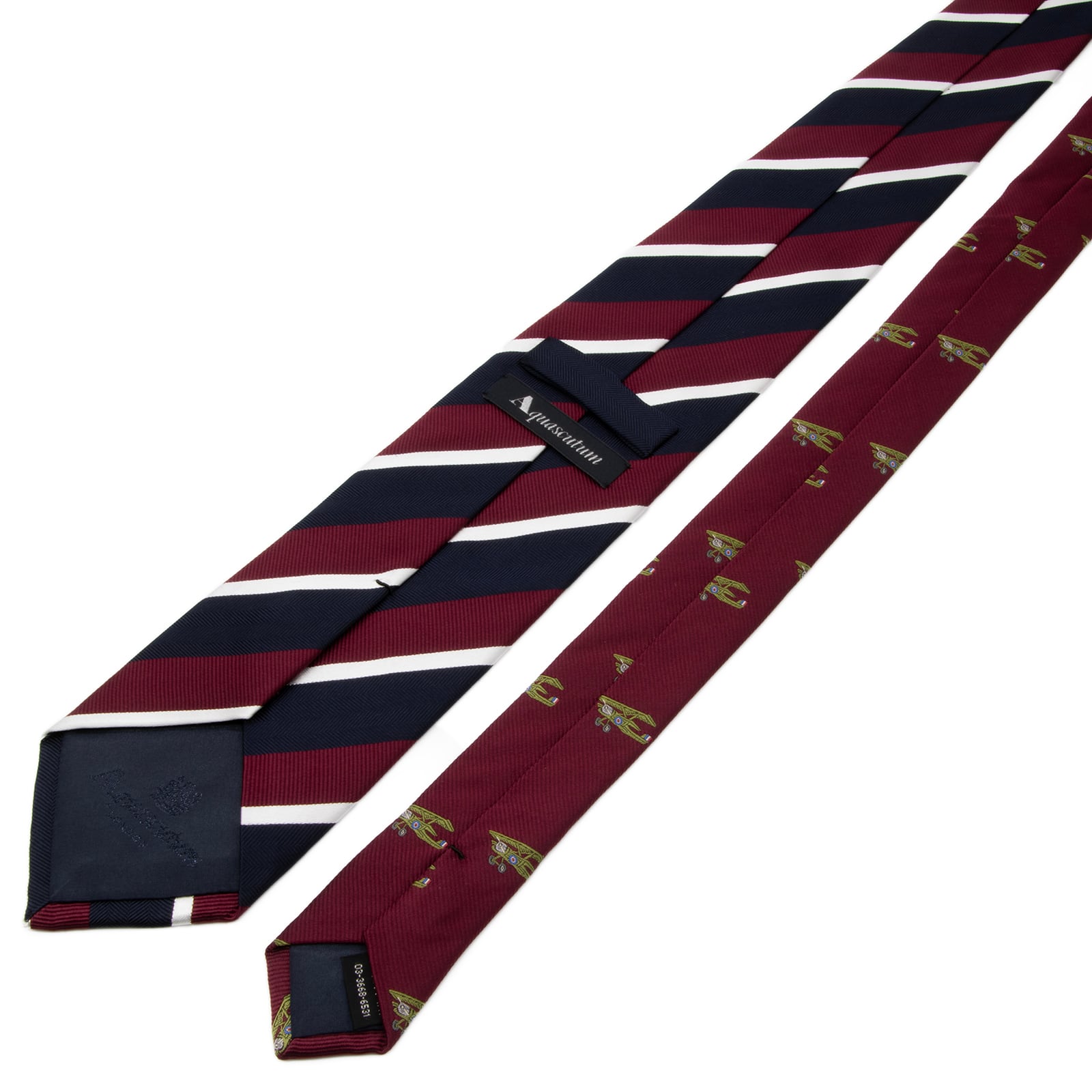 新品同様 送料無料 アクアスキュータム ネクタイ ジャガード クレリックタイ 赤紫 ボルドー ネイビーブルー 白 緑 ストライプ 飛行機 P755