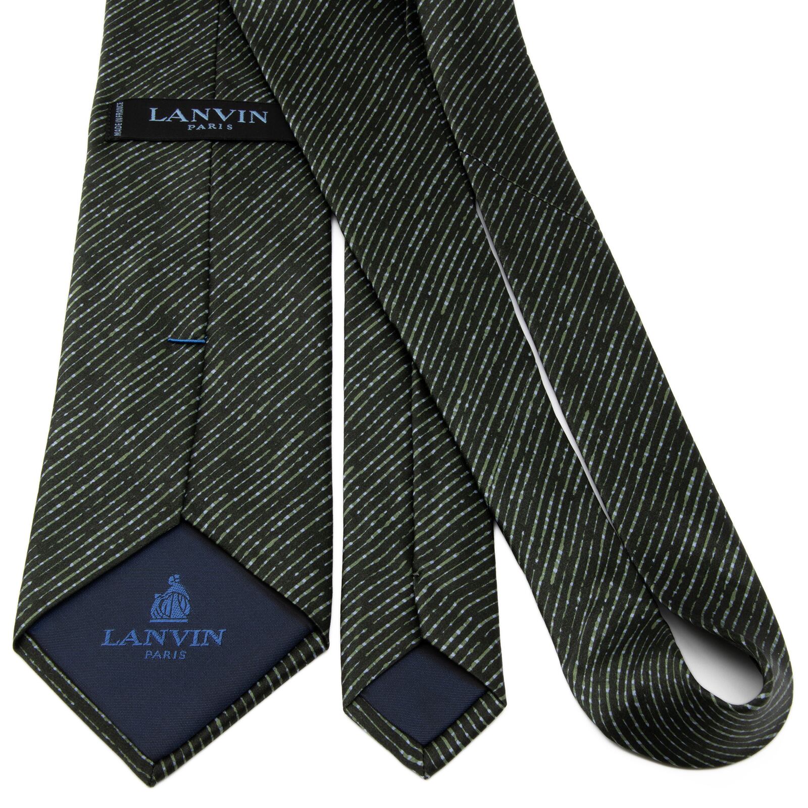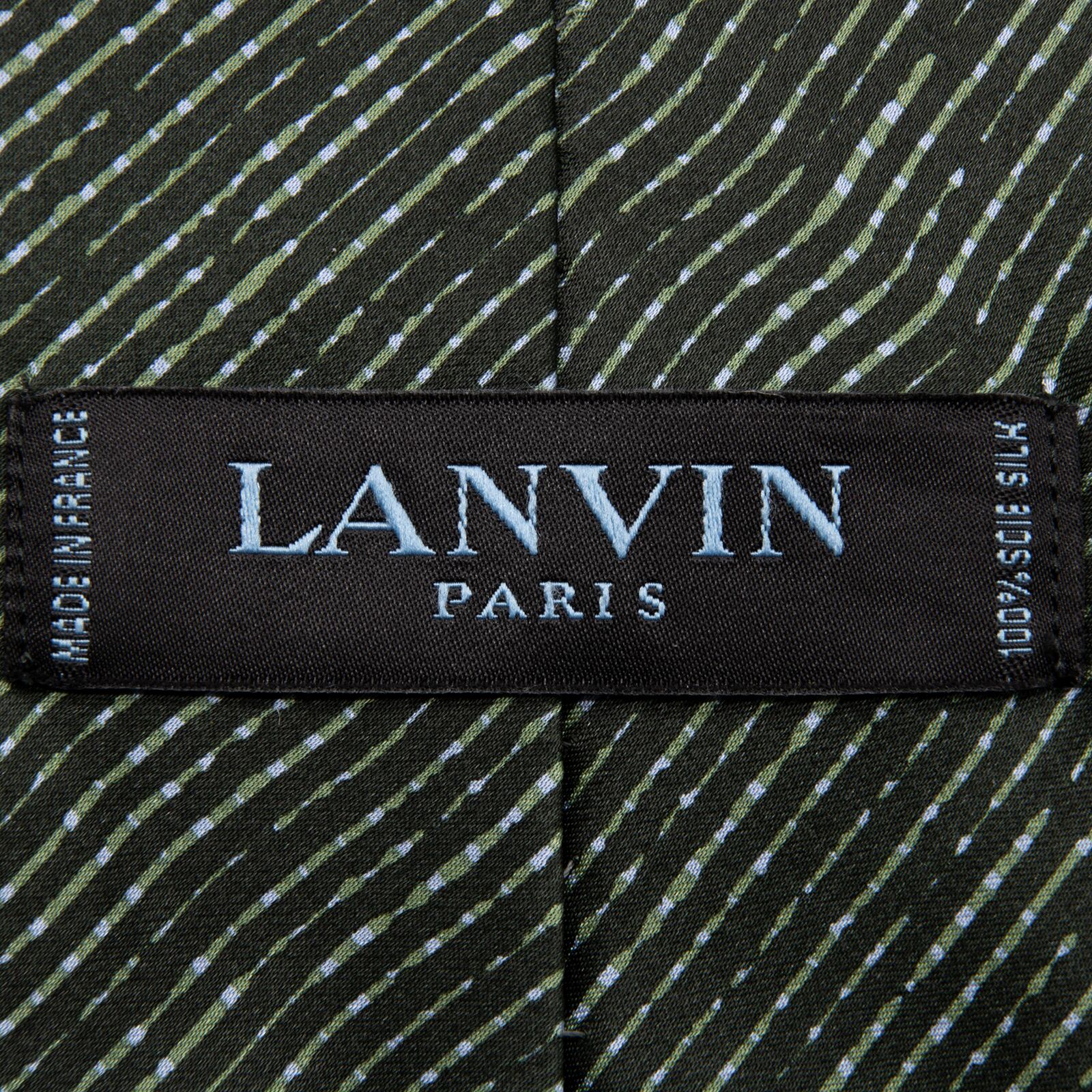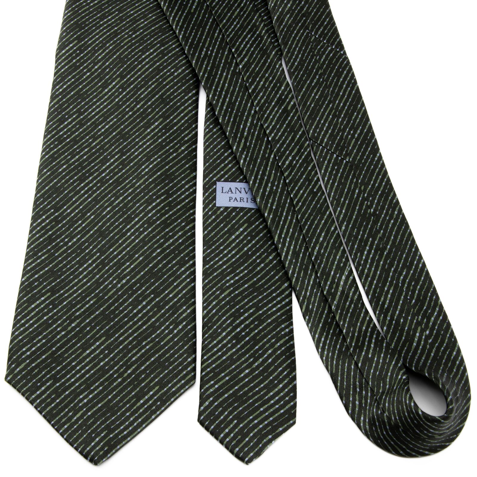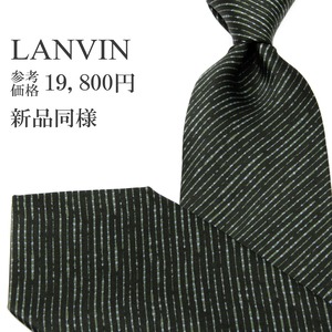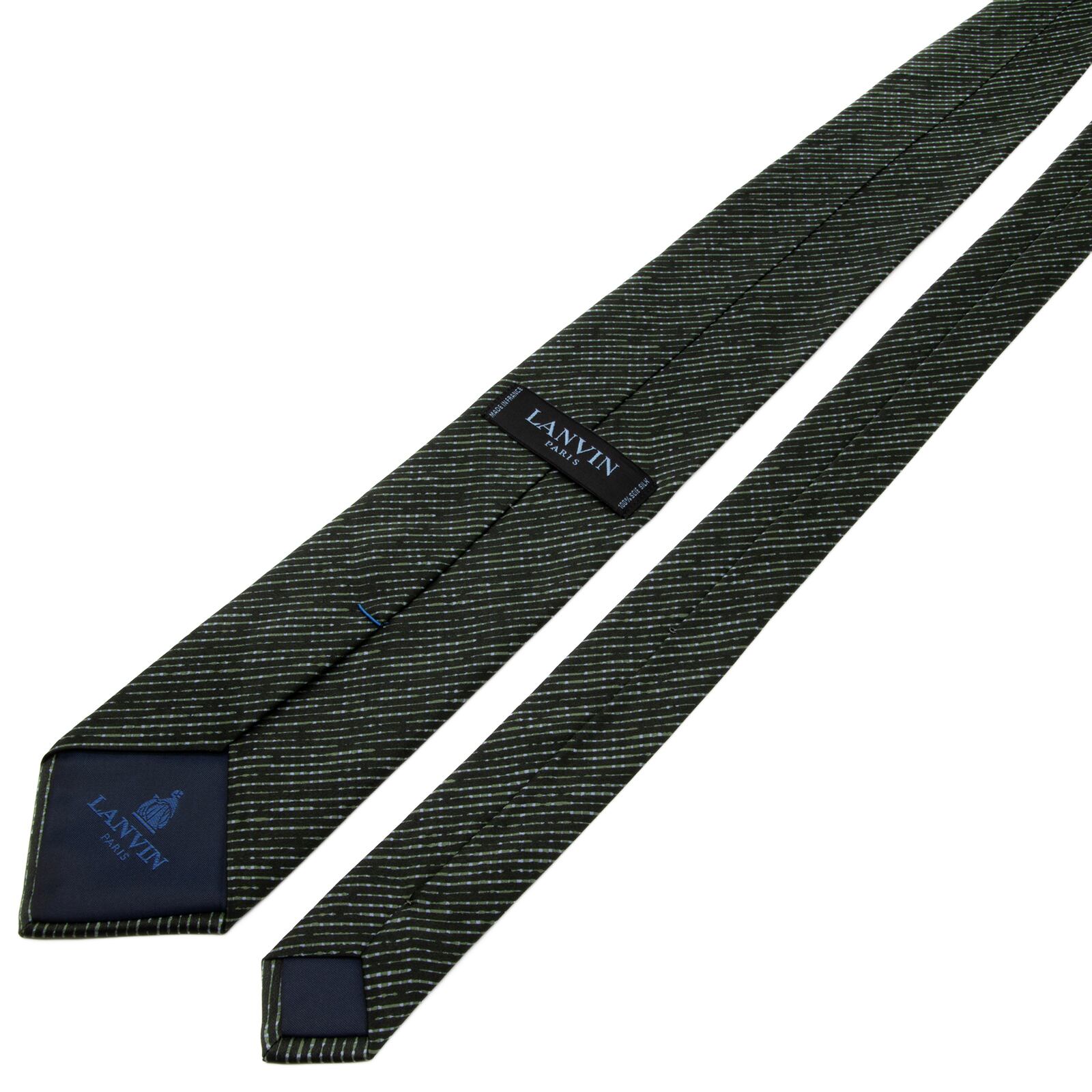 新品同様 送料無料 ランバン ネクタイ レギュラータイ シルク 深緑色 グリーン 水色 ストライプ 光沢 ハイブランド フランス製 綺麗 P772