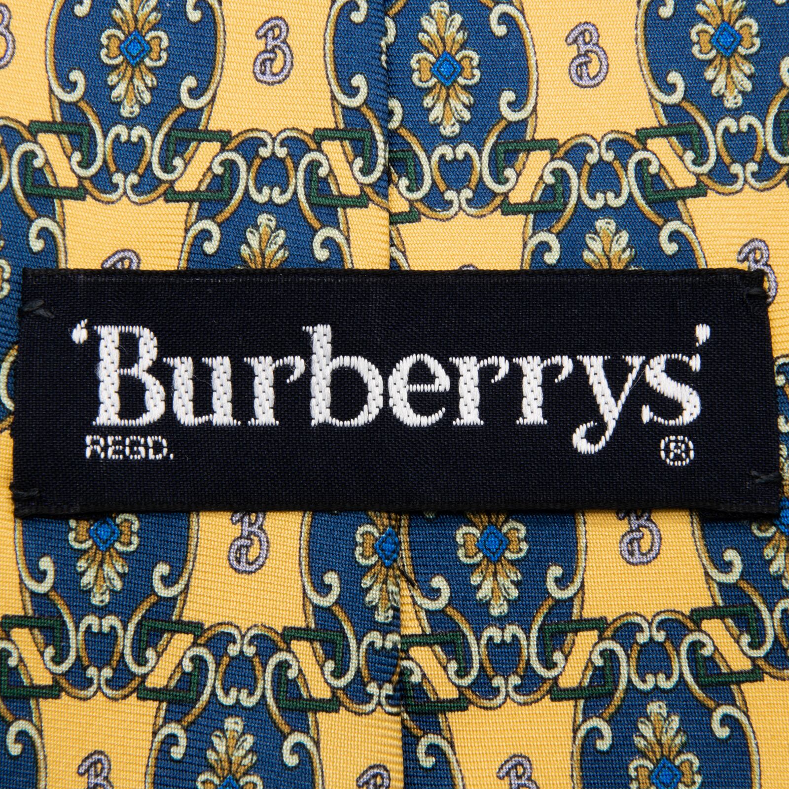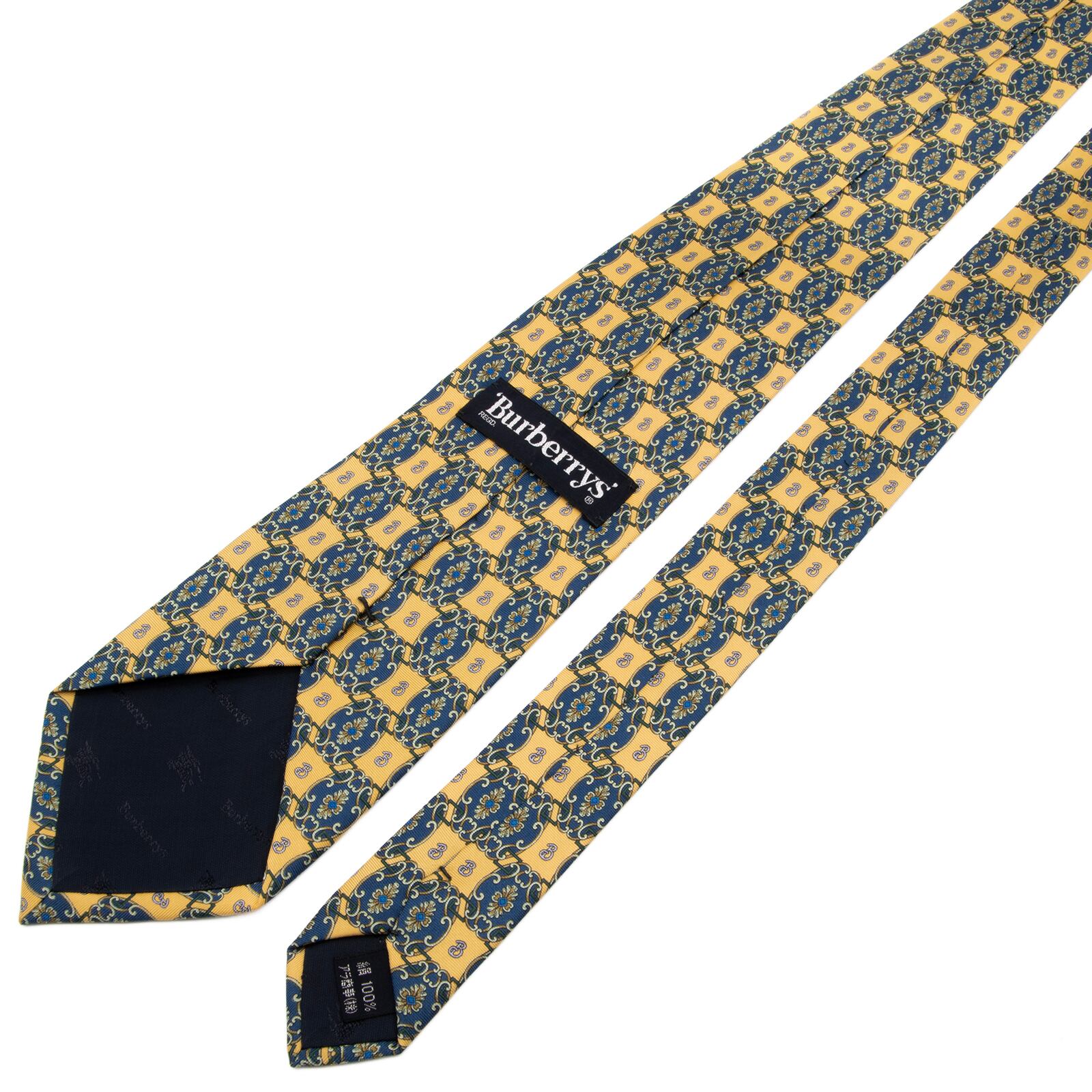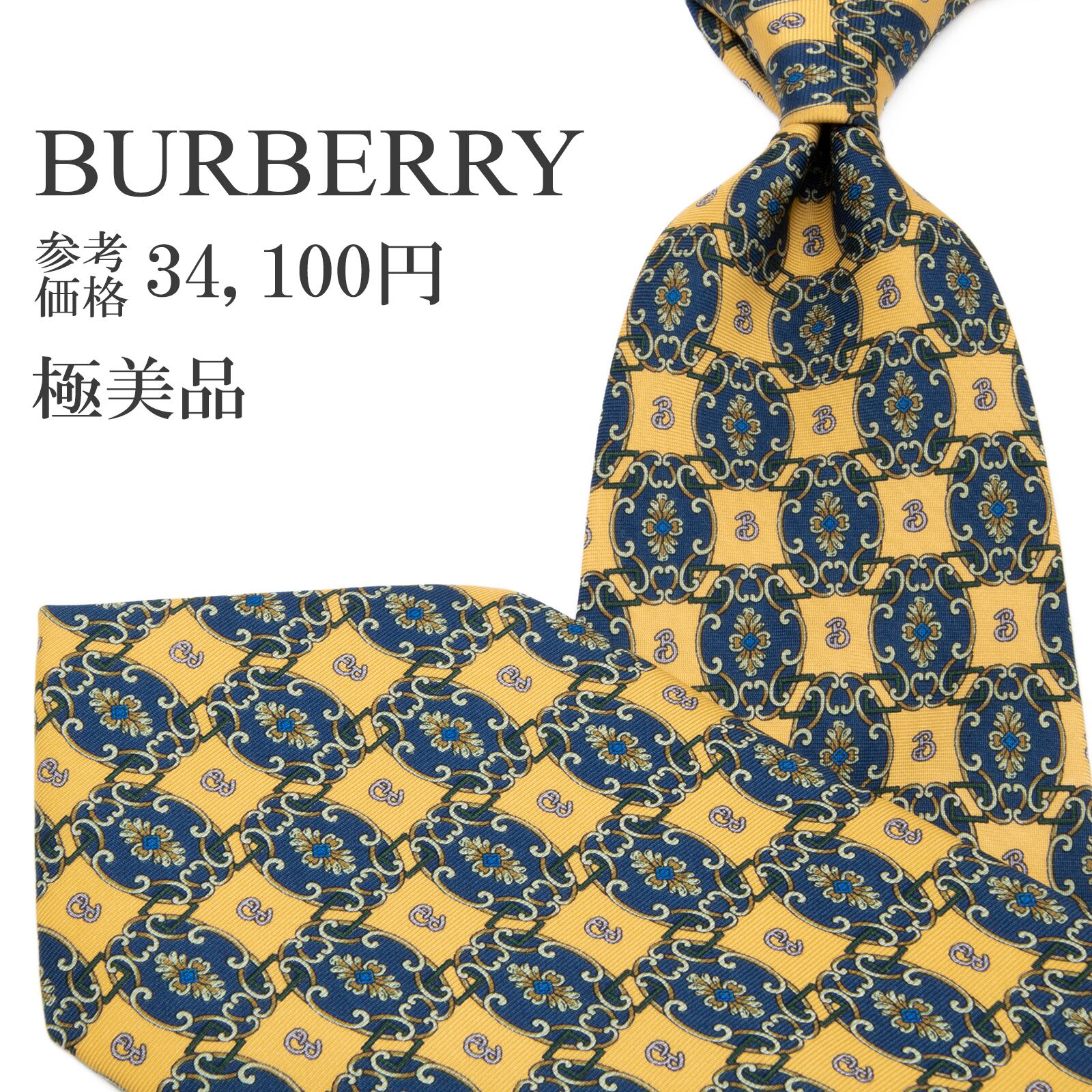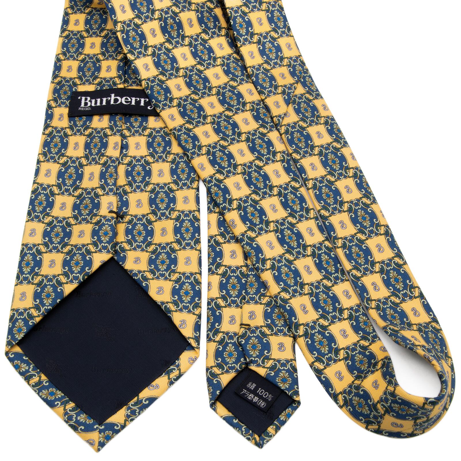送料無料 バーバリー ネクタイ シルク 青 ブルー 黄色 グレー 総柄 Y2K 00s 90s Bロゴ マーク ヴィンテージ ハイブランド 珍しい 綺麗 P818