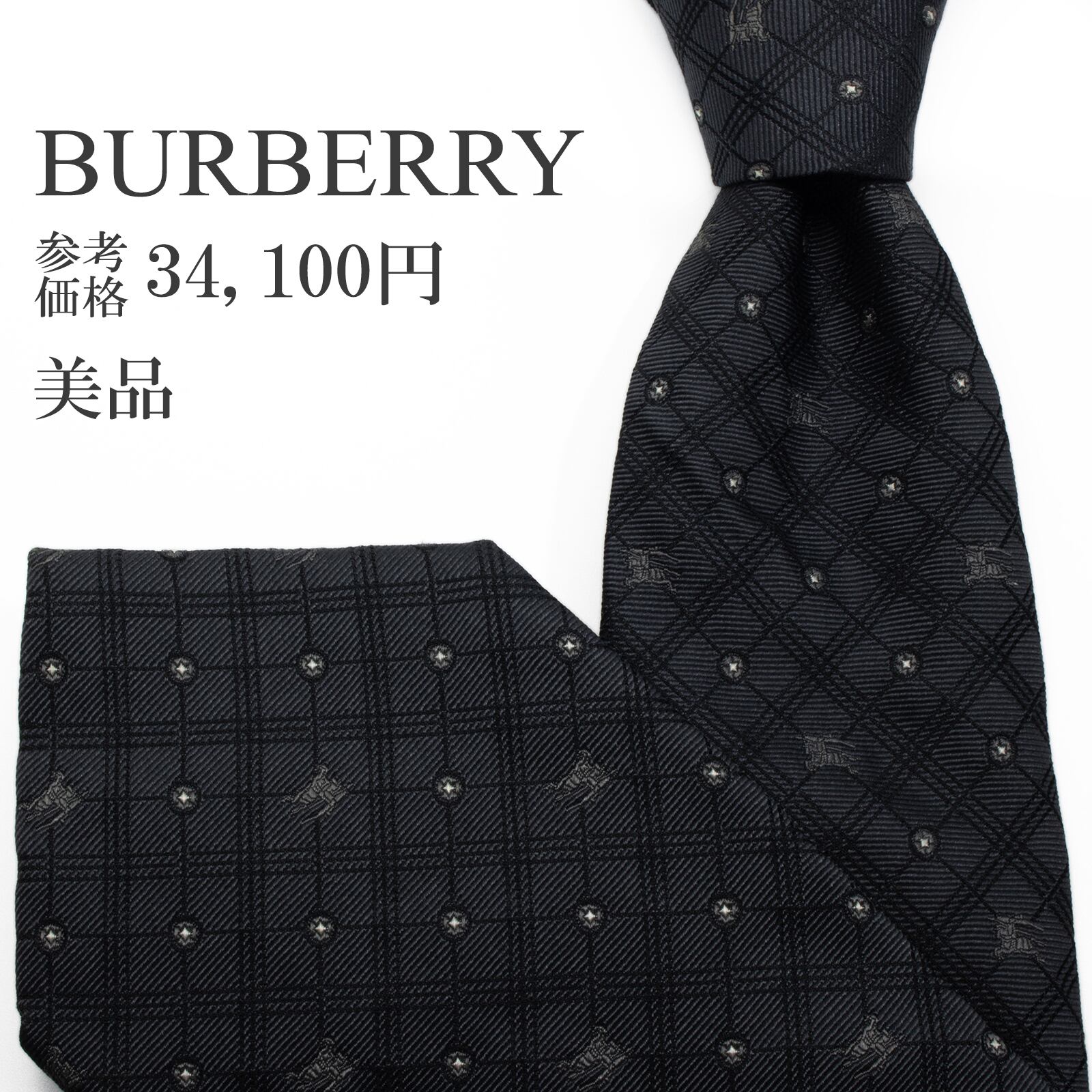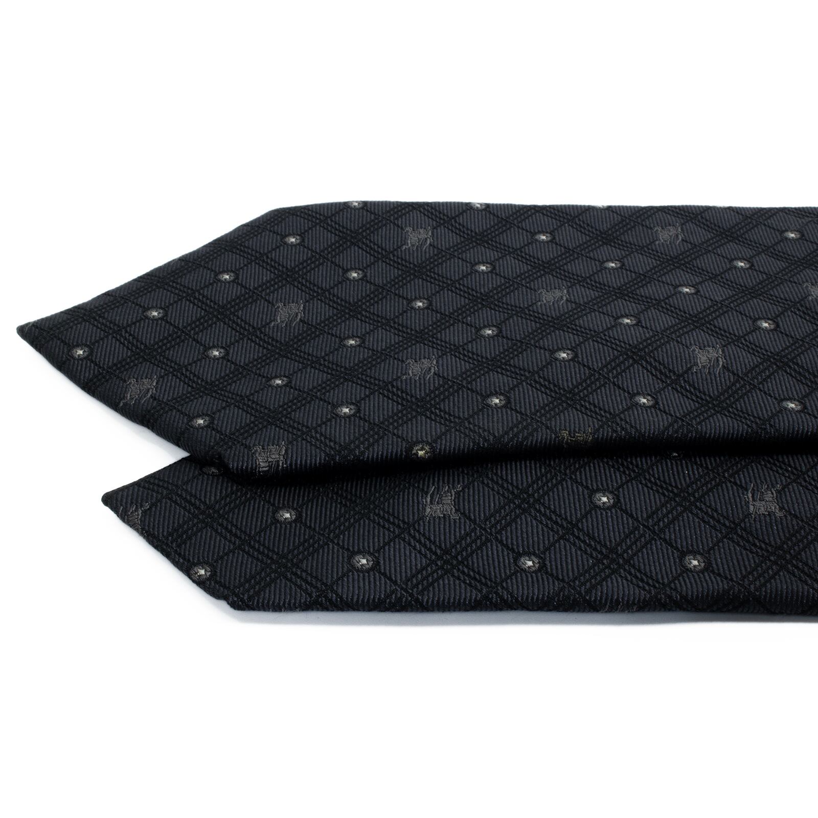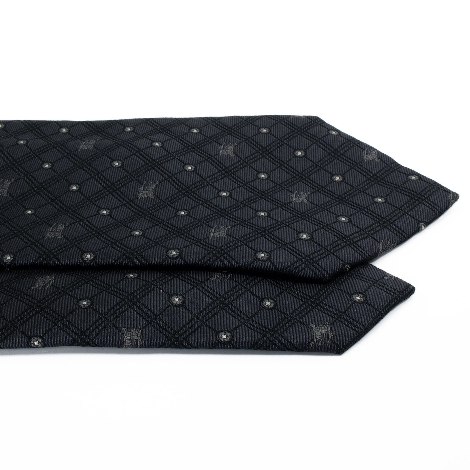 送料無料 バーバリー ネクタイ レギュラータイ ジャガード グレー シルバー 白 小紋 総柄 ドット 馬 ホースロゴ ハイブランド 綺麗 S614