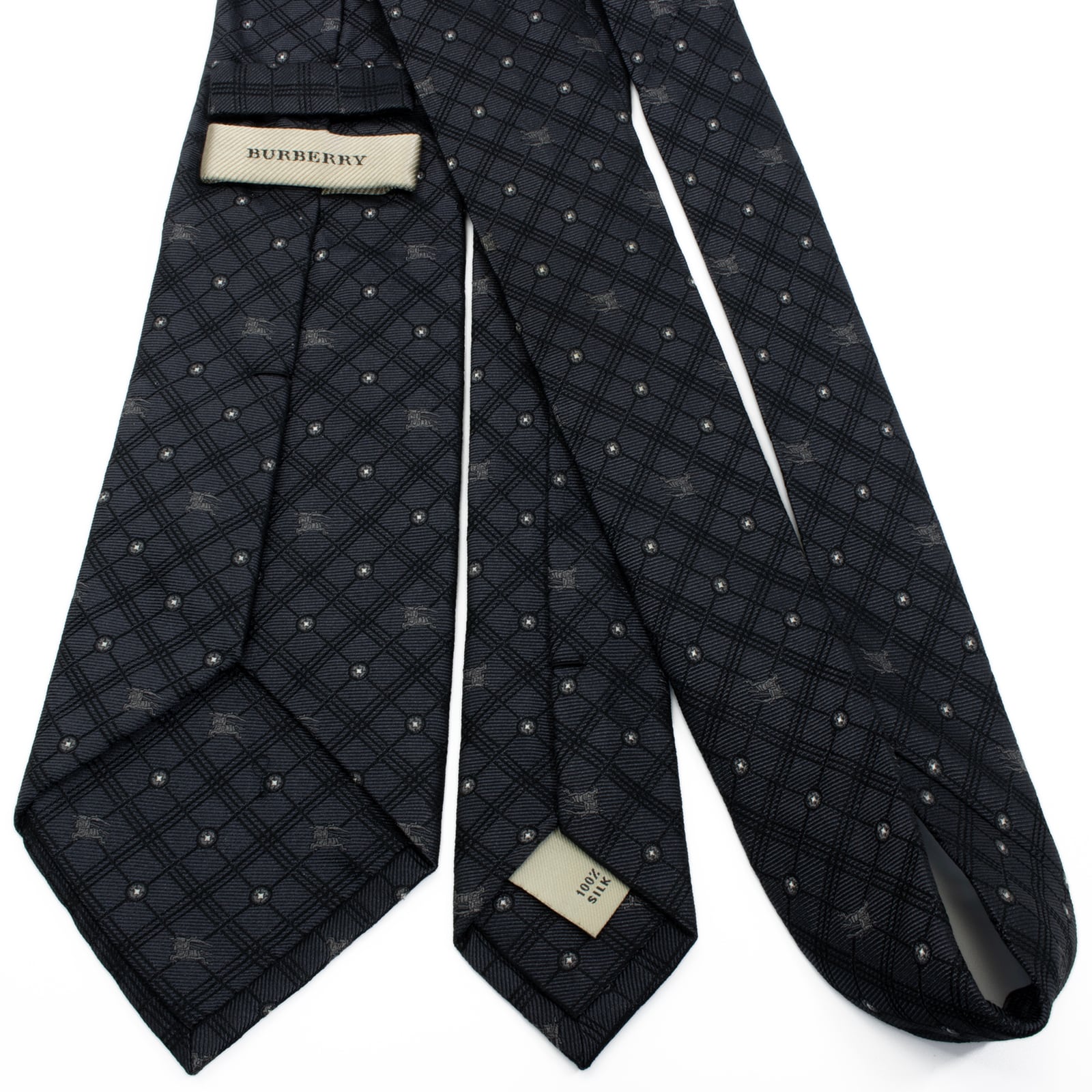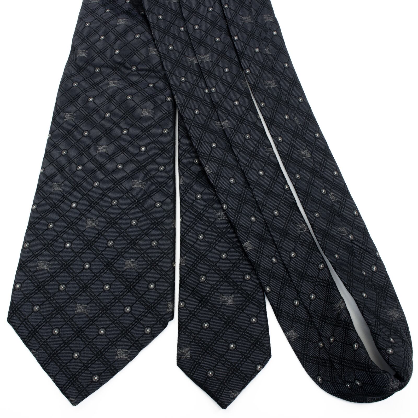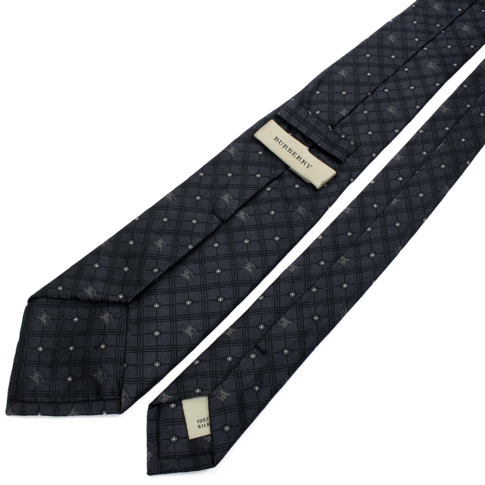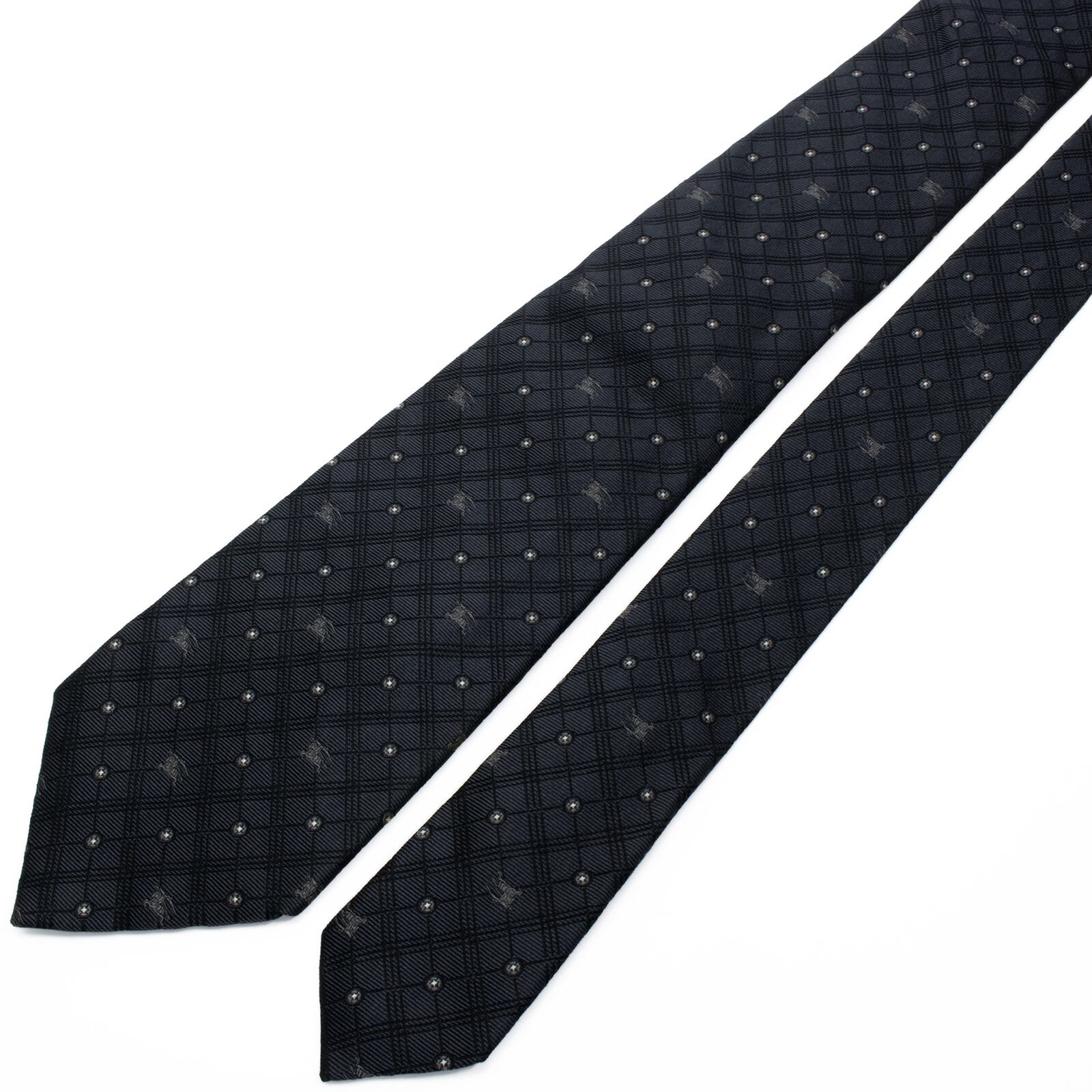 送料無料 バーバリー ネクタイ レギュラータイ ジャガード グレー シルバー 白 小紋 総柄 ドット 馬 ホースロゴ ハイブランド 綺麗 S614