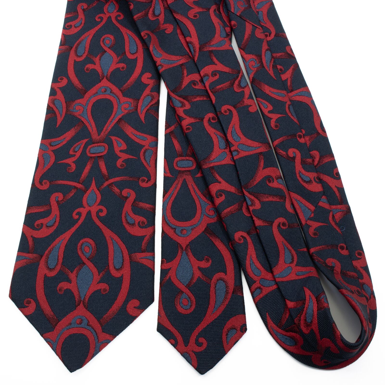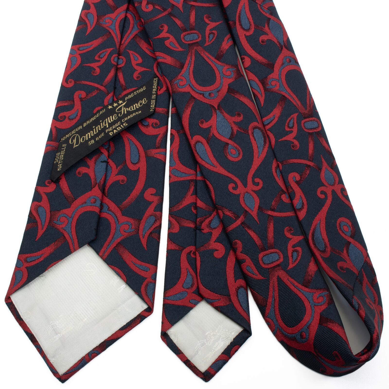 送料無料 ドミニックフランス ネクタイ レギュラータイ ジャガードタイ ネイビーブルー 赤 スリースター 総柄 紋様 ハイブランド 綺麗 S615