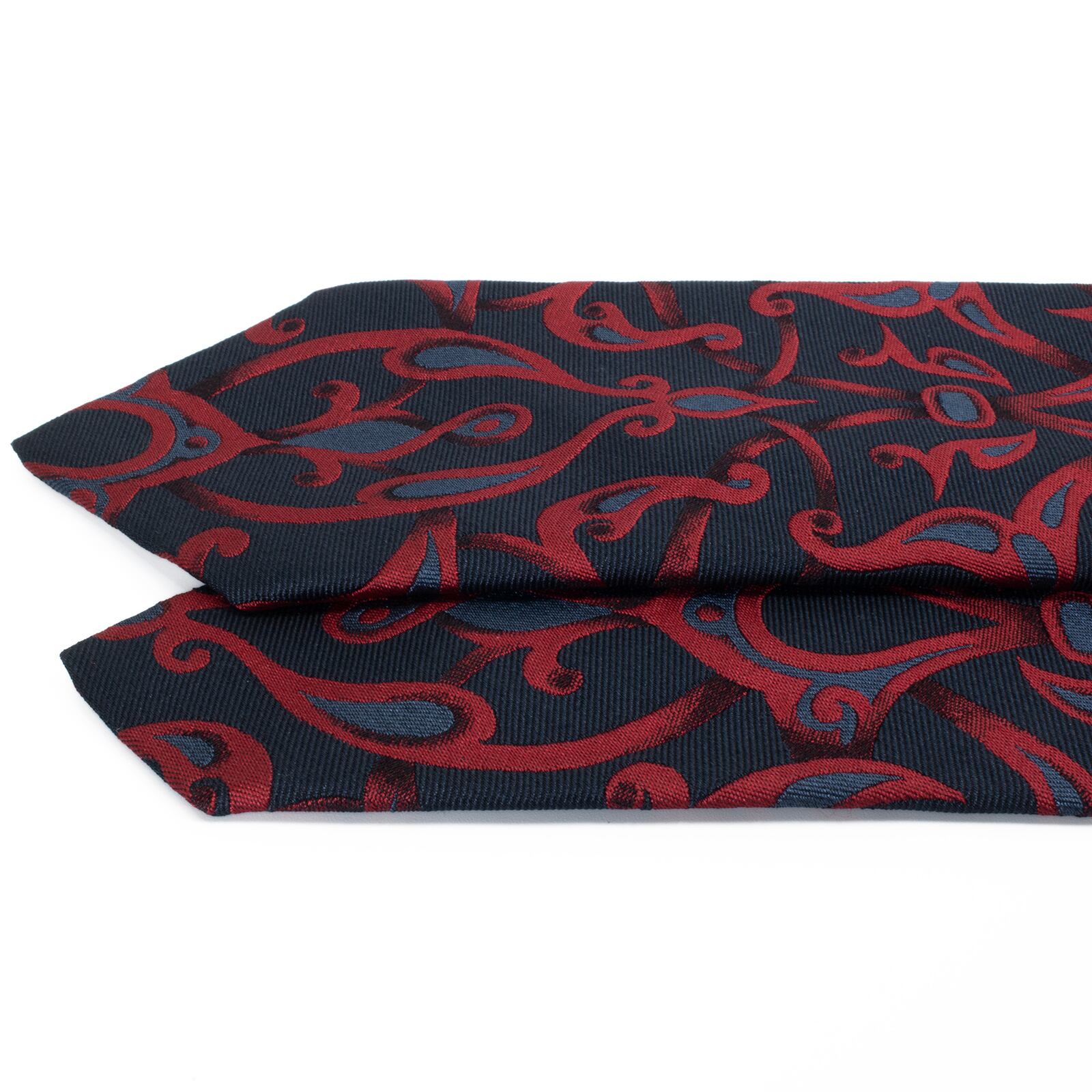 深みのあるネイビーブルーに大胆なレッドの紋様が美しく浮かび上がり、知的でエレガントな大人の雰囲気を演出しております。