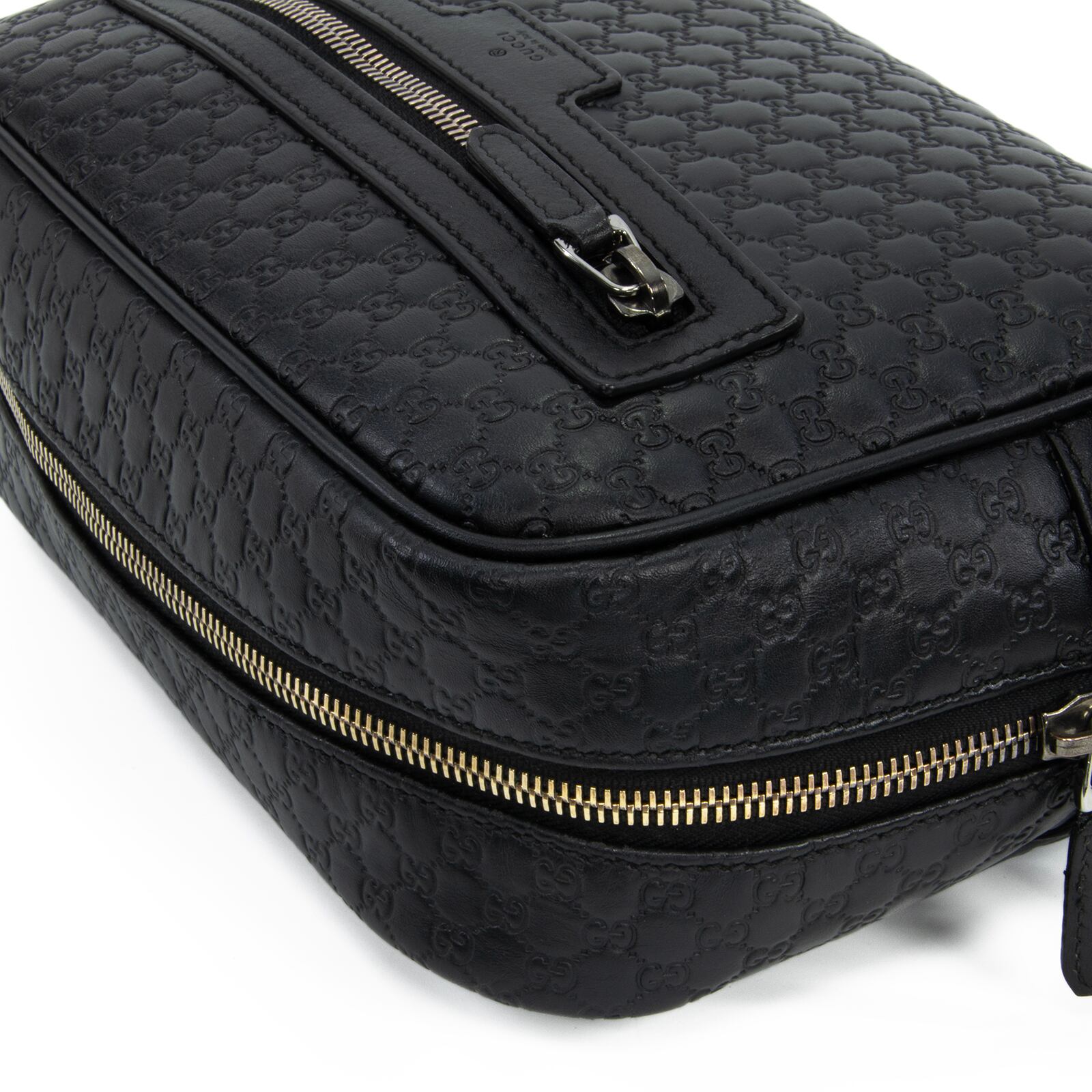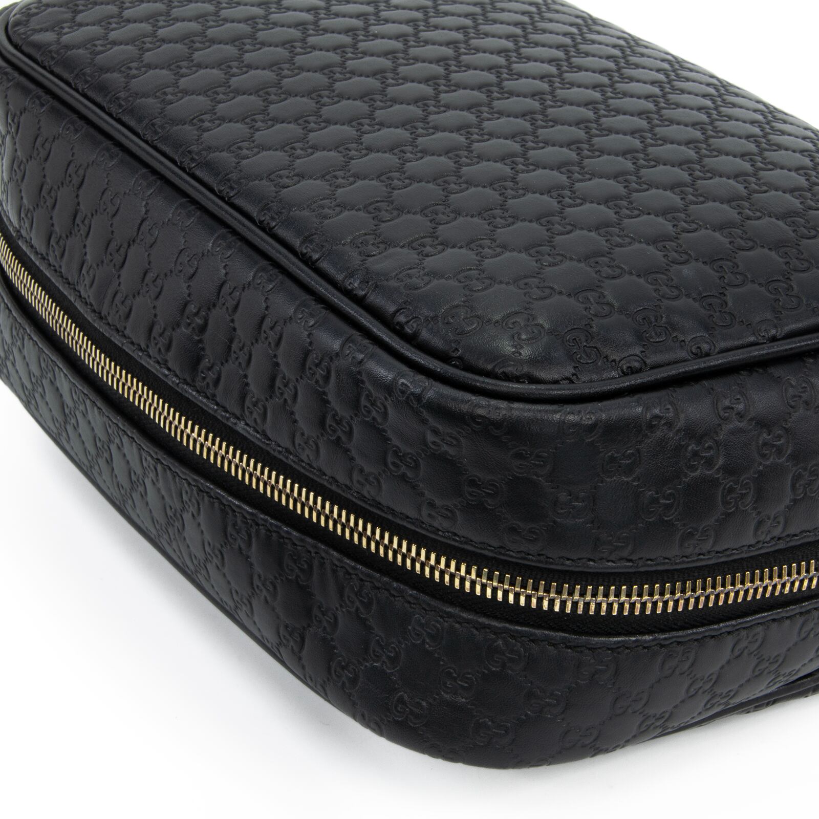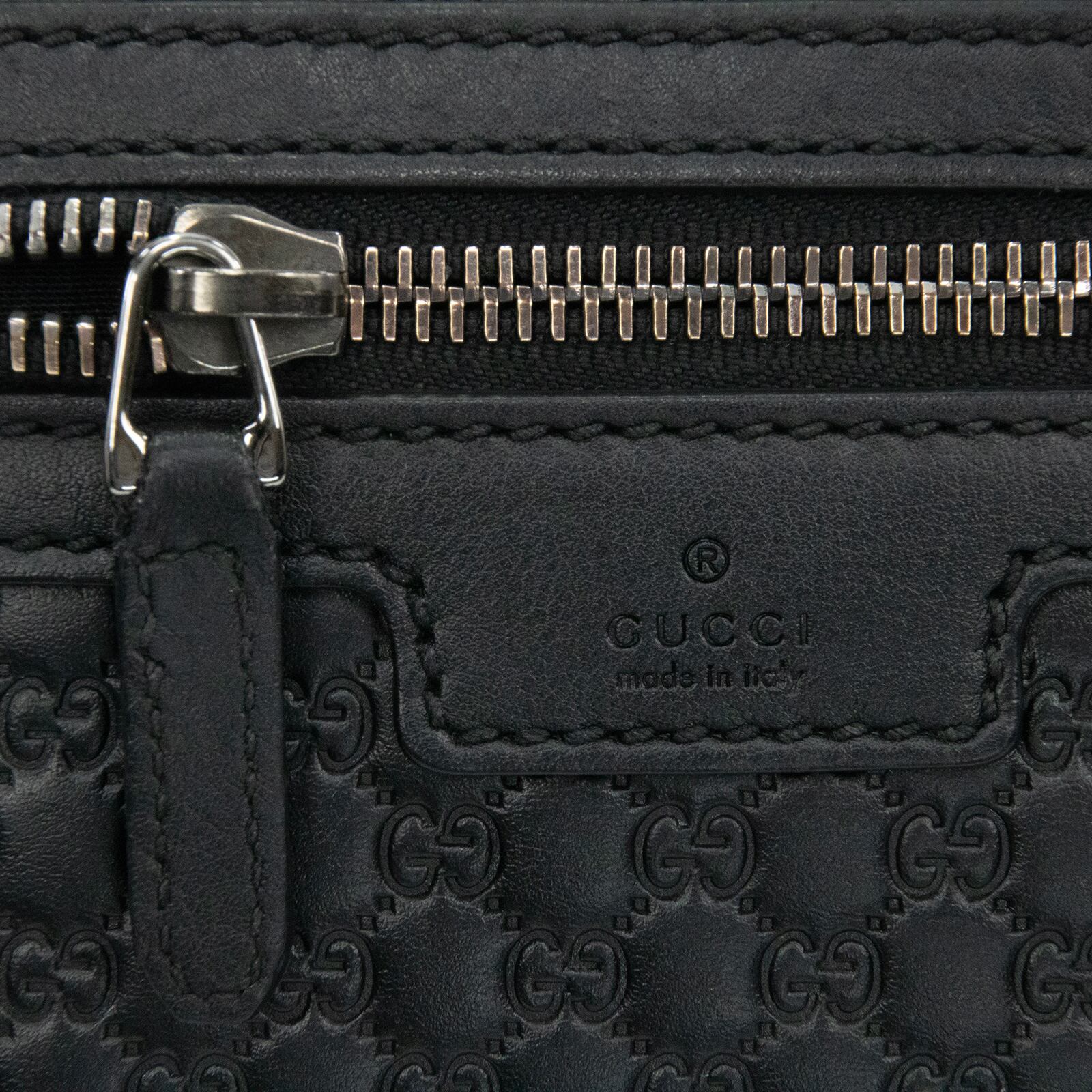 こちらは、グッチならではの最高級カーフスキンと繊細なGGロゴが美しく調和いたしました、グッチのマイクログッチシマ・セカンドバッグでございます。