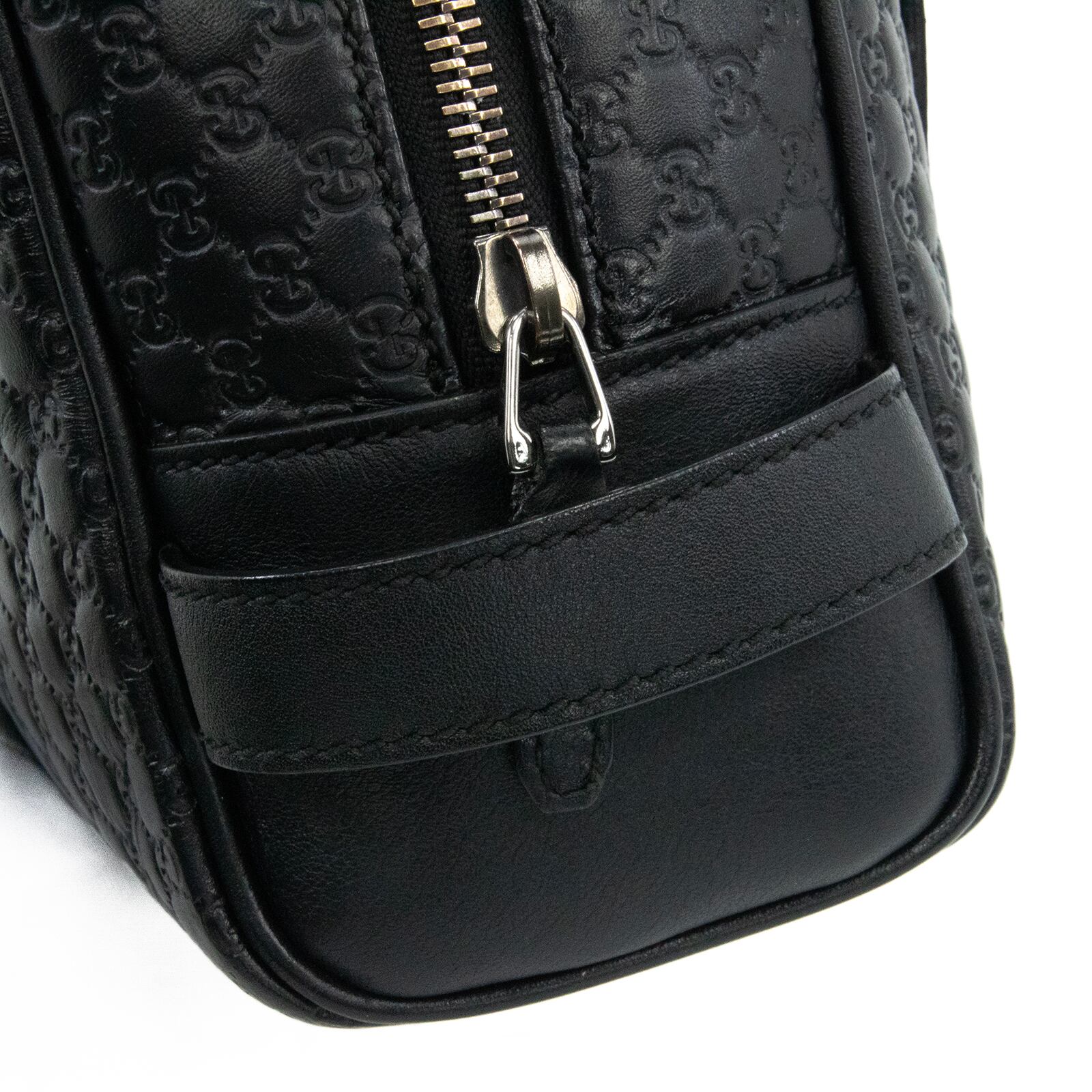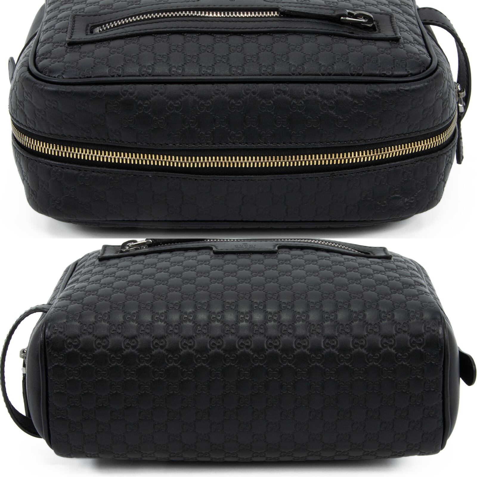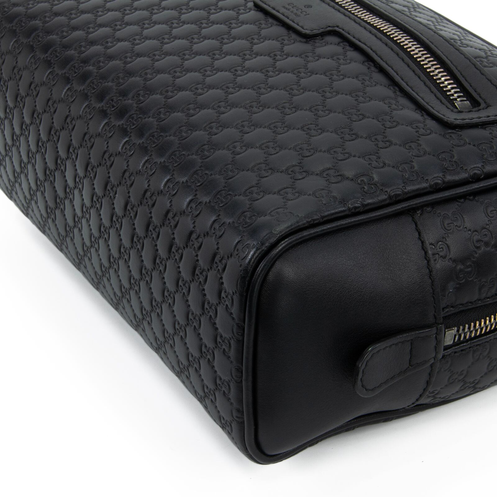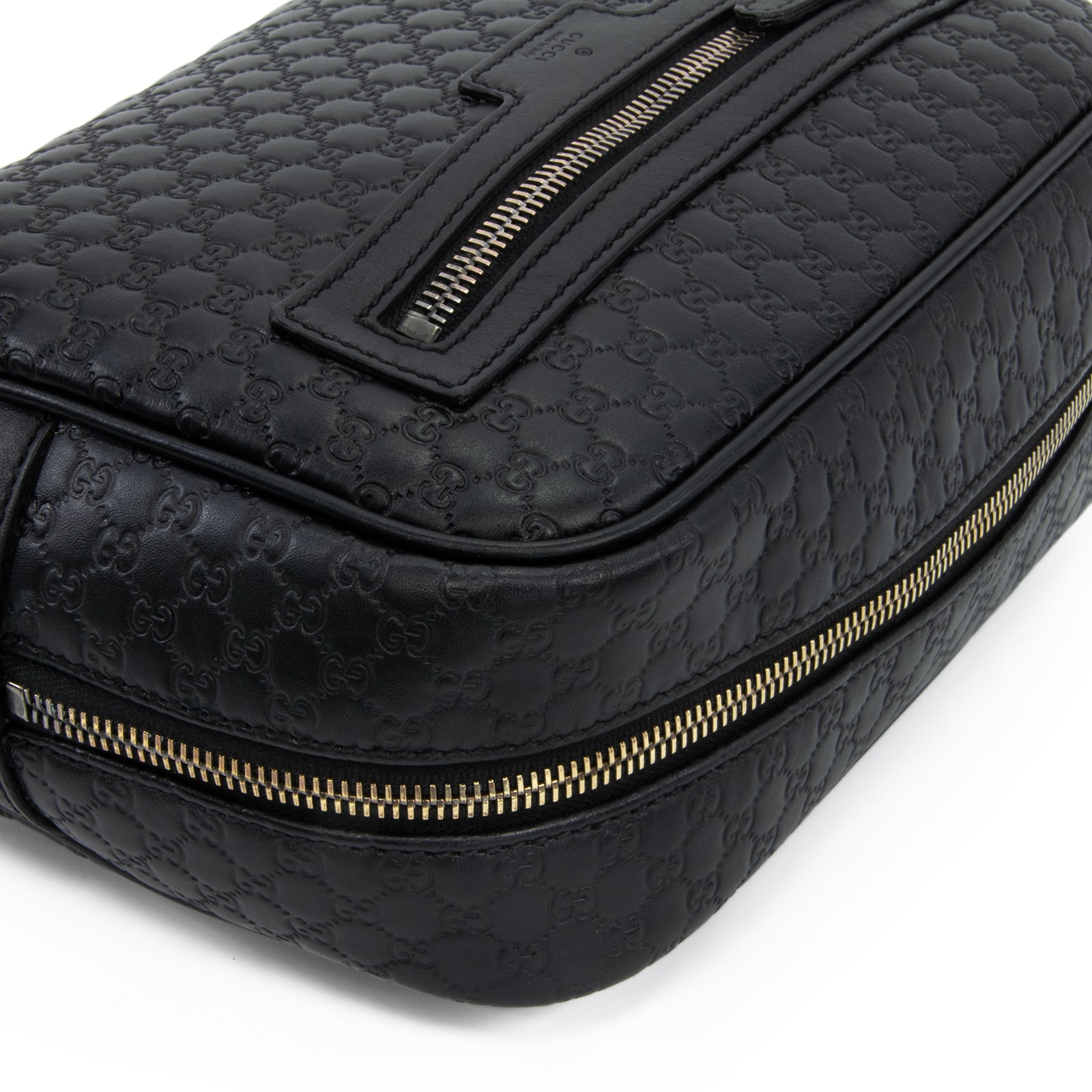 こちらは、グッチならではの最高級カーフスキンと繊細なGGロゴが美しく調和いたしました、グッチのマイクログッチシマ・セカンドバッグでございます。