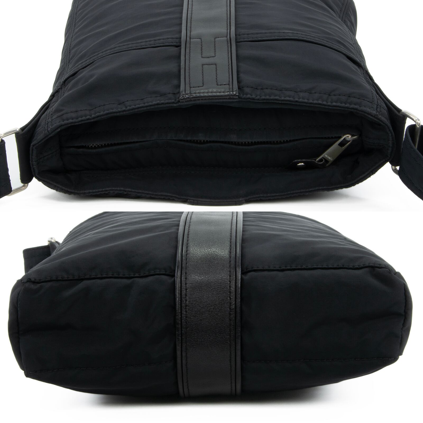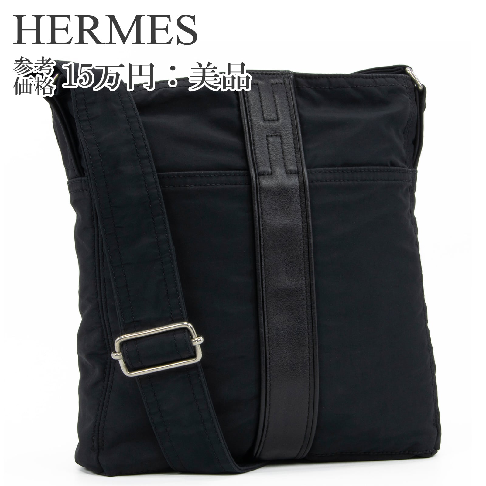 本物 送料無料 エルメス ショルダーバッグ メンズ レディース アカプルコ バンドリエールMM 黒 斜め掛け Hロゴ 本革 レザー 鞄 バック E475