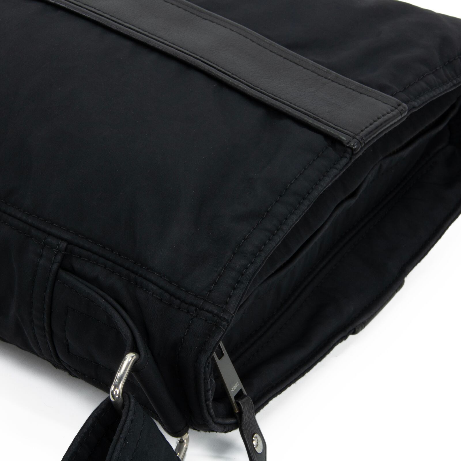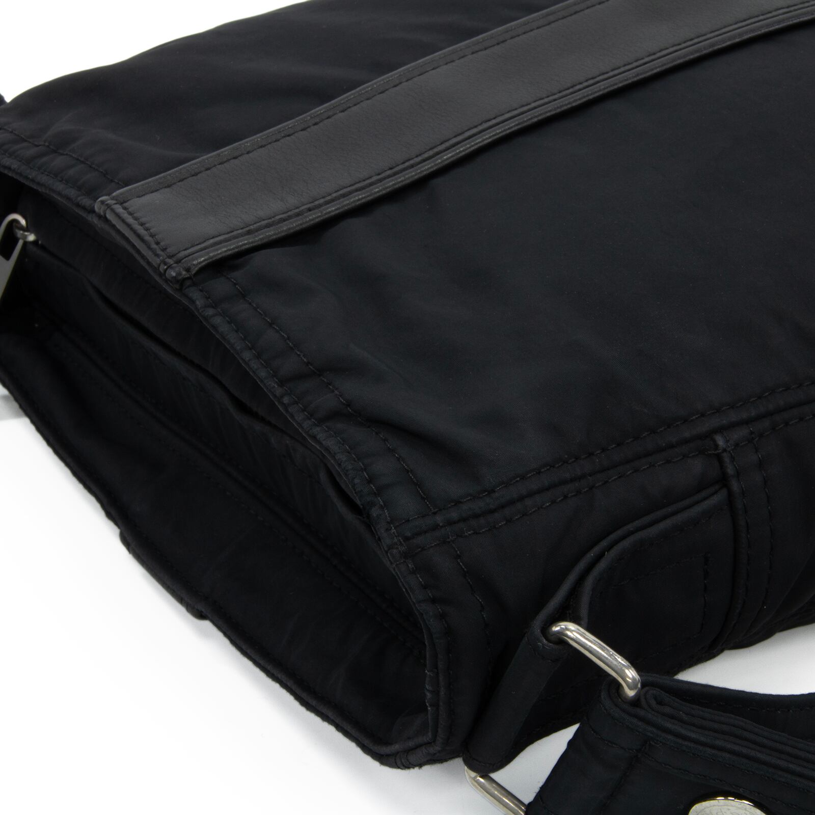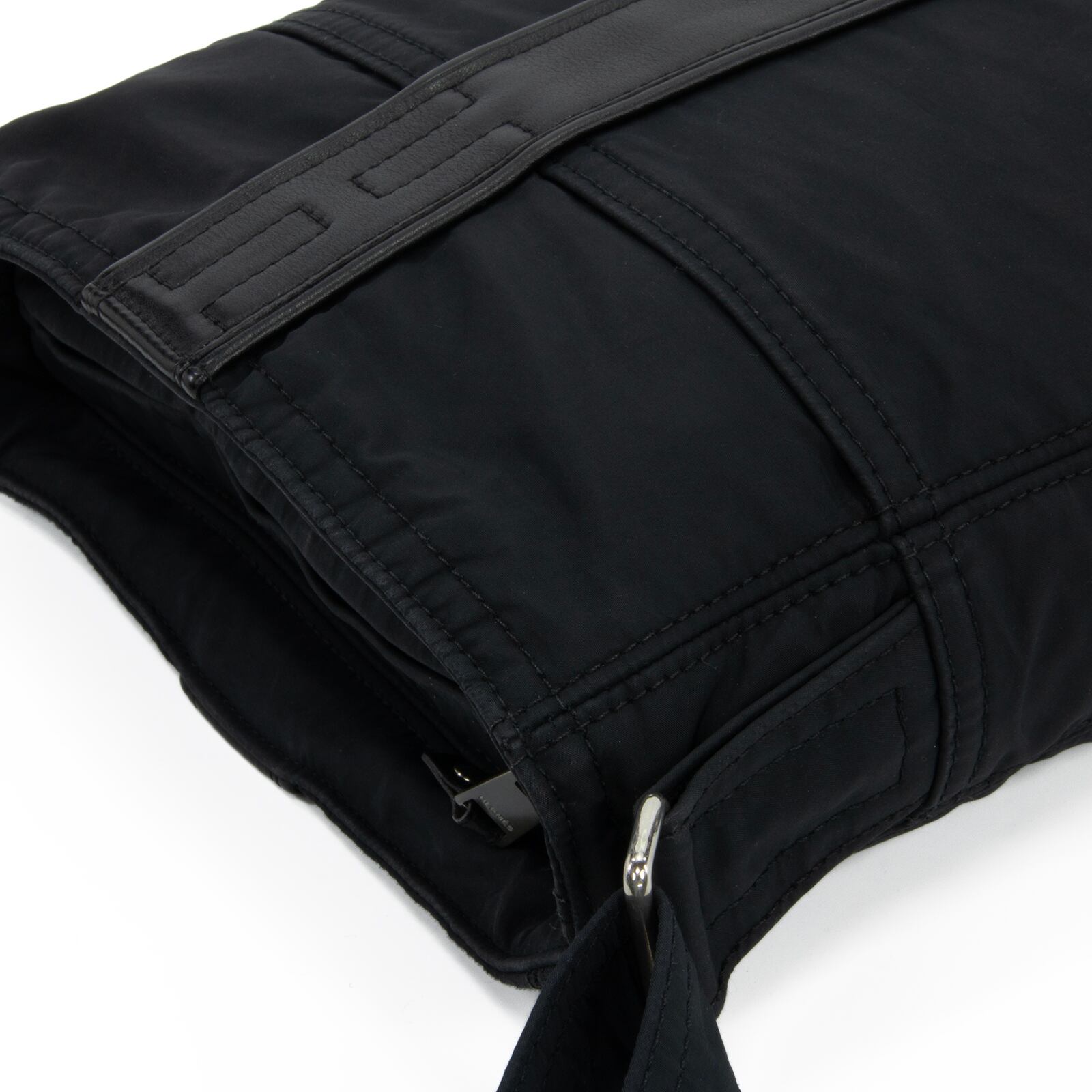 シルバー金具の輝きがアクセントとなり、落ち着いたブラックの風合いを引き締めております。
