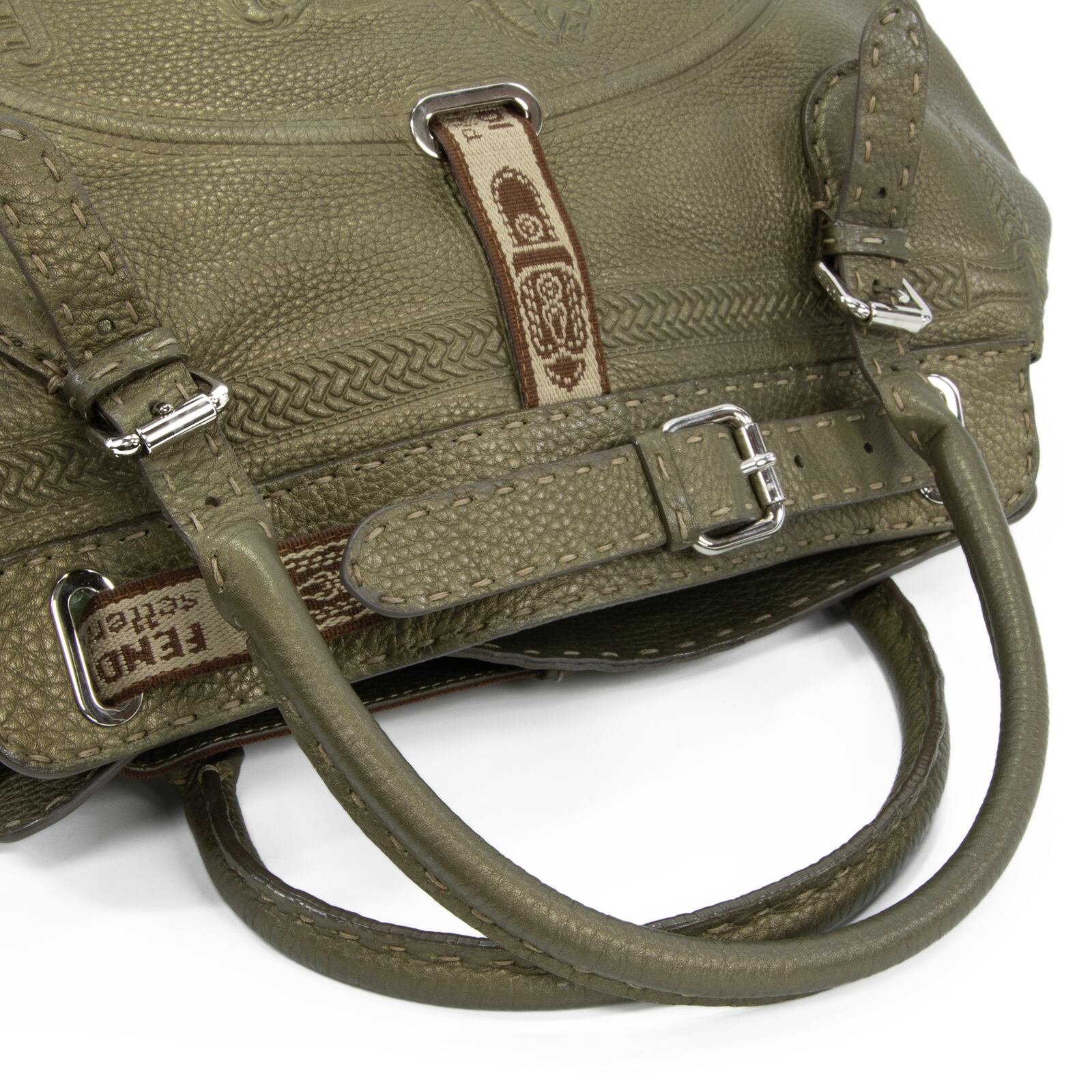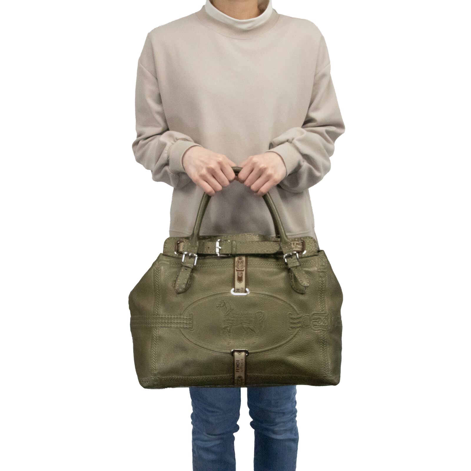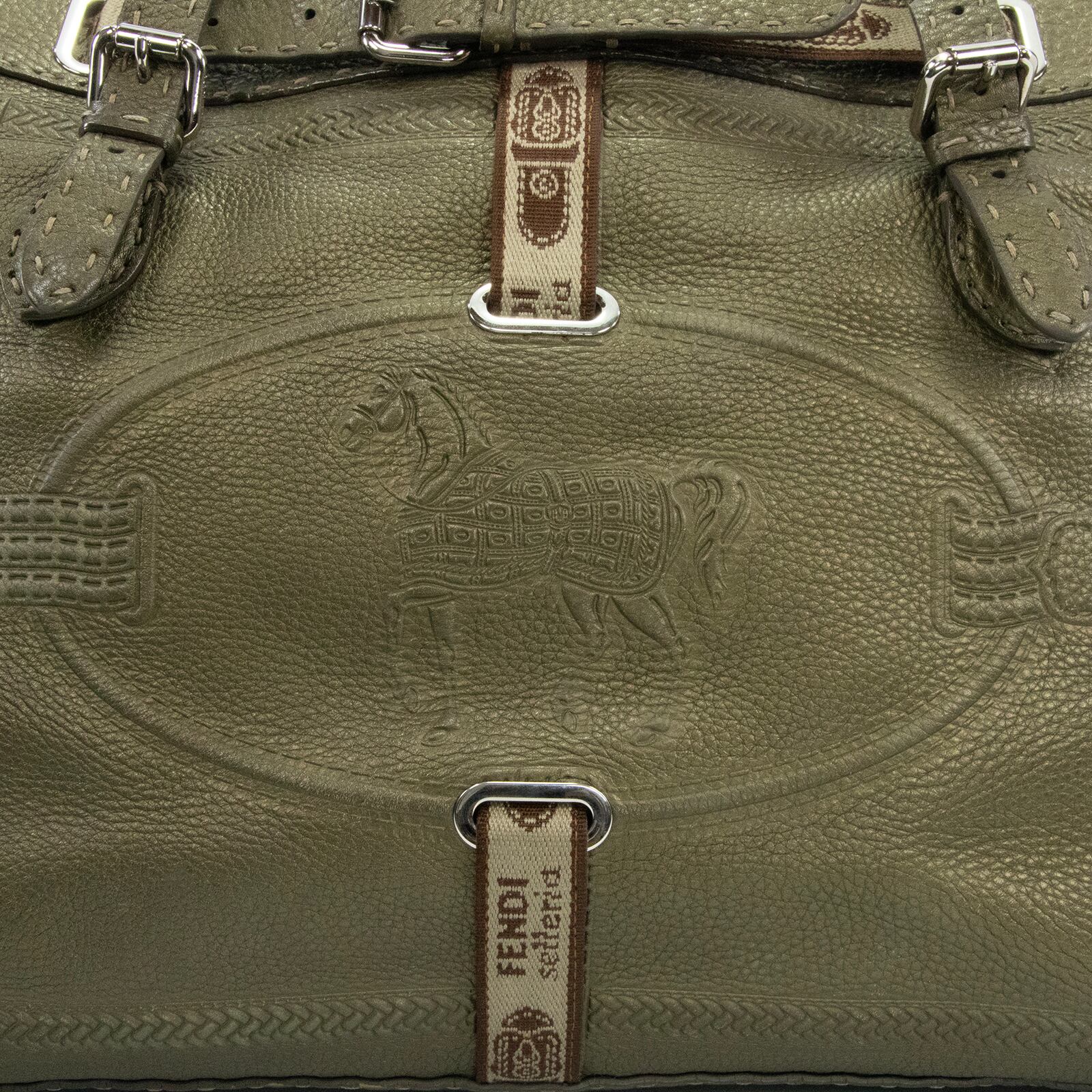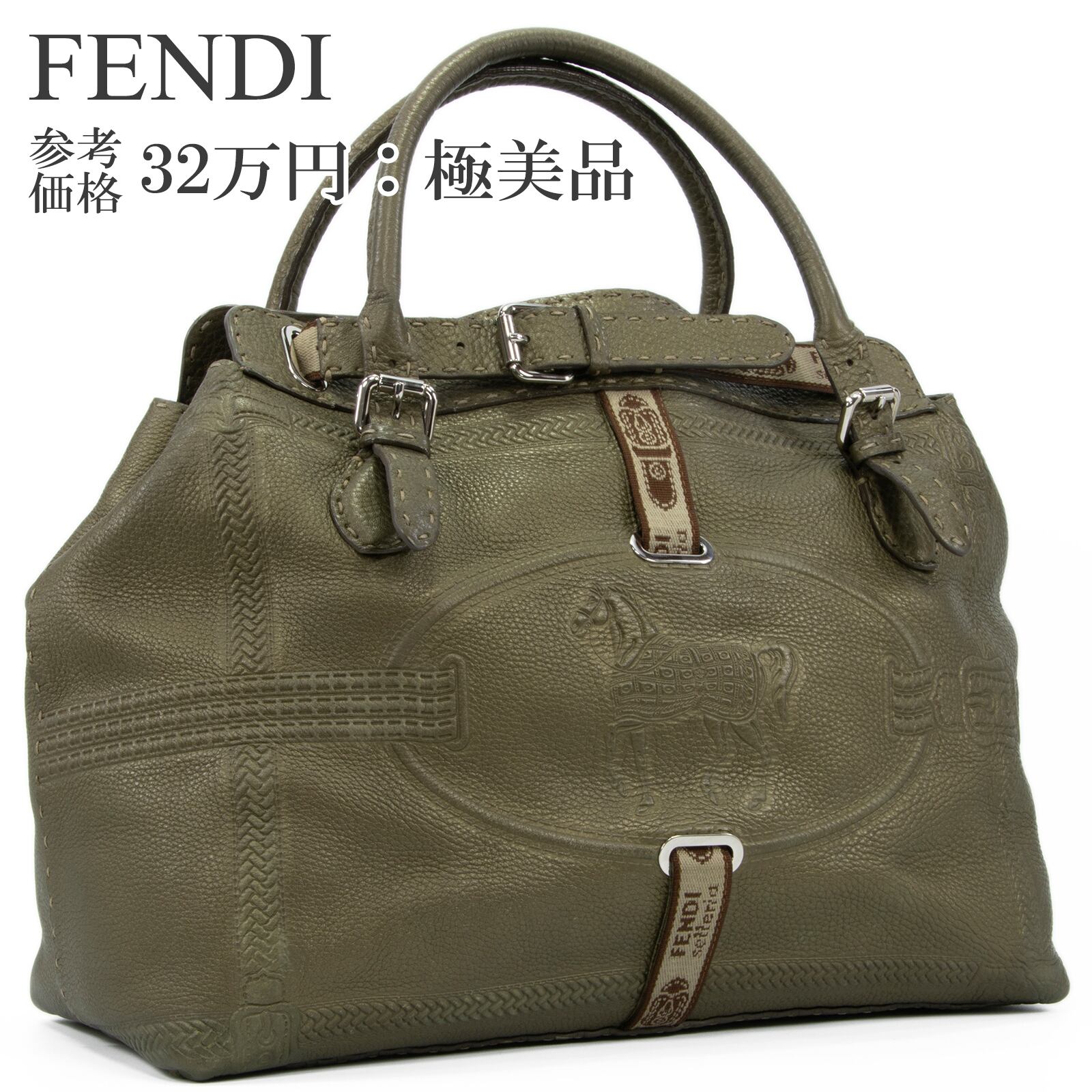 本物 送料無料 フェンディ ハンドバッグ メンズ レディース ヴィラボルゲーゼ セレリア 緑 珍しい 旅行 大きめ 馬 マーク 鞄 バック E476