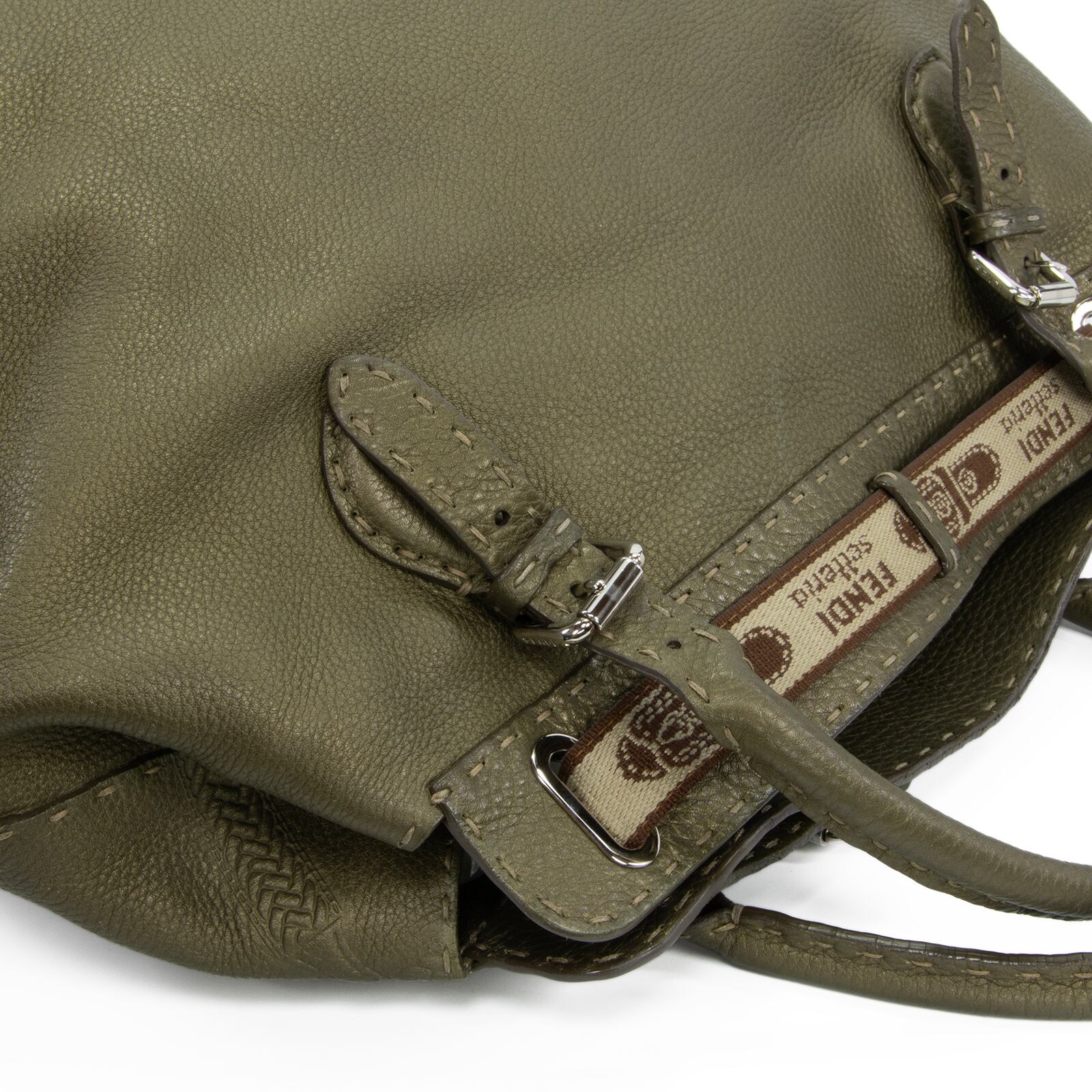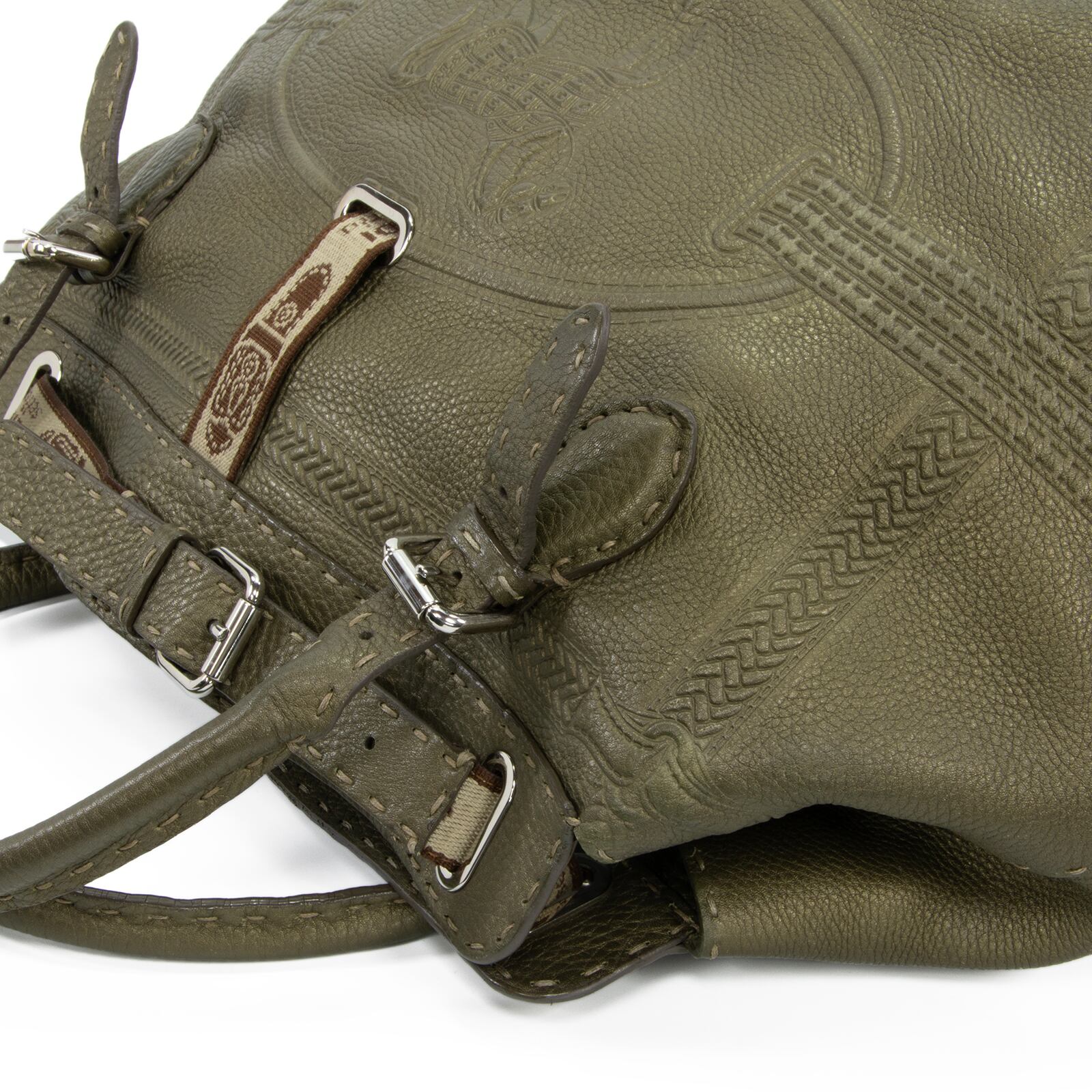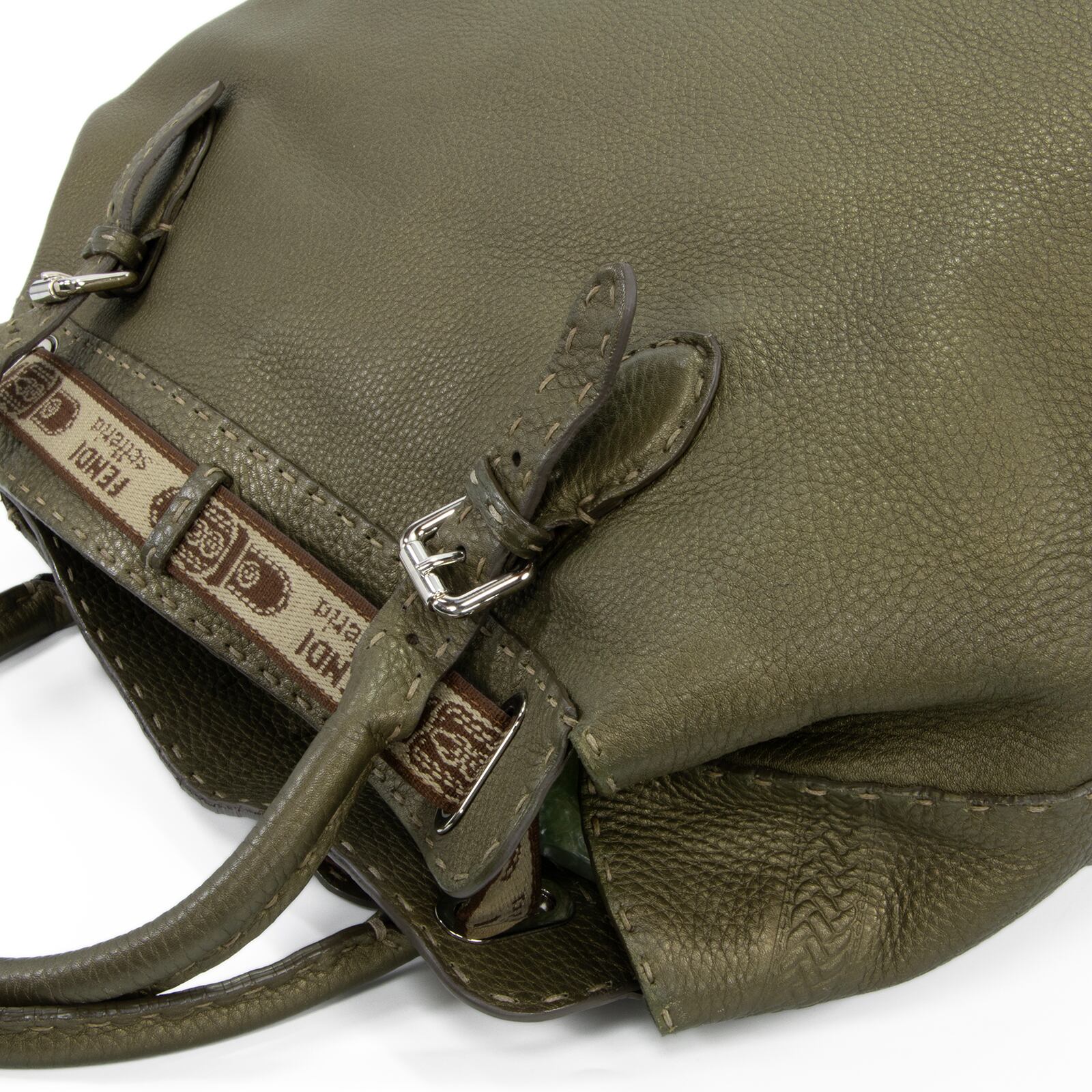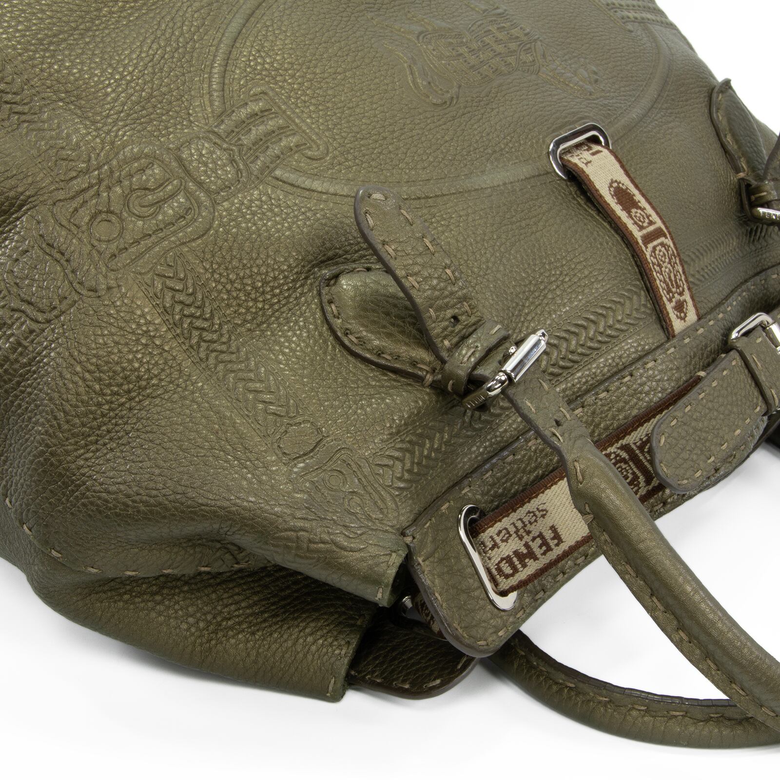 こちらは、洗練されたメタリックグリーンの輝きと、一目でフェンディとわかるホースロゴが周囲を魅了する、フェンディのヴィラボルゲーゼ・セレリア・ラージ・ハンドバッグでございます。