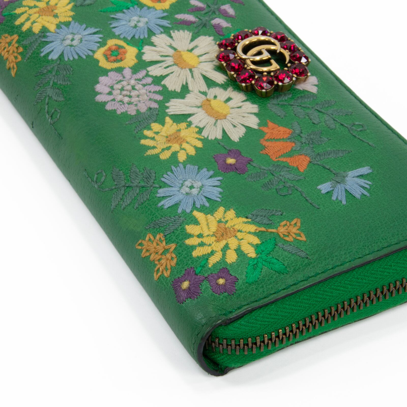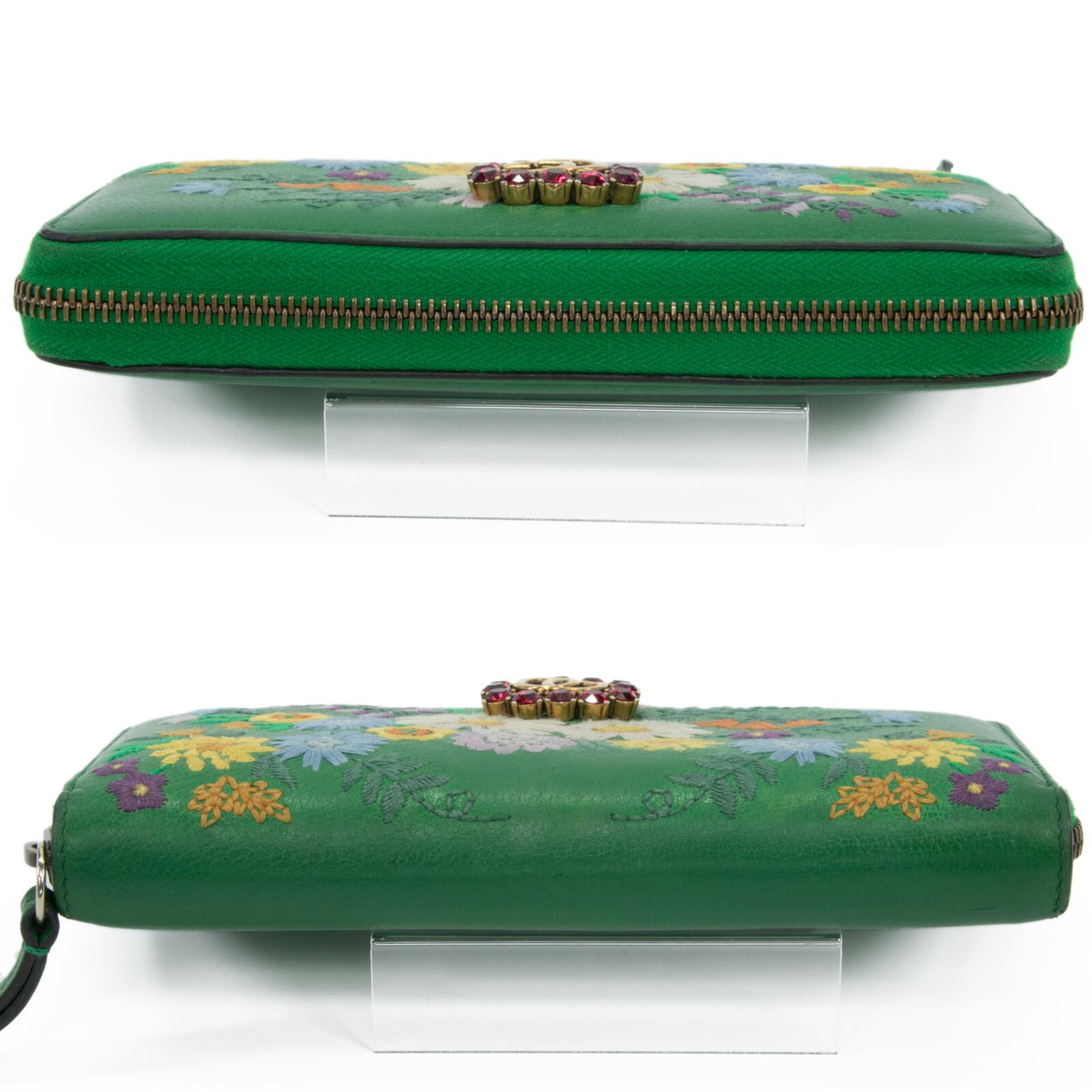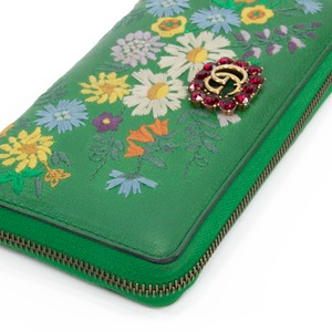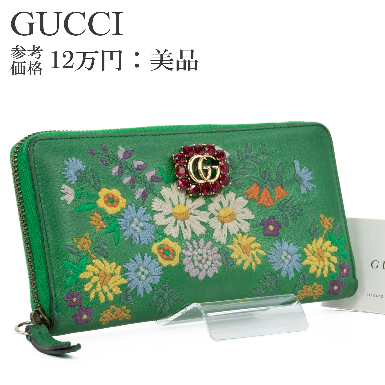 本物 送料無料 グッチ 長財布 ラウンドファスナー レディース 2018年限定 GGマーモント 緑 赤 黄色 水色 レア 花 ビジュー かわいい C250