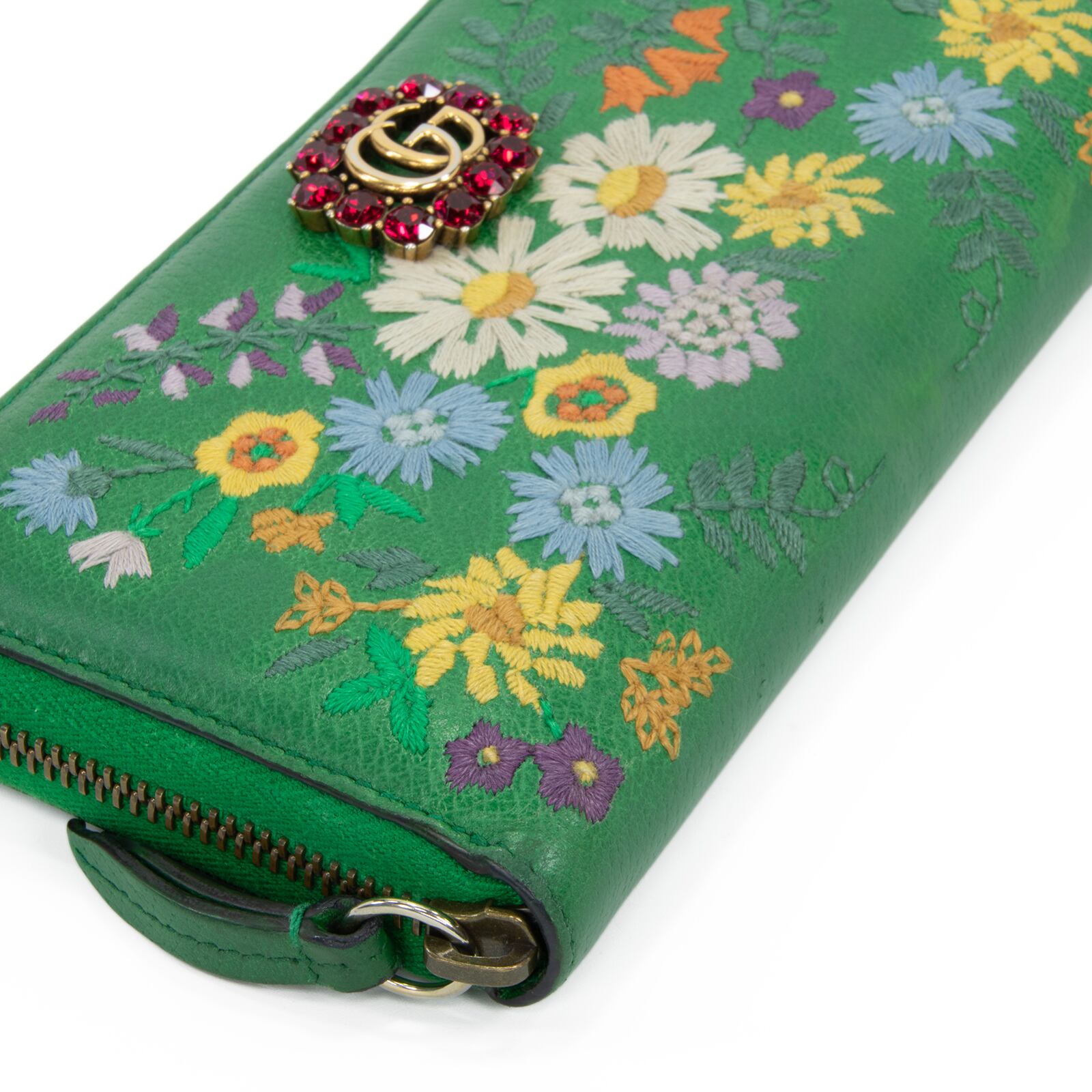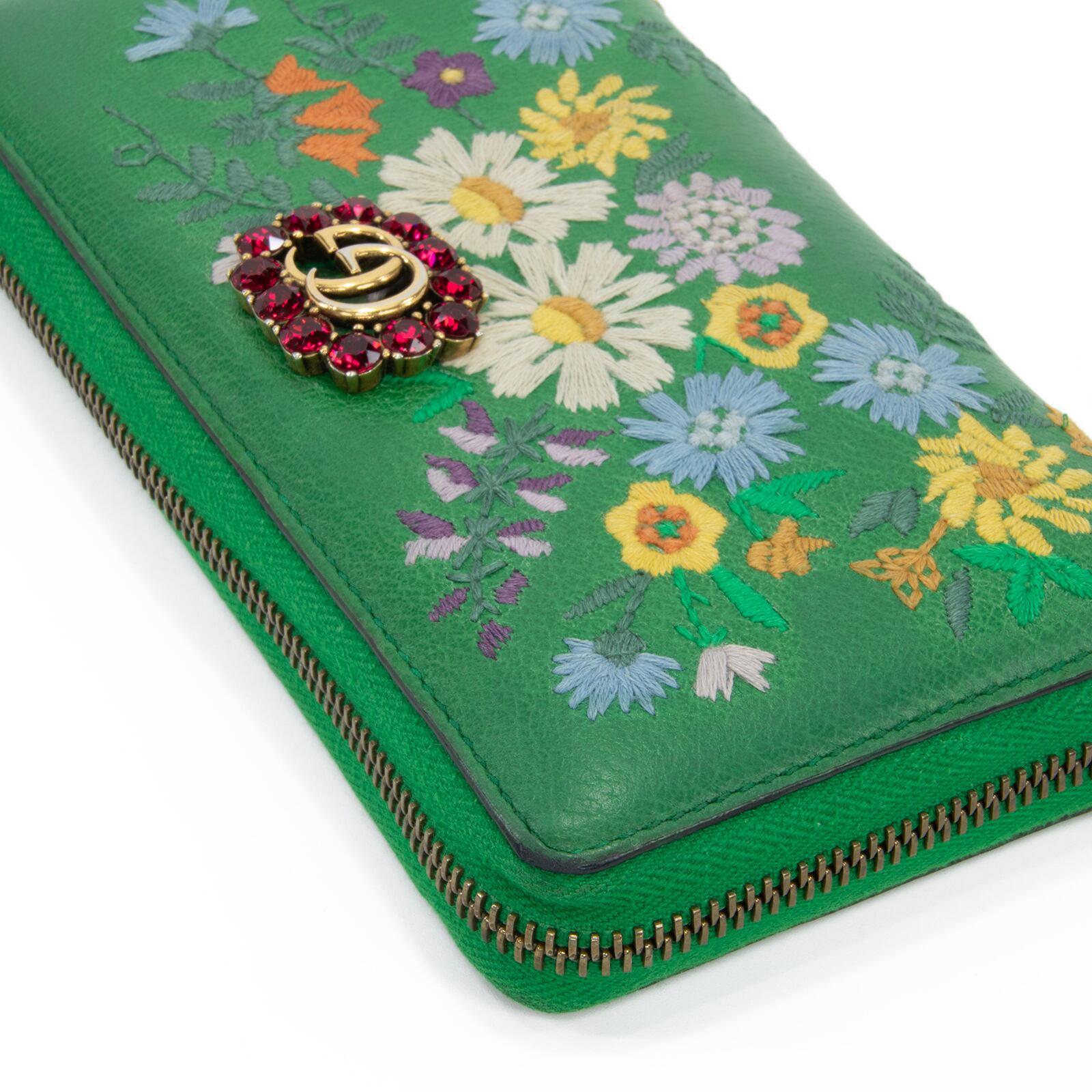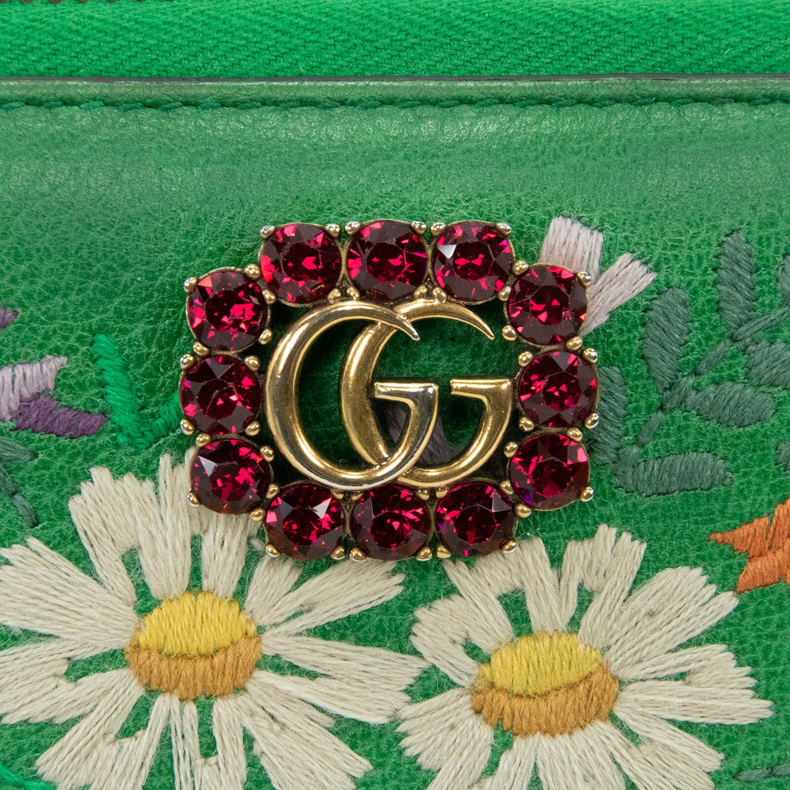 本物 送料無料 グッチ 長財布 ラウンドファスナー レディース 2018年限定 GGマーモント 緑 赤 黄色 水色 レア 花 ビジュー かわいい C250