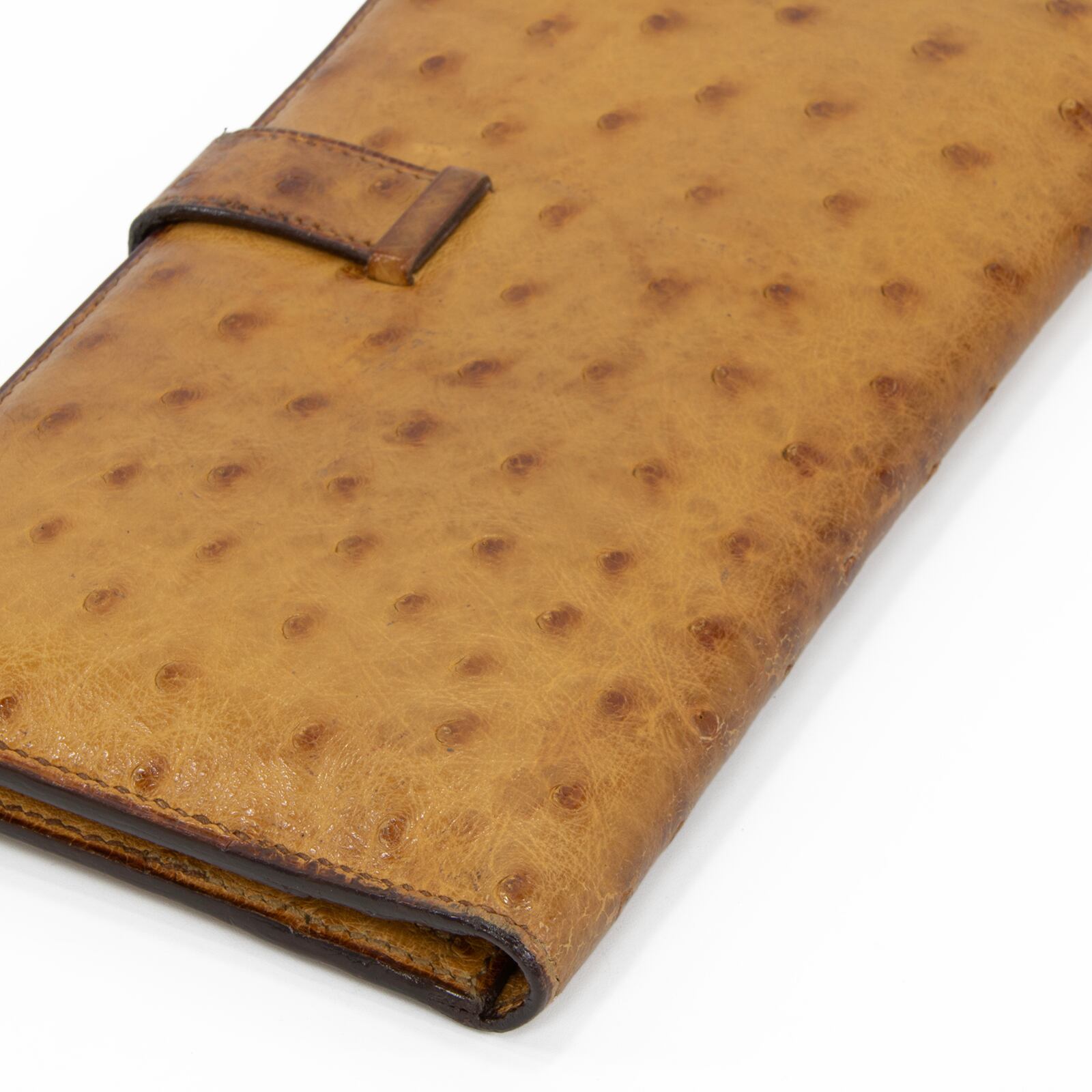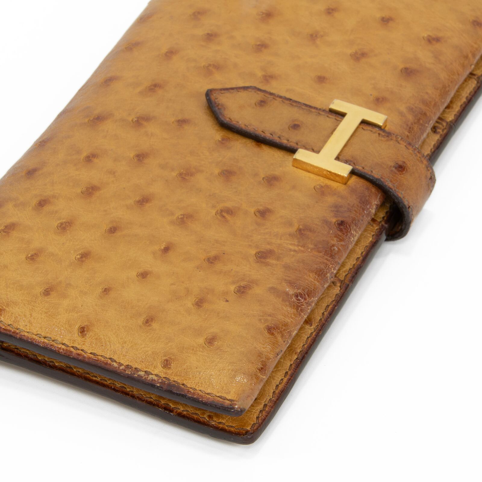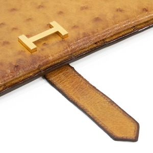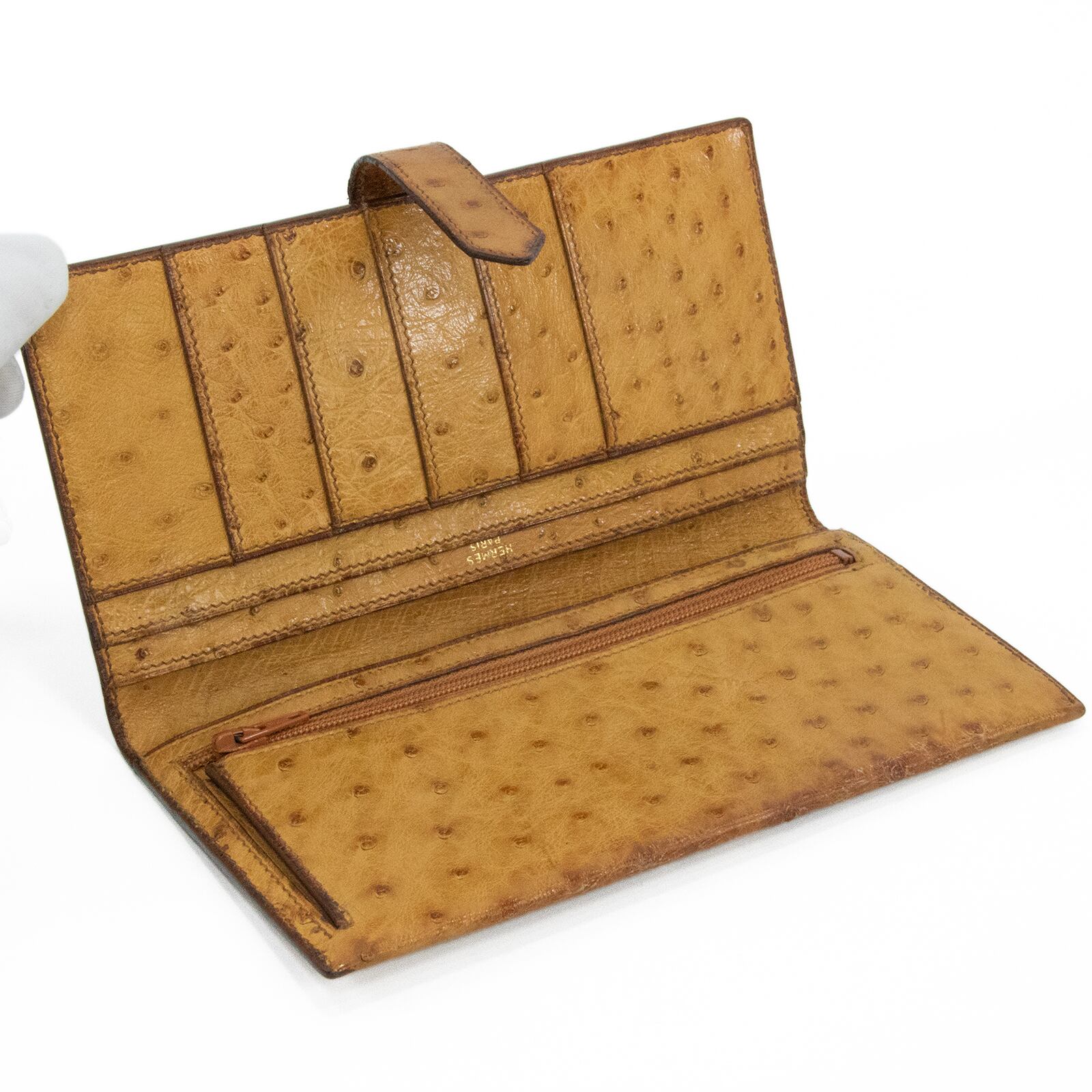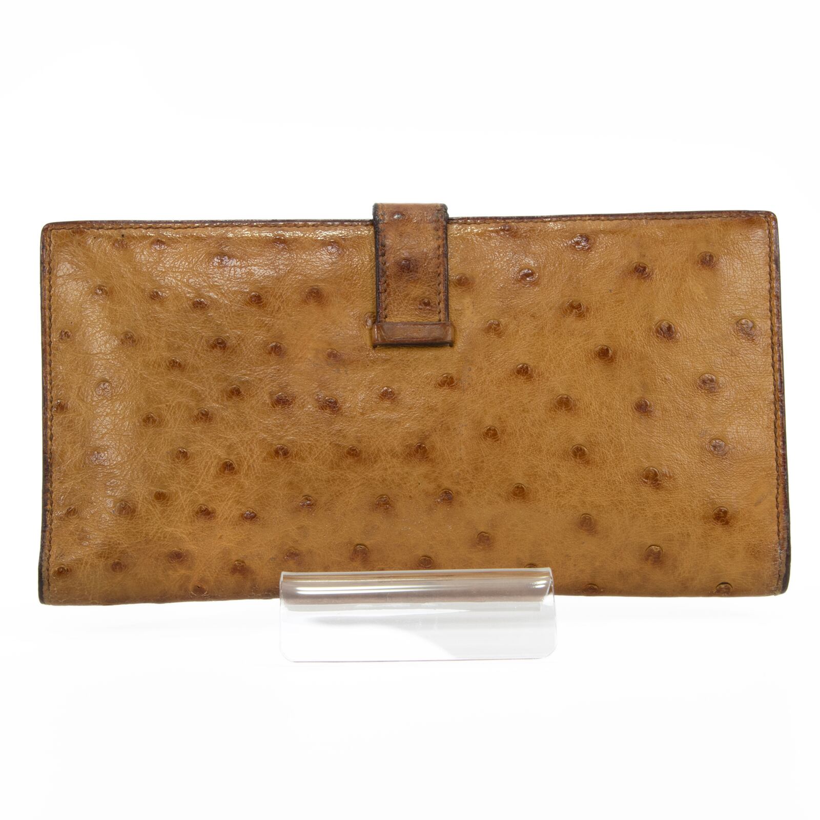本物 送料無料 エルメス 長財布 二つ折り財布 メンズ レディース オーストリッチ ベアン クラシック 茶色 レア スリム Hゴールド金具 H091