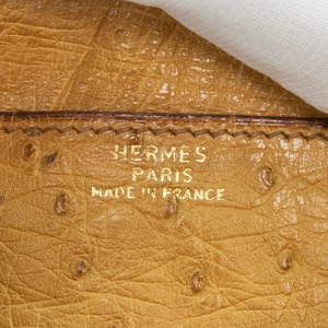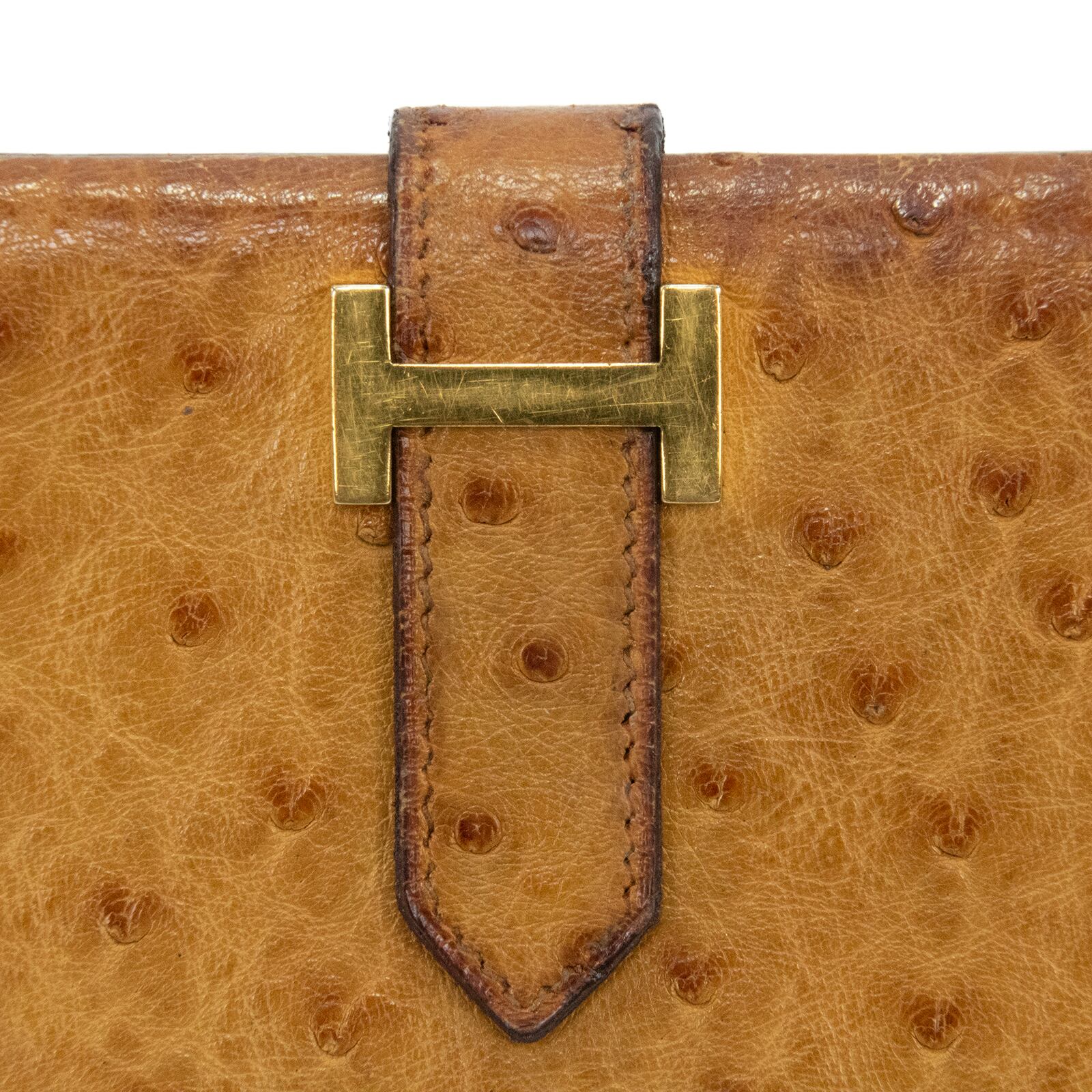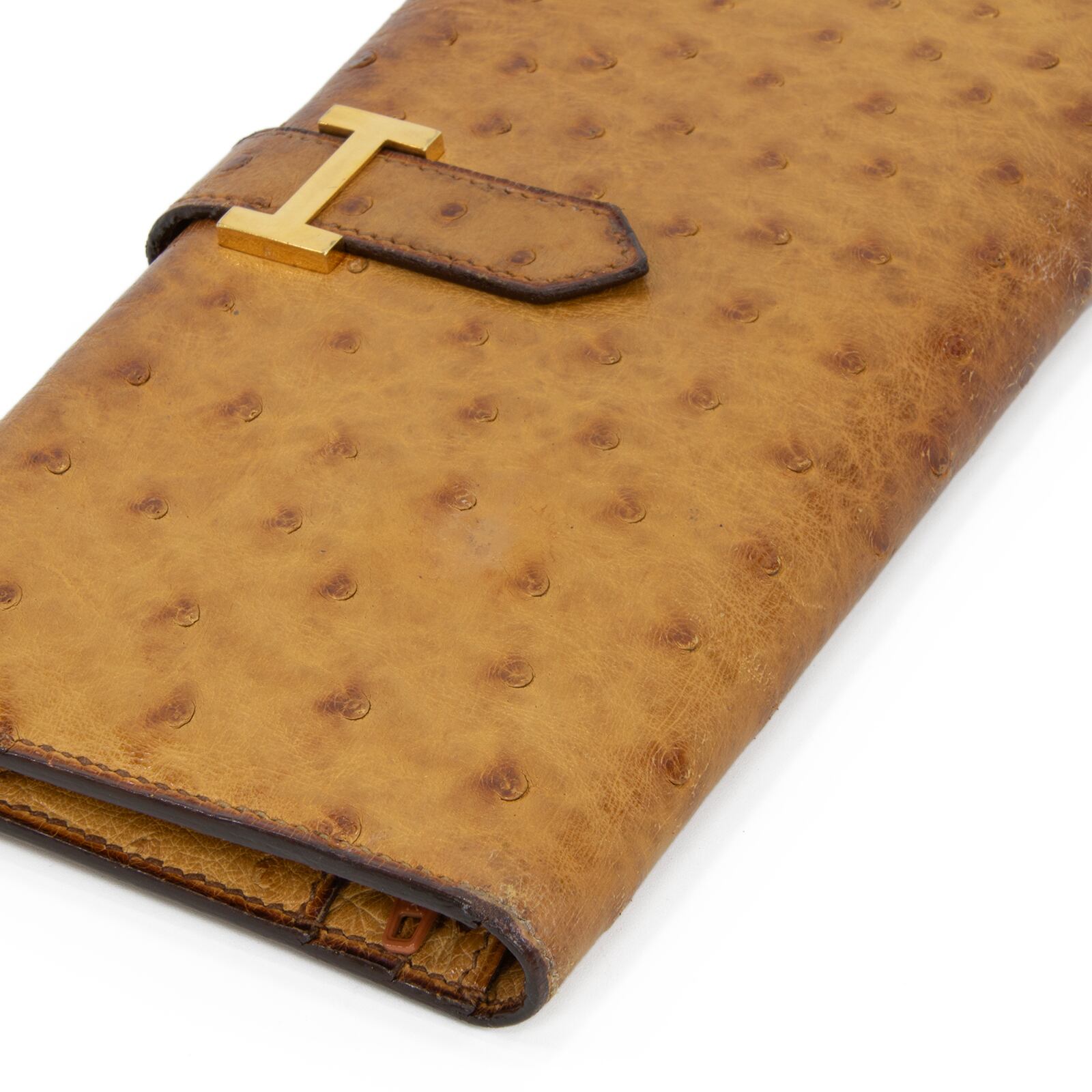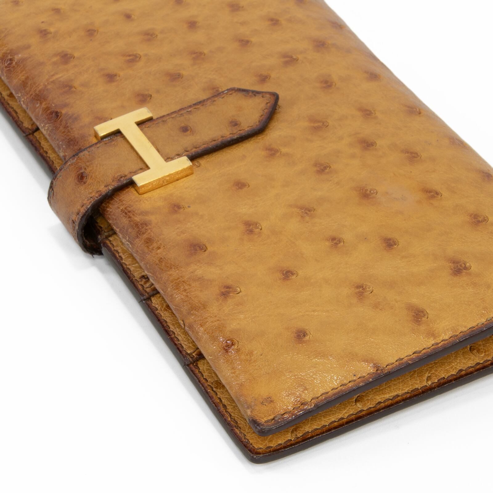 本物 送料無料 エルメス 長財布 二つ折り財布 メンズ レディース オーストリッチ ベアン クラシック 茶色 レア スリム Hゴールド金具 H091