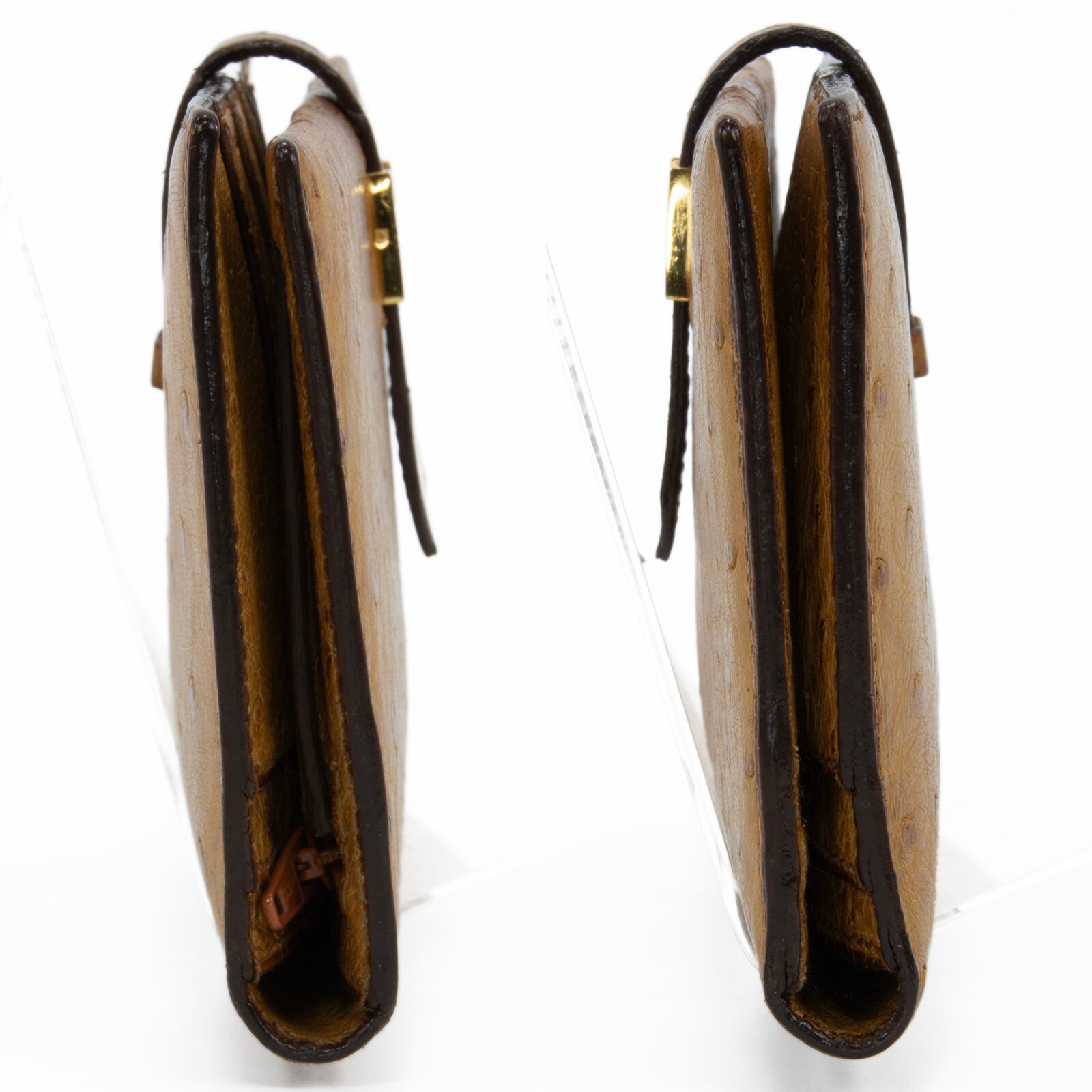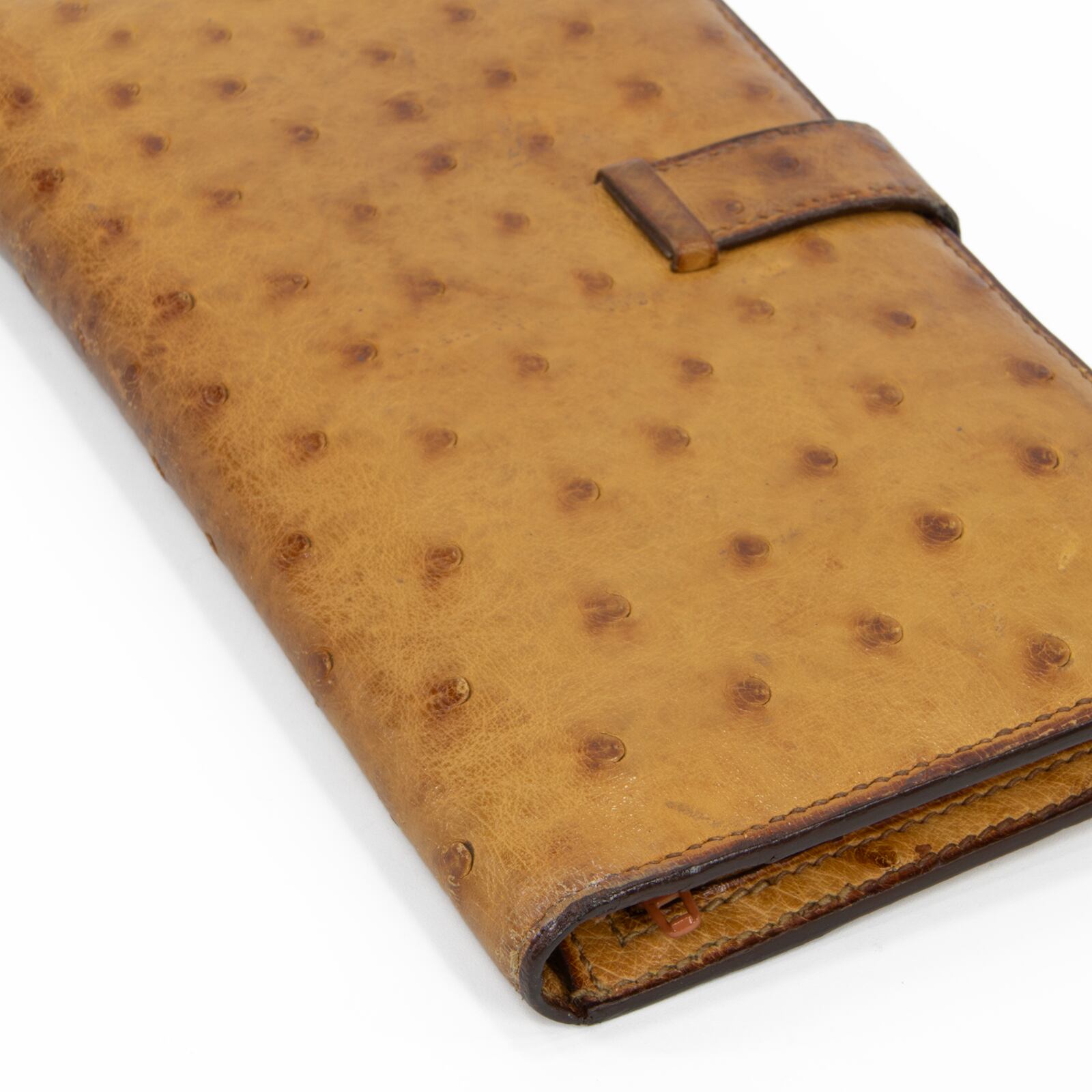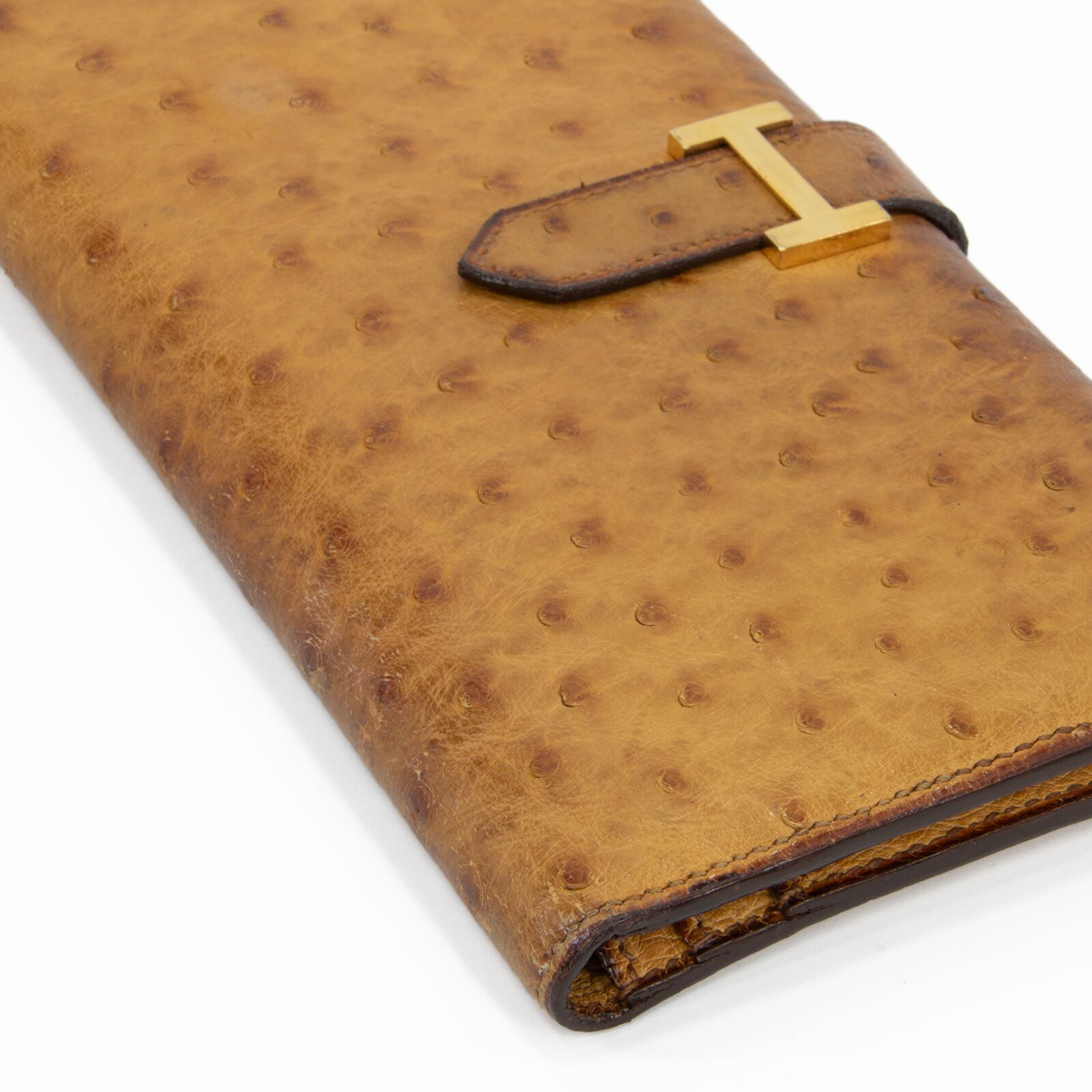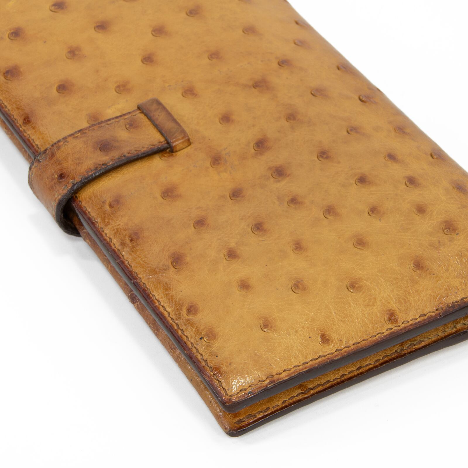 本物 送料無料 エルメス 長財布 二つ折り財布 メンズ レディース オーストリッチ ベアン クラシック 茶色 レア スリム Hゴールド金具 H091