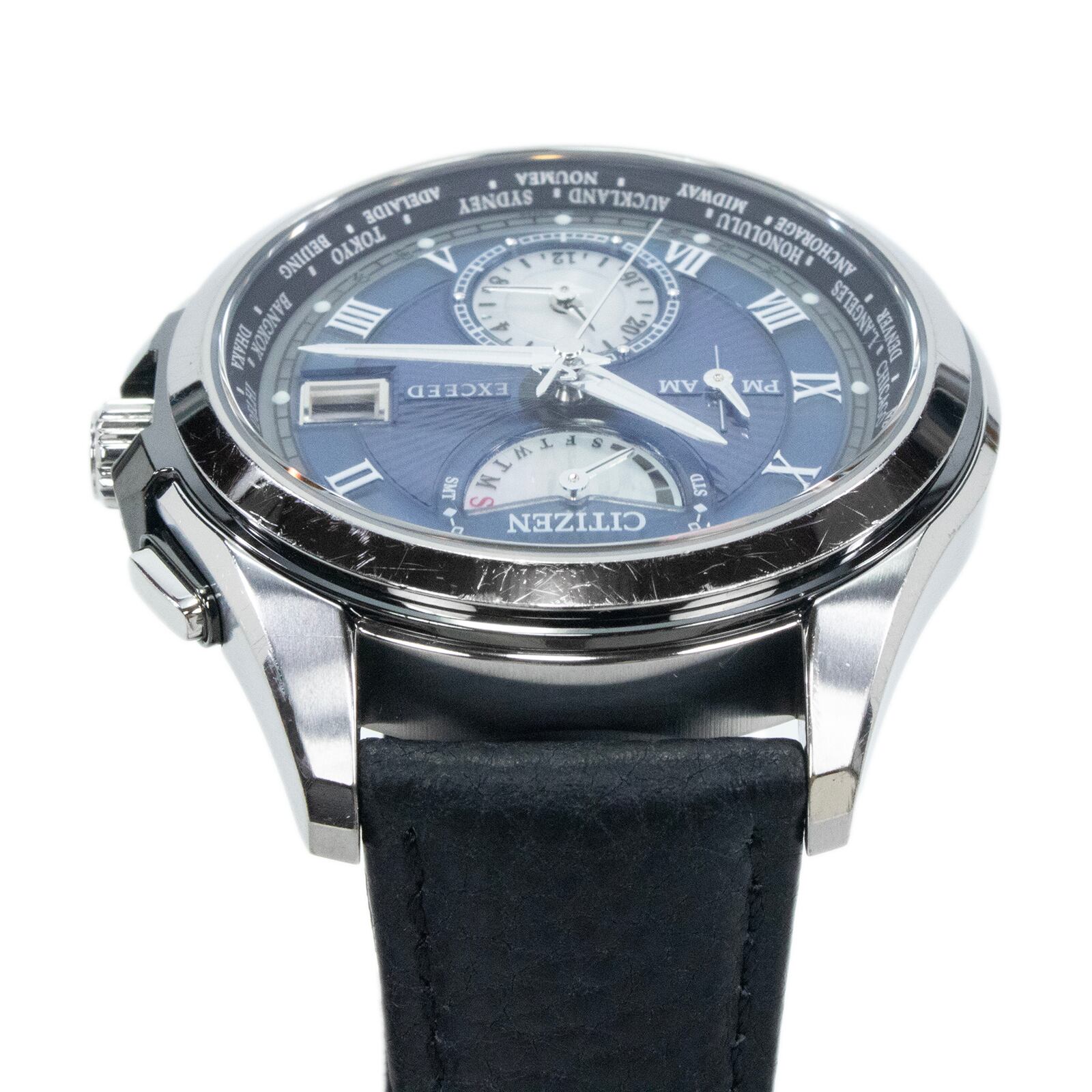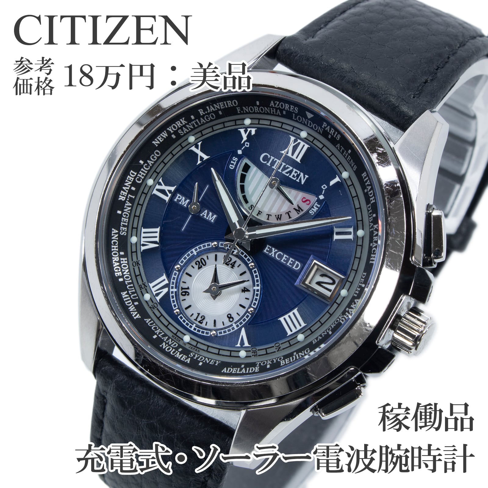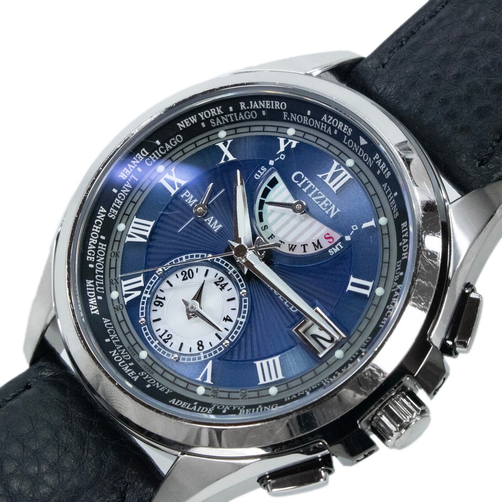 稼働品 送料無料 シチズン 腕時計 ソーラー電波 メンズ 650本限定 LIGHT in BLACK 2016 BLUE EDITION エクシード H820-T022120 綺麗 X537