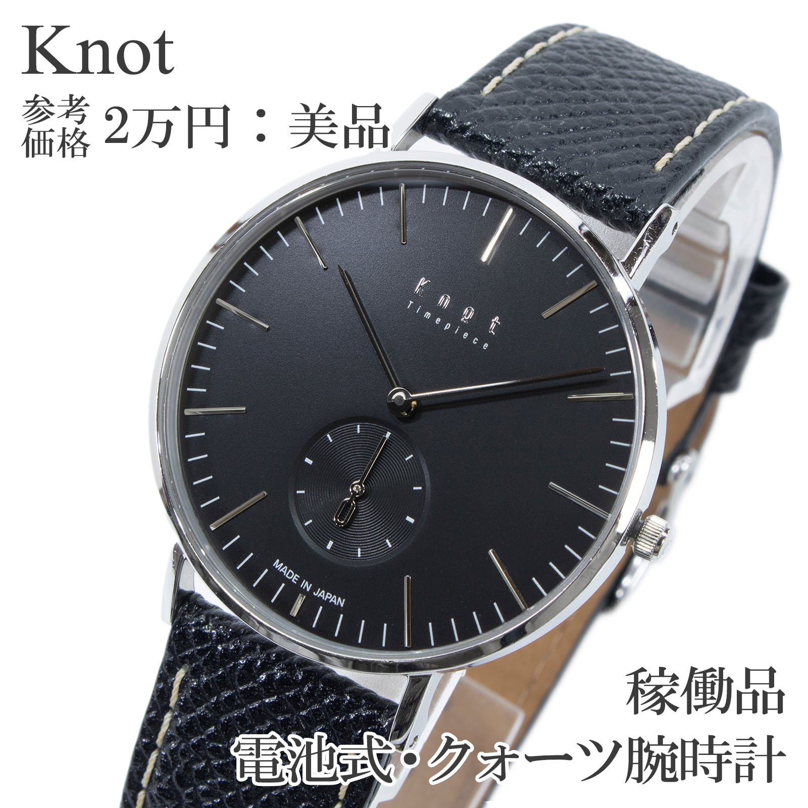 稼働品 送料無料 Knot ノット 腕時計 クォーツ メンズ CS-36SVBK 黒 シルバー シンプル フォーマル スリム 軽い ロゴ ブランド 綺麗 Z016
