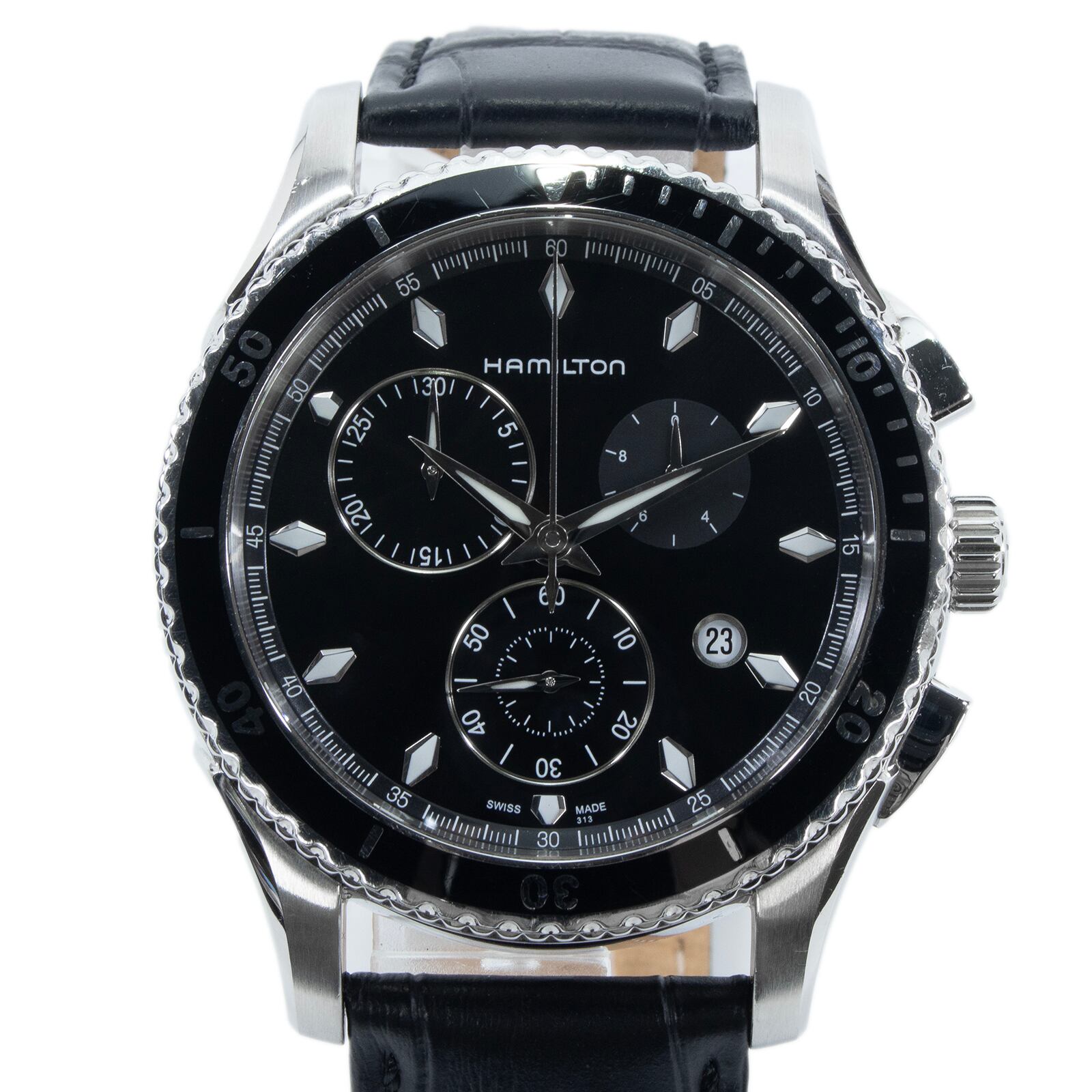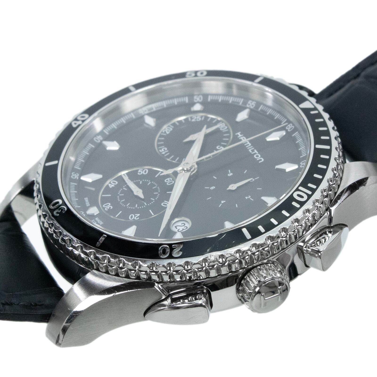 稼働品 送料無料 ハミルトン 腕時計 クォーツ メンズ ジャズマスター シービュー H375120 黒 珍しい レアモデル クロノグラフ 綺麗 Q236