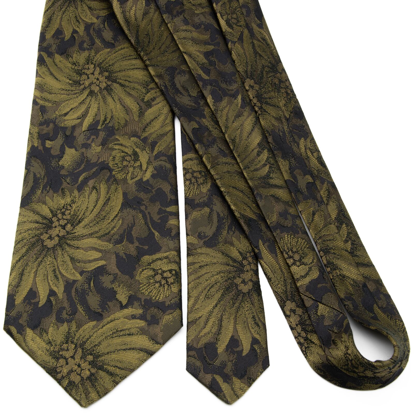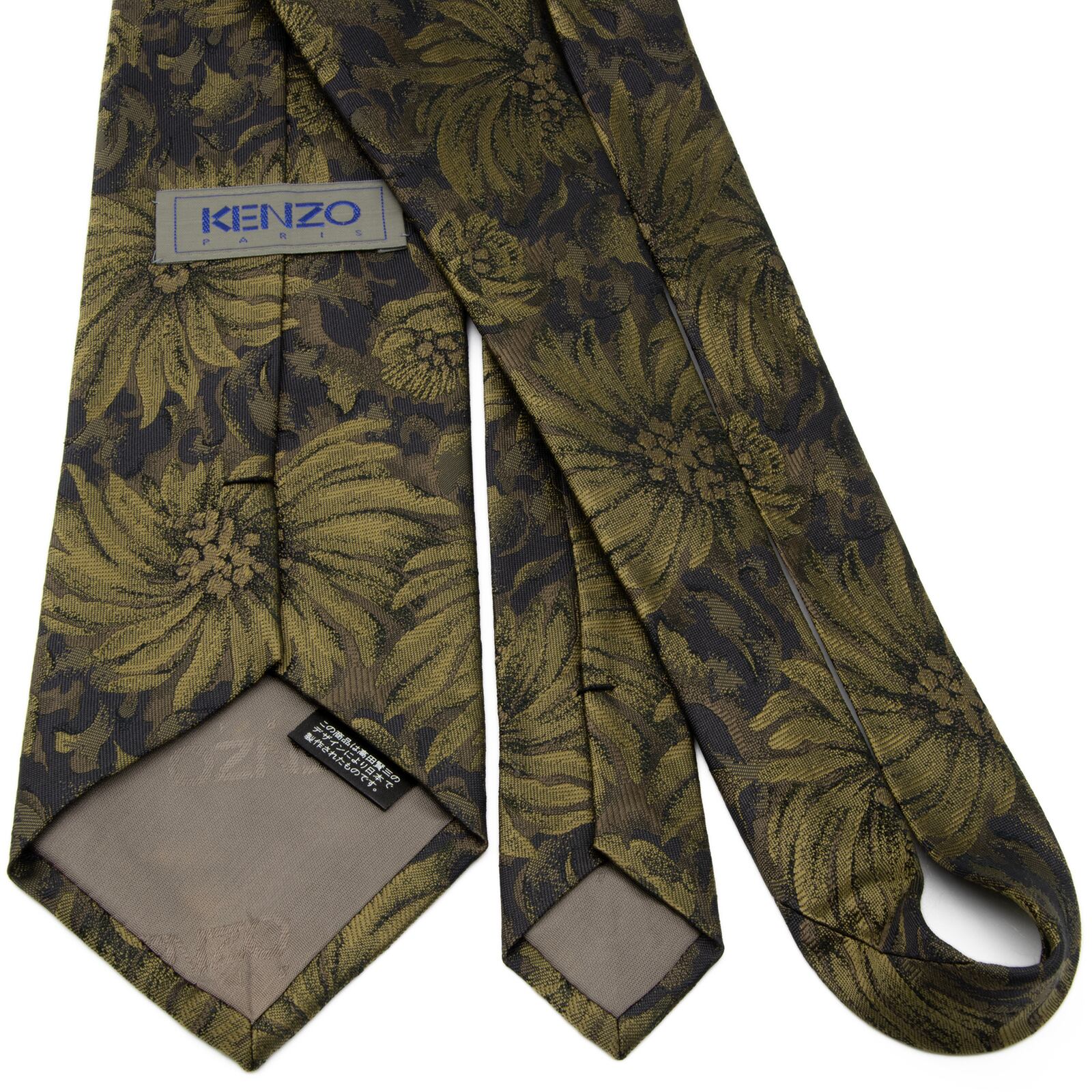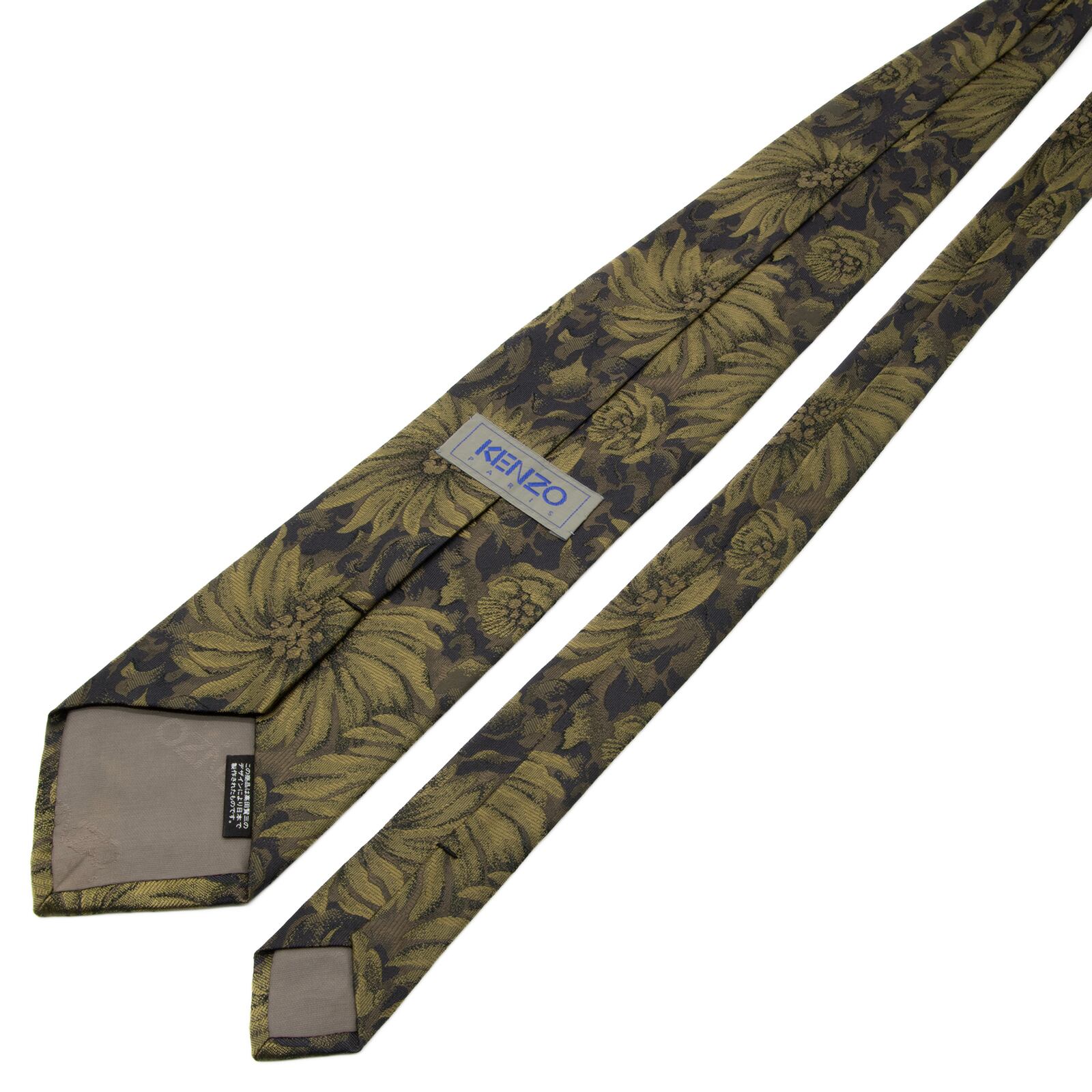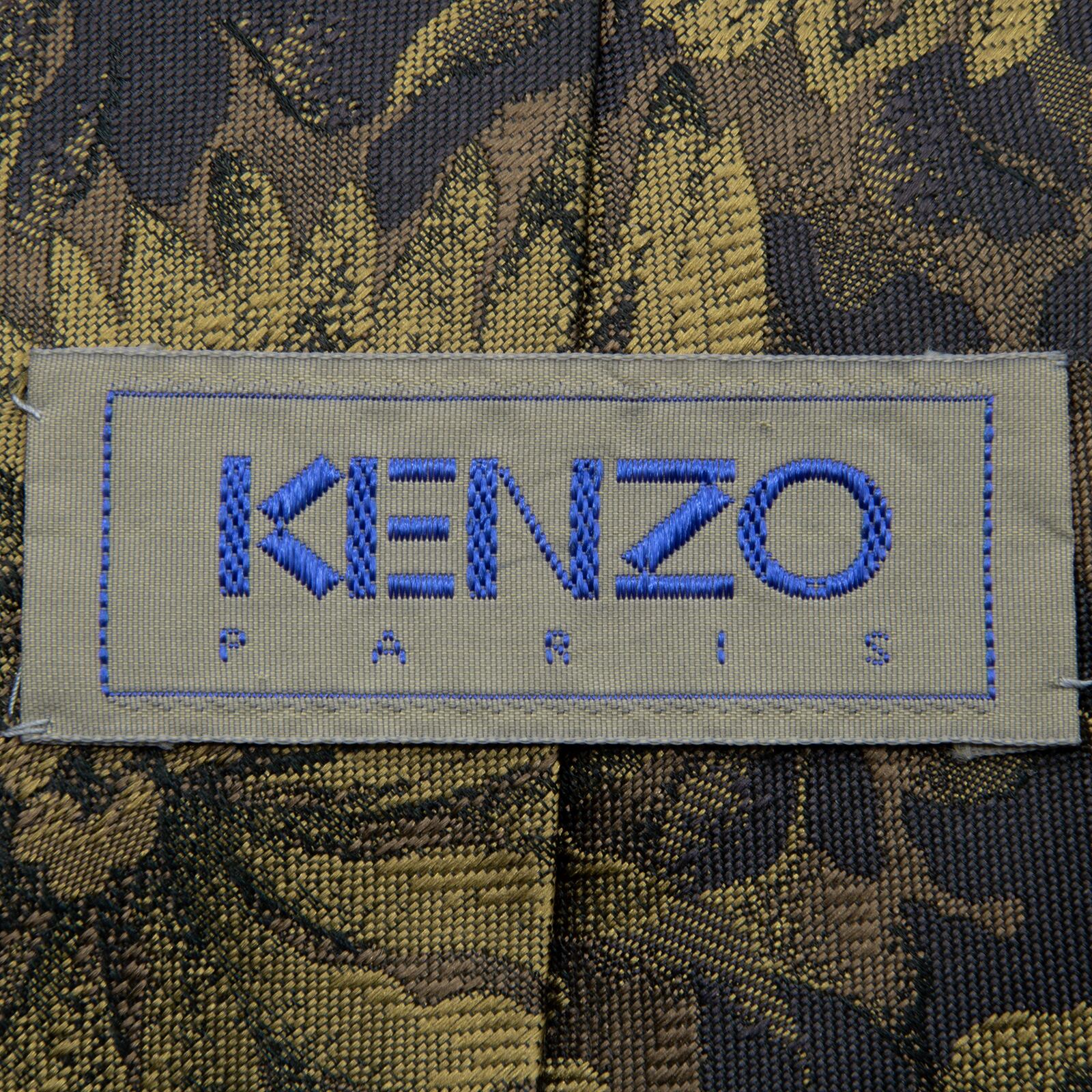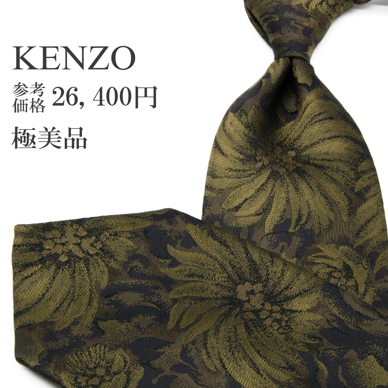 送料無料 ケンゾー ネクタイ レギュラータイ ジャガード 緑 メタリックグリーン 黒 ブロンズ 総柄 Y2K 00s 光沢 花 派手 ハイブランド P475