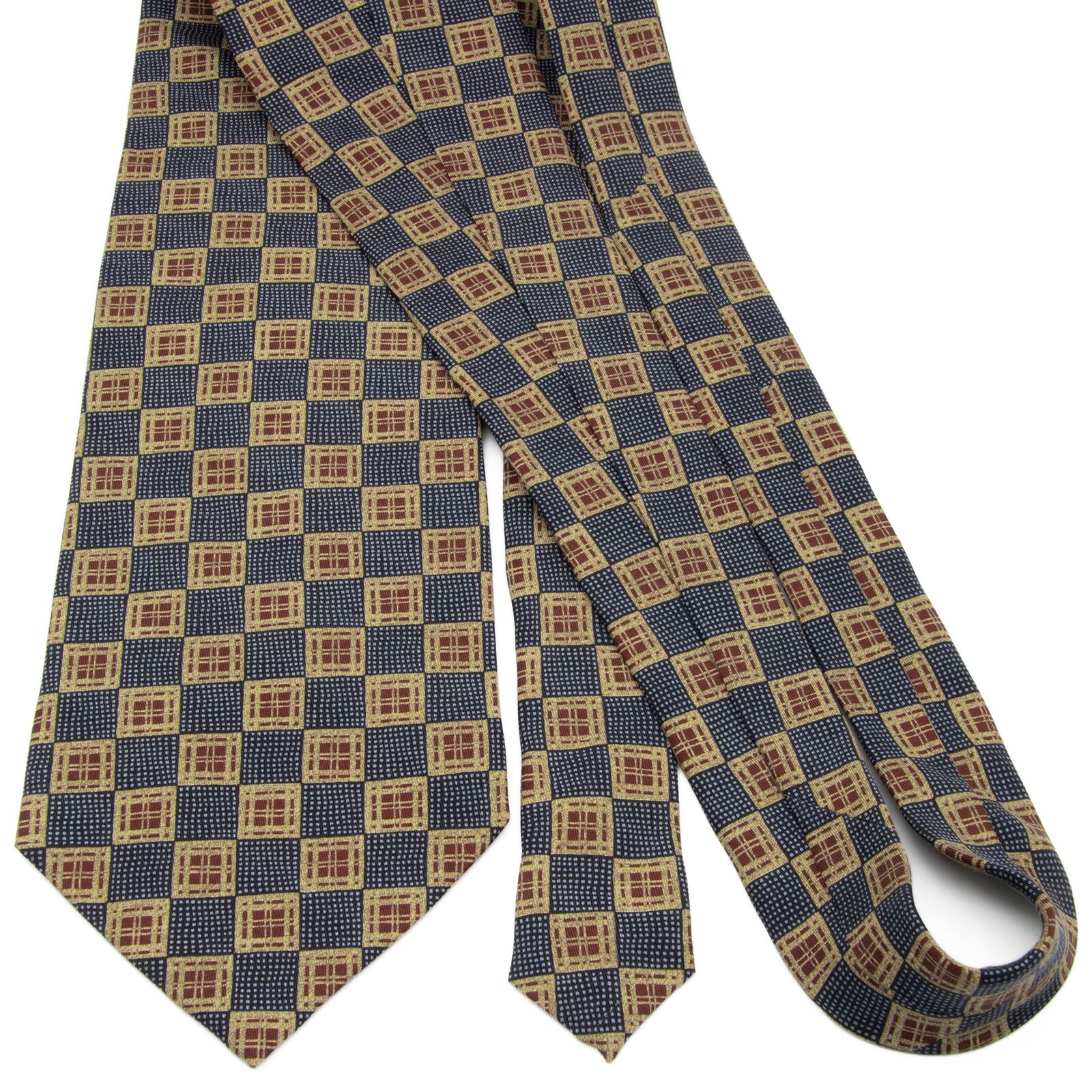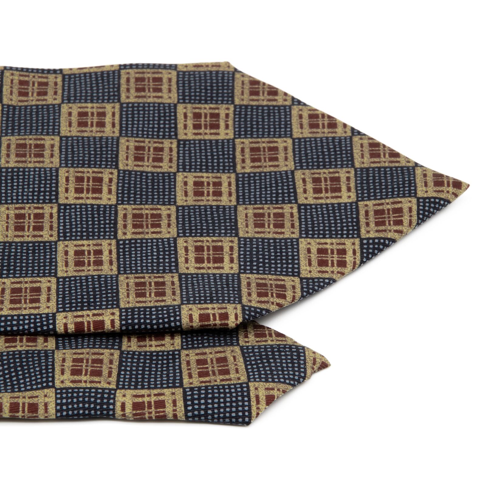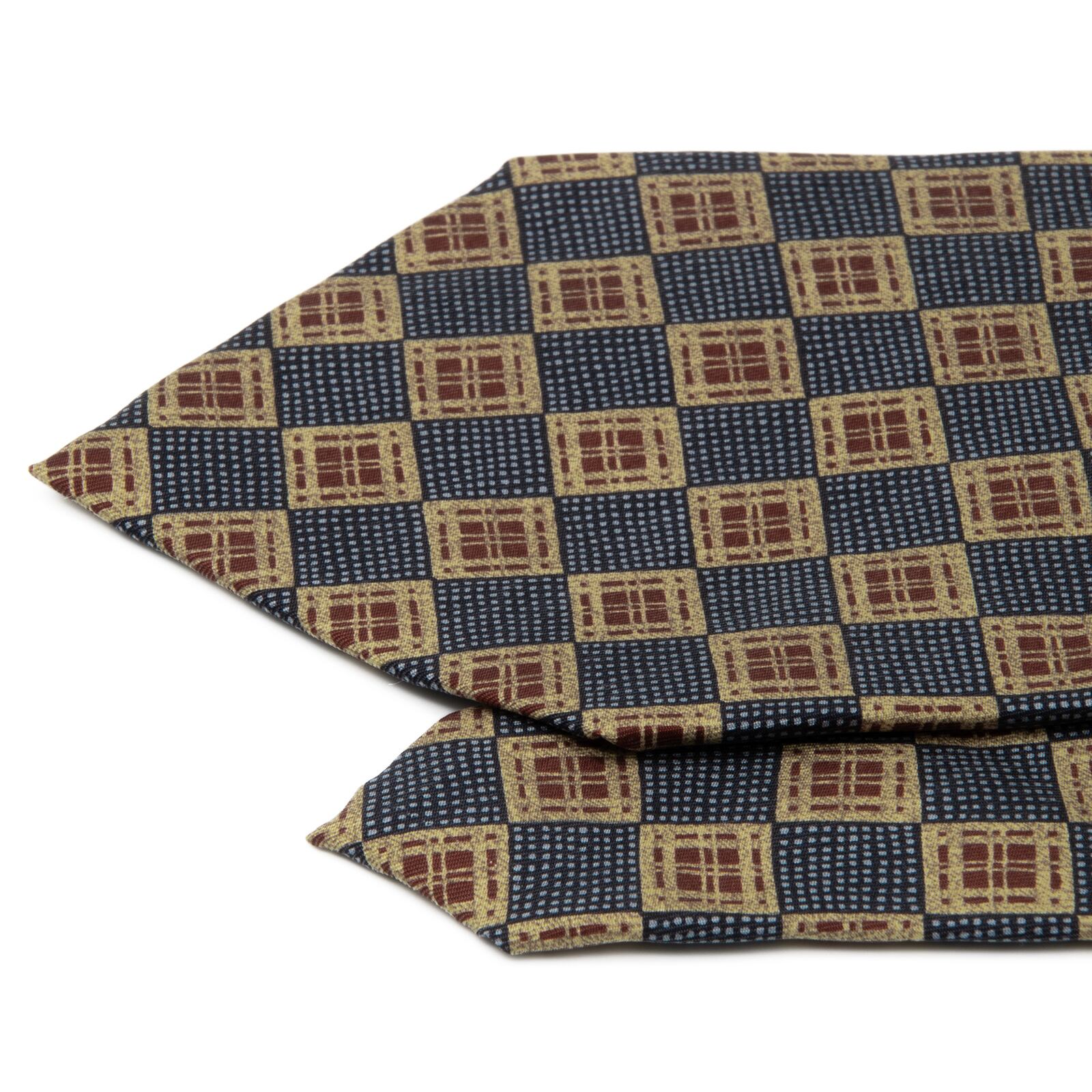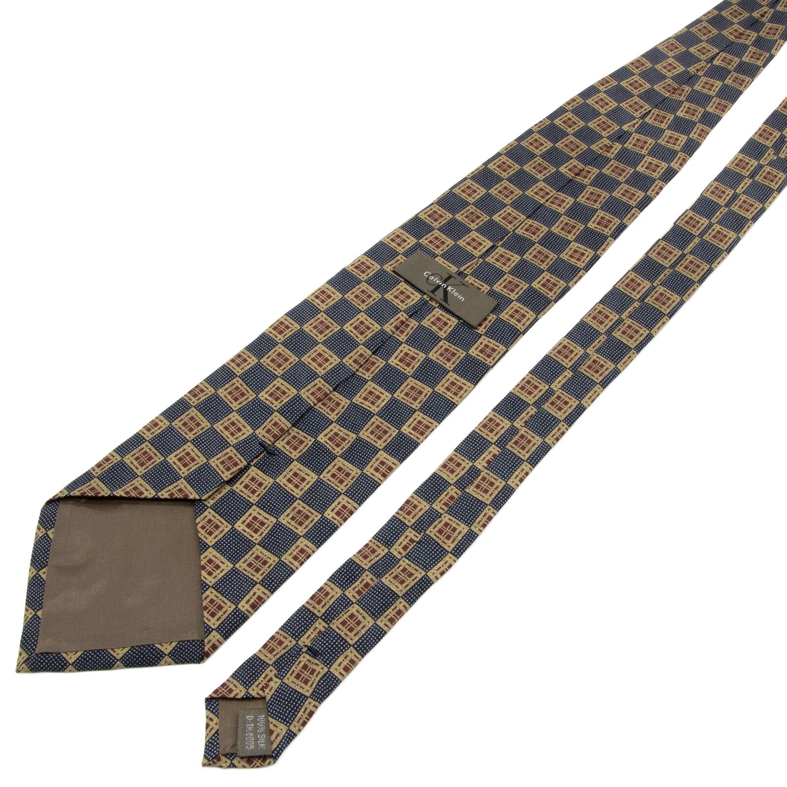 新品同様 送料無料 カルバンクライン ネクタイ シルク 青 ブルー 茶色 ブラウン ベージュ ビジネス 総柄 四角 スクエア ハイブランド P552