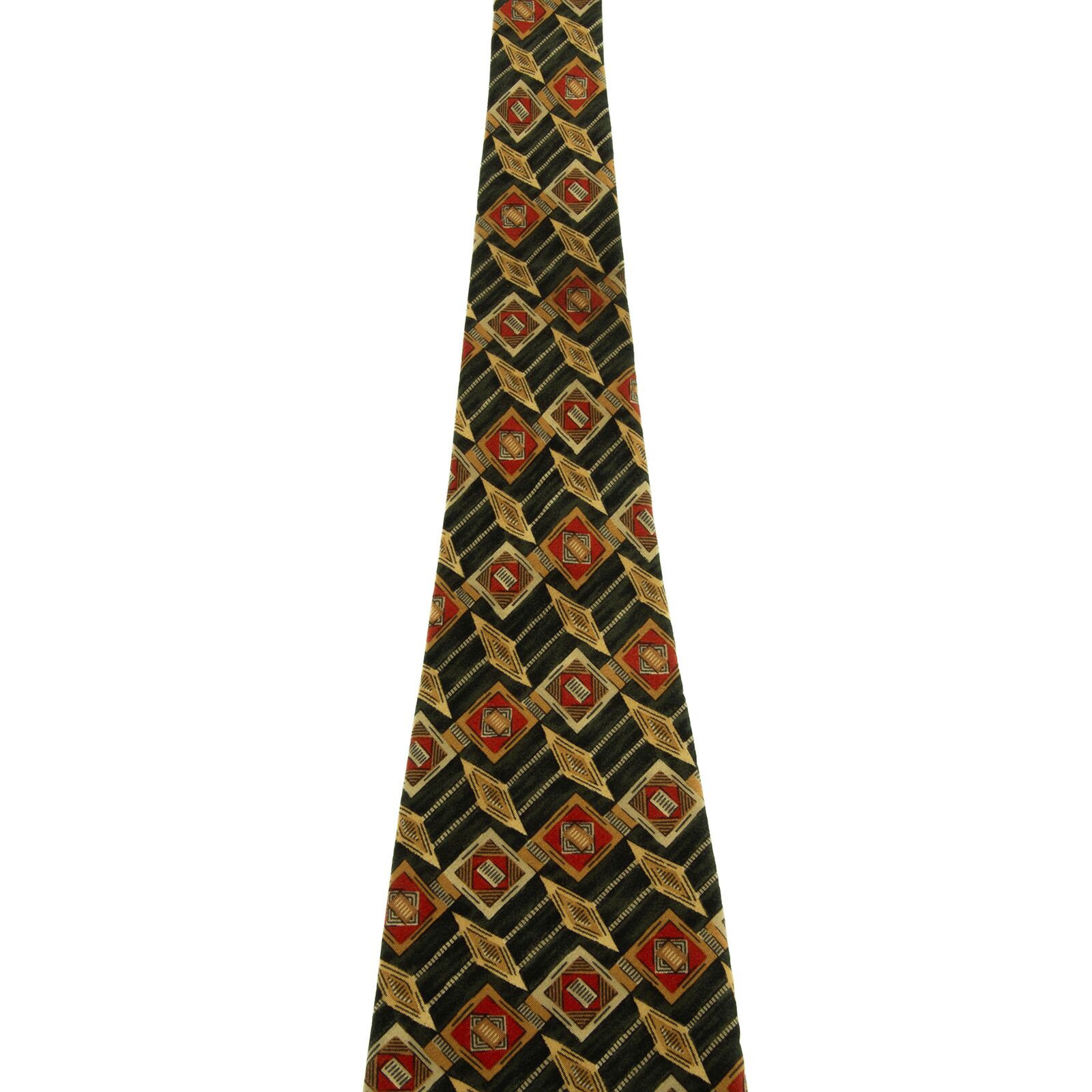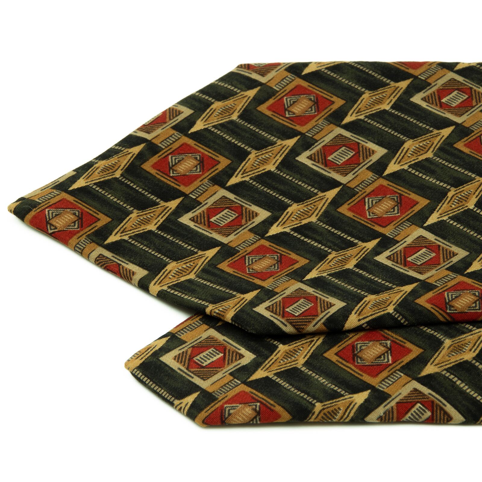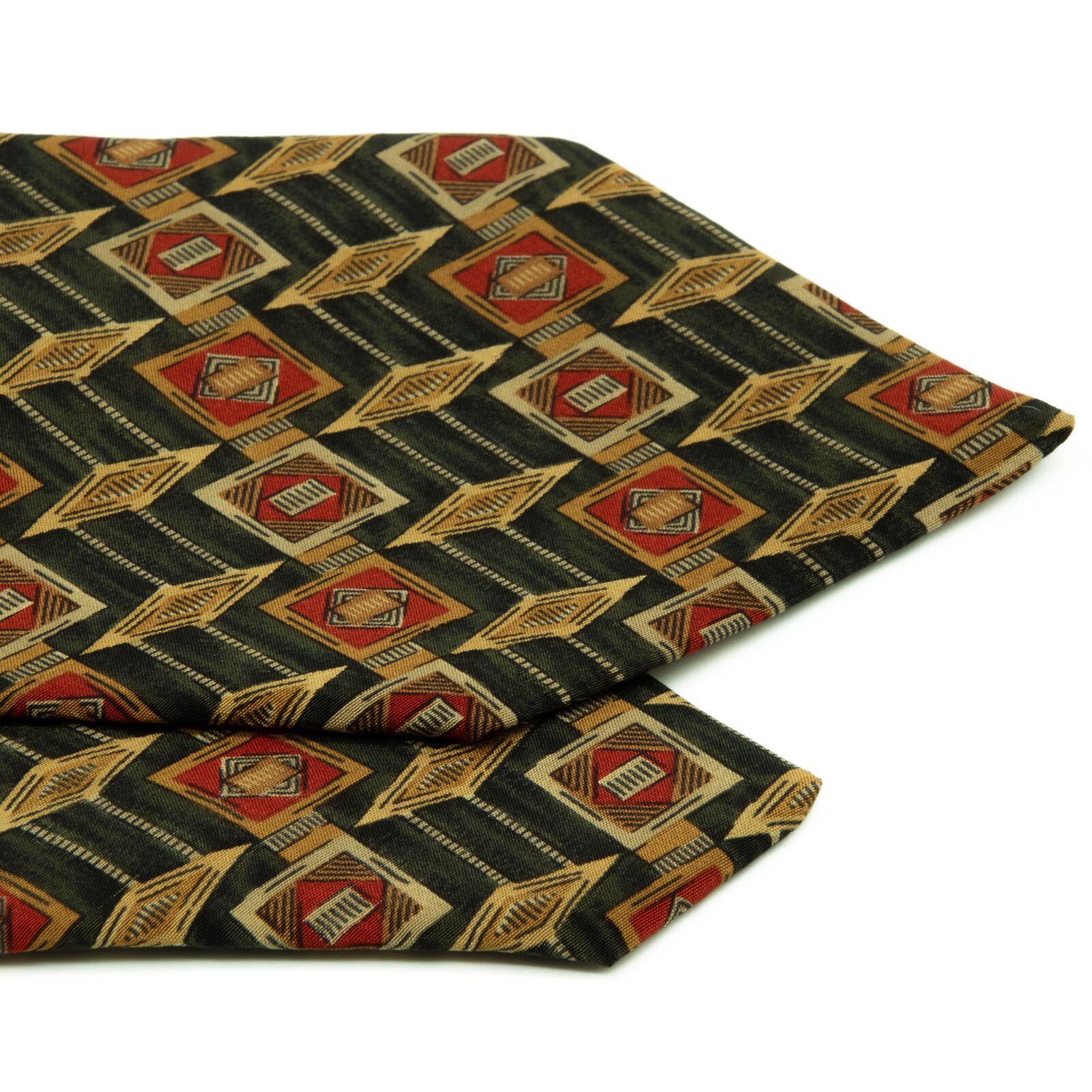 送料無料 ダンヒル ネクタイ シルク 深緑色 赤 レッド 茶色 ブラウン 総柄 Y2K ひし形 四角 幾何学模様 ハイブランド イタリア製 綺麗 P636
