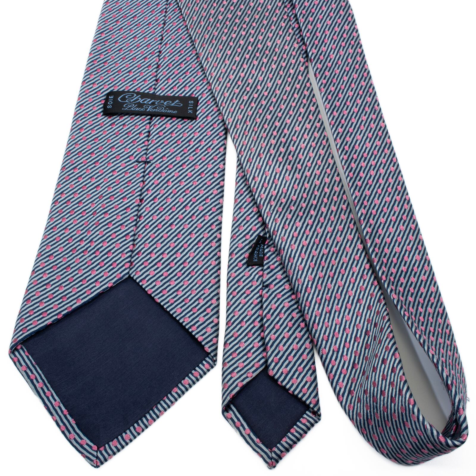 送料無料 シャルベ ネクタイ レギュラータイ ジャガード ネイビーブルー グレーブルー ピンク ストライプ ドット 光沢 ハイブランド S624