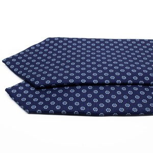 深みのあるネイビーブルーを基調とし、水色やブルーの同系色で描かれたフラワー小紋柄が規則正しく並び、胸元に絶妙なアクセントと華やかさを与えてくれます。