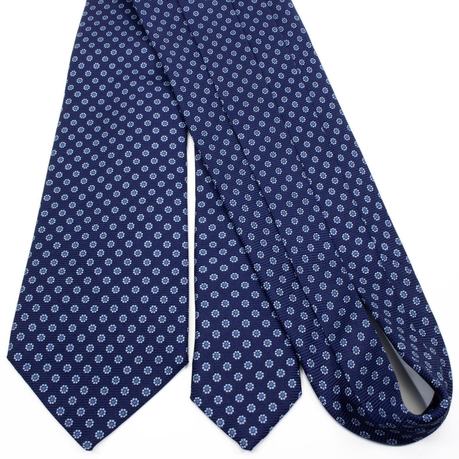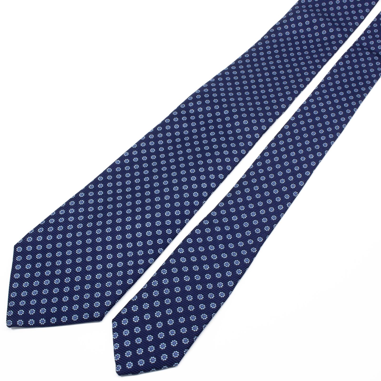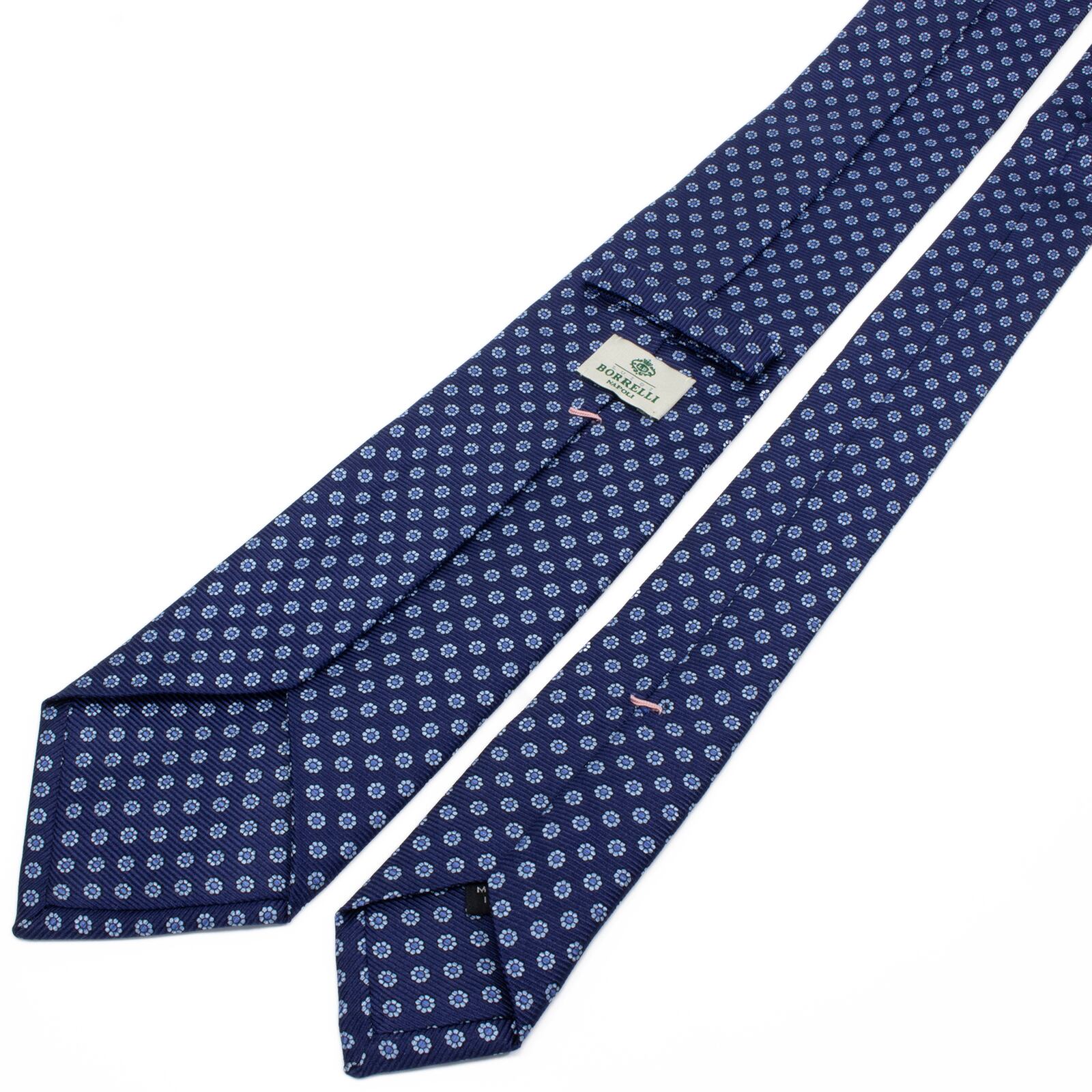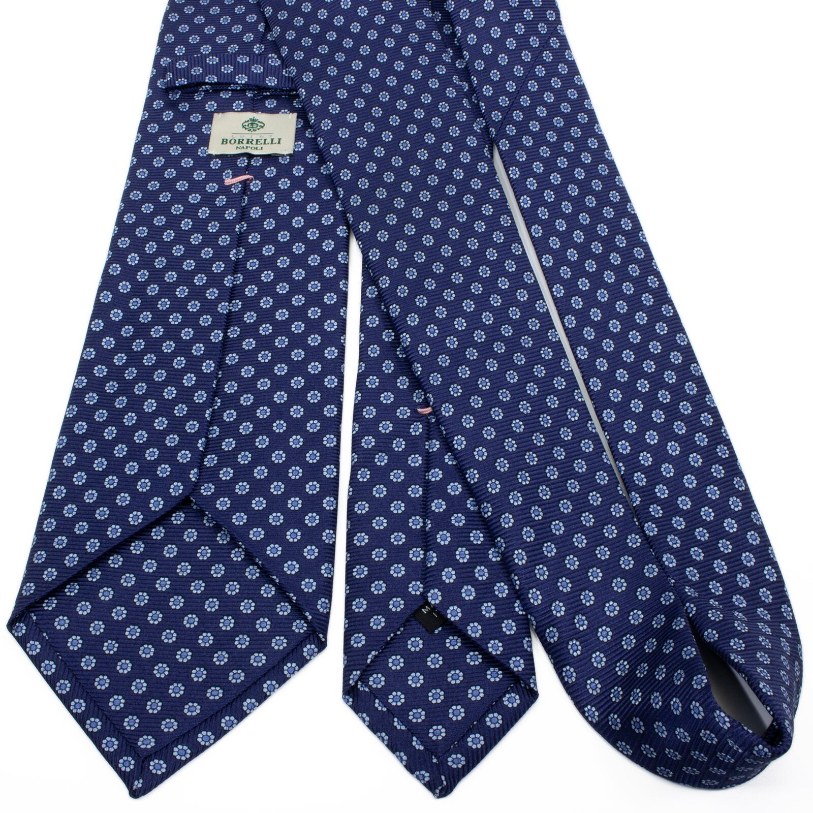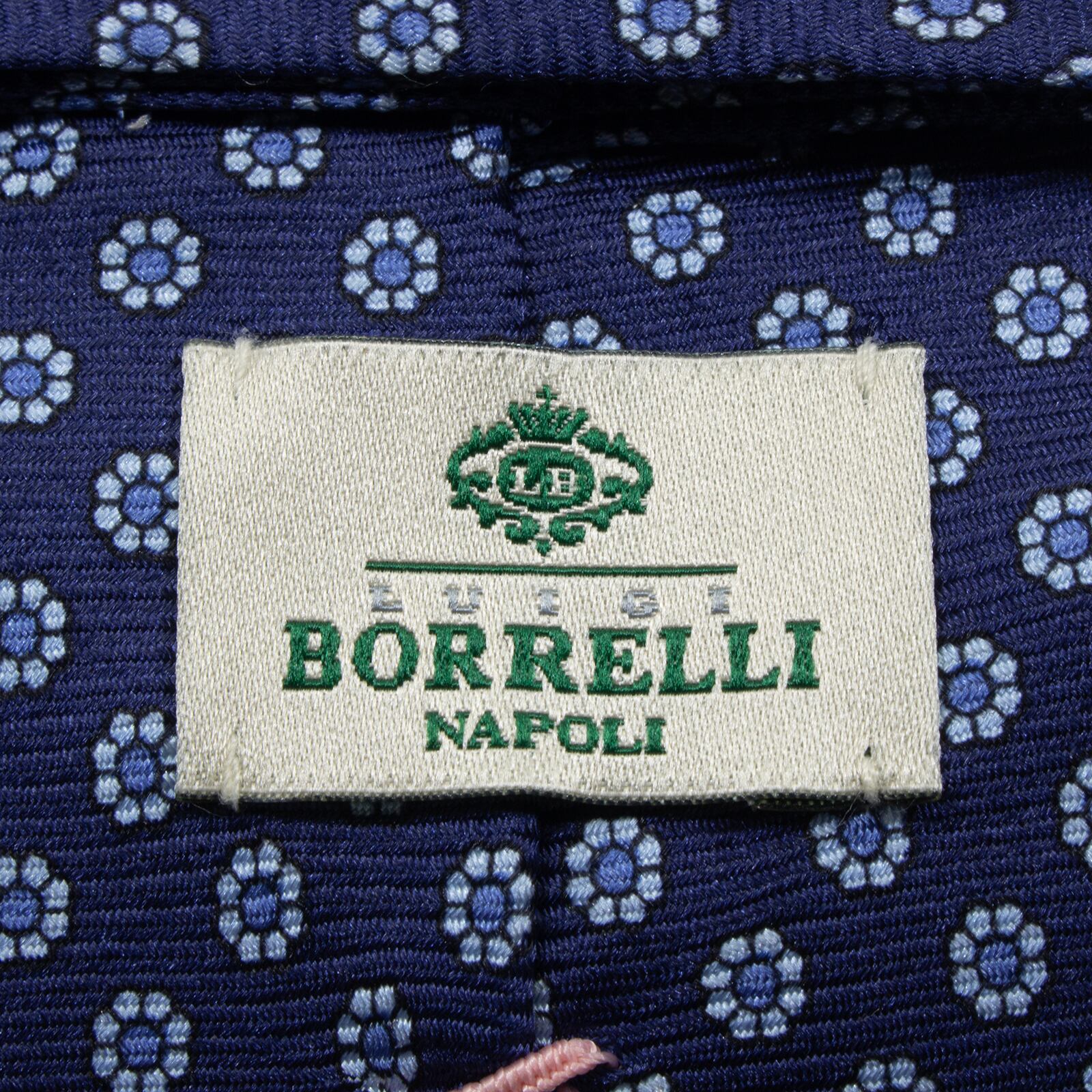 新品同様 送料無料 ルイジボレッリ ネクタイ レギュラータイ ネイビーブルー 水色 青 小紋 総柄 花 フラワー ハイブランド イタリア製 S625