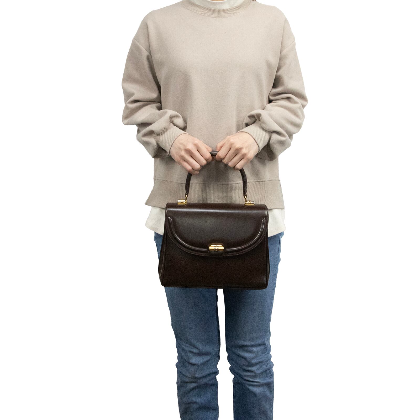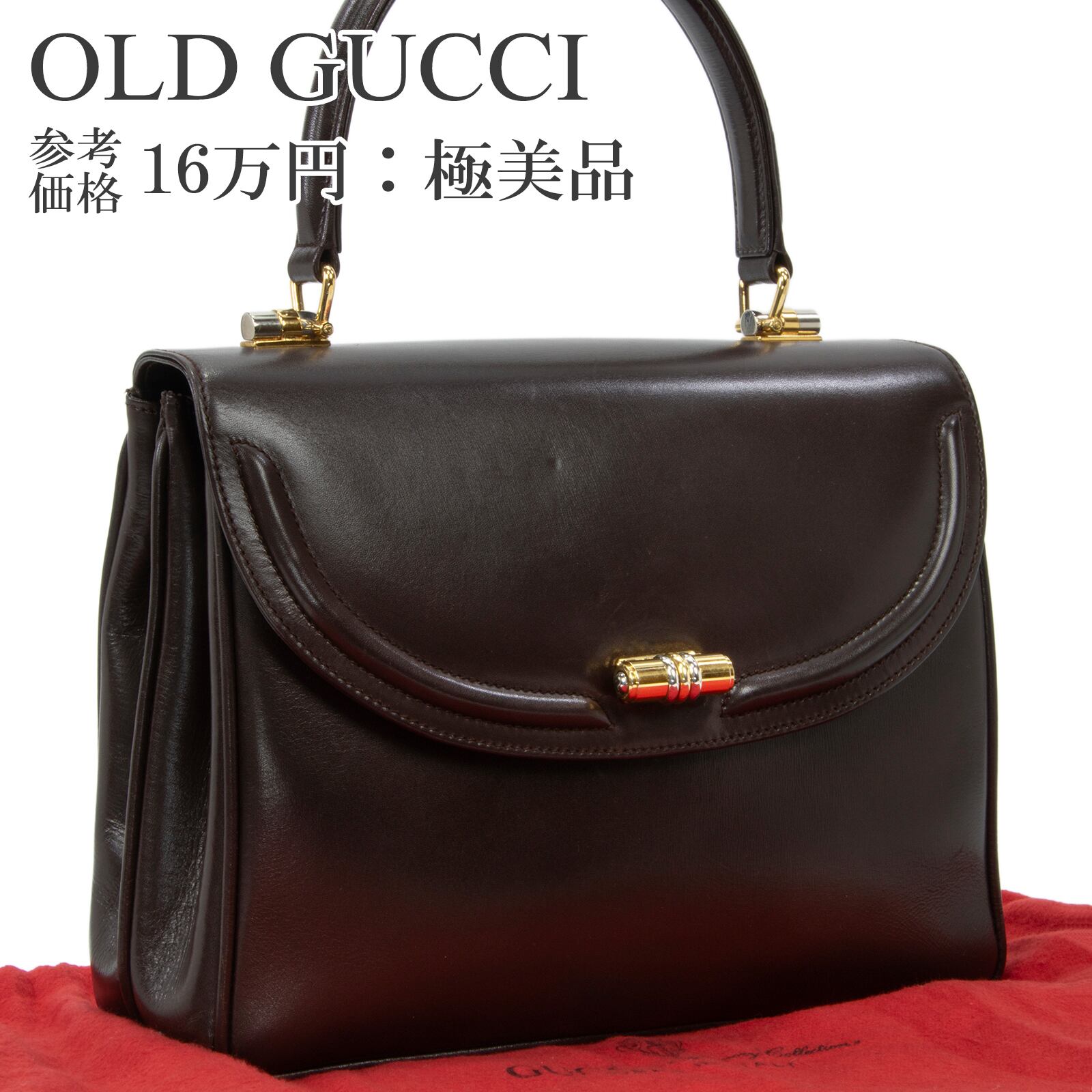 本物 送料無料 オールドグッチ ハンドバッグ レディース 茶色 レア フォーマル パーティーバッグ ヴィンテージ 本革 レザー 鞄 バック F306