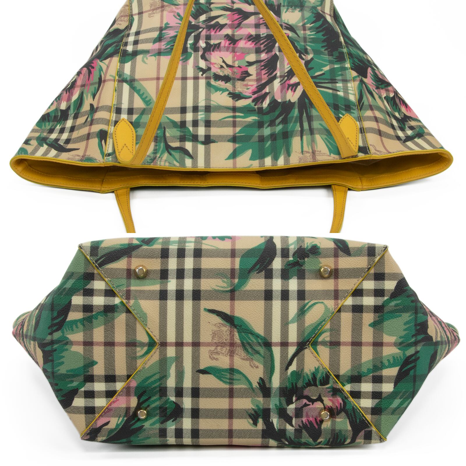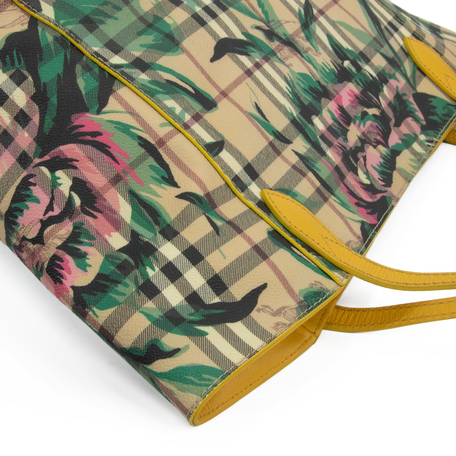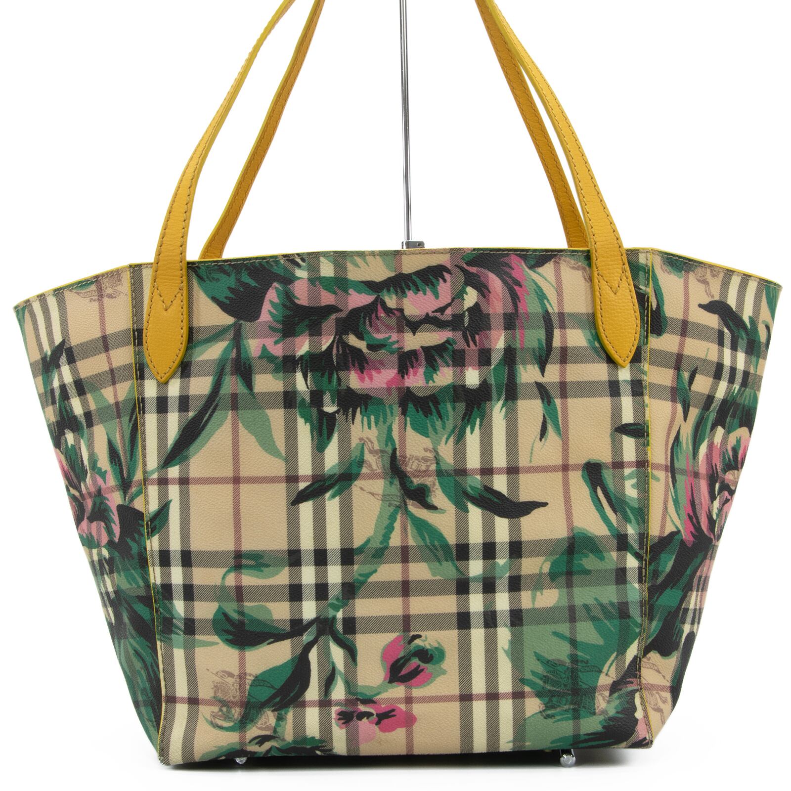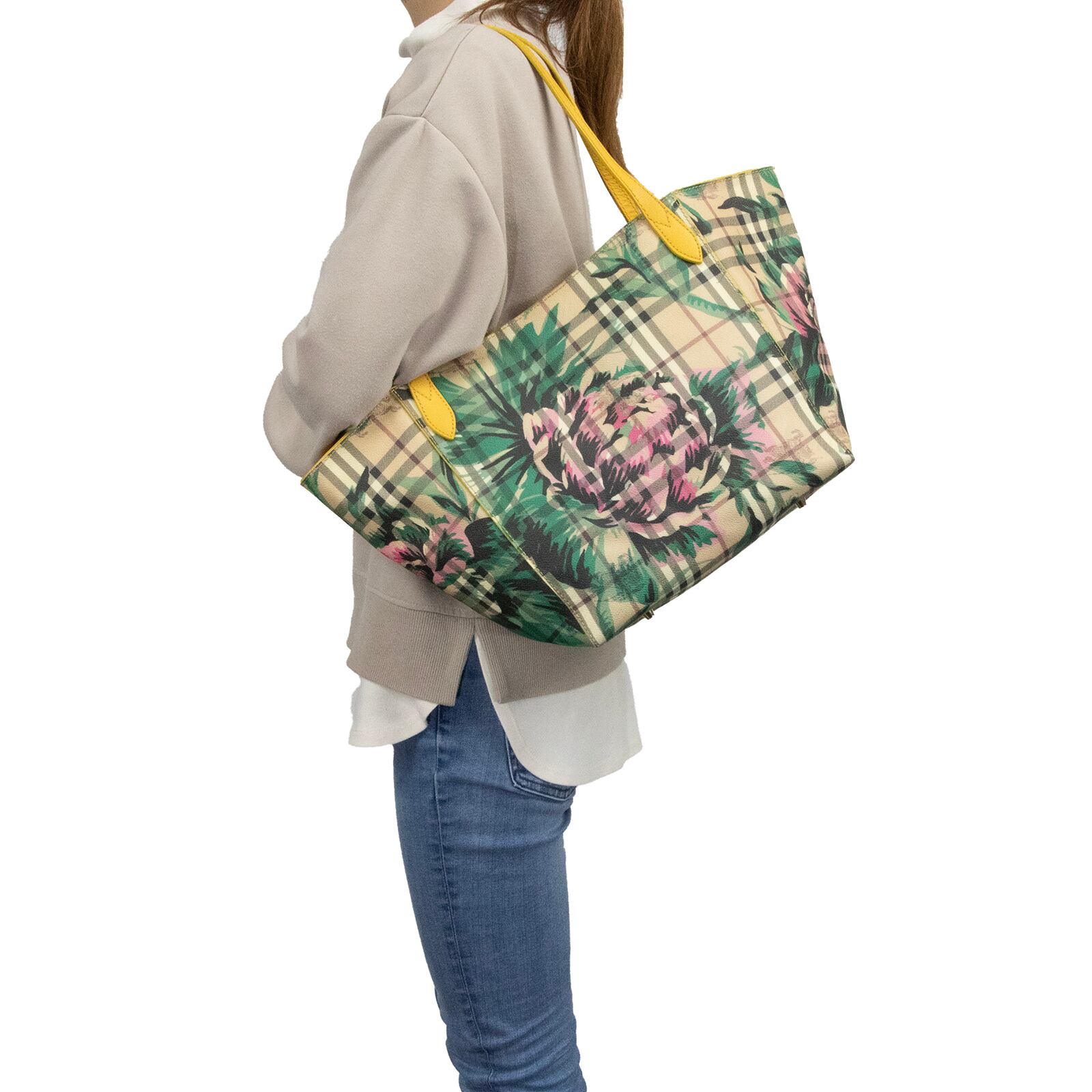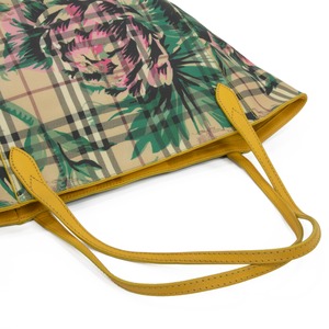 こちらは、伝統のホースロゴと共に大輪の牡丹が優雅な存在感を放っております、バーバリーのヘイマーケットチェック フローラルプリント カンタベリー・トートバッグでございます。