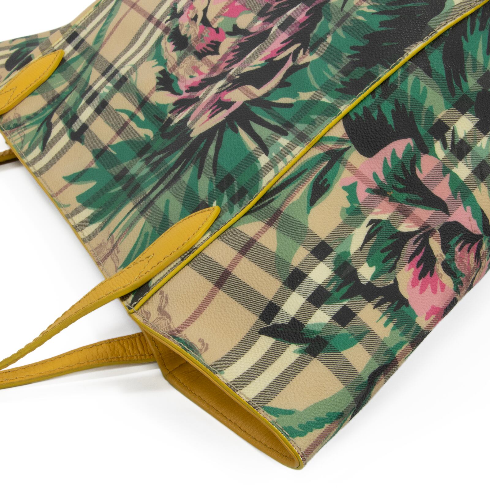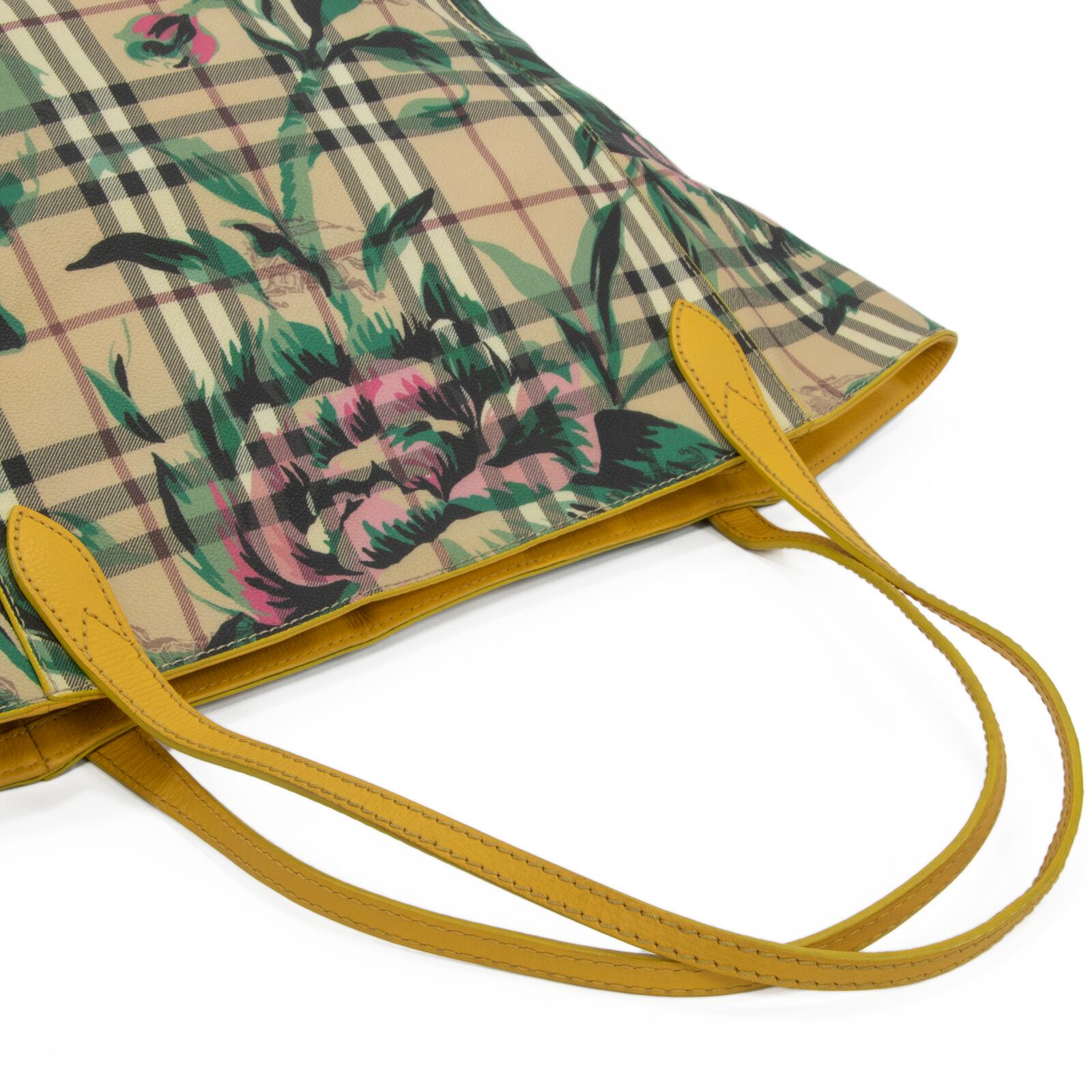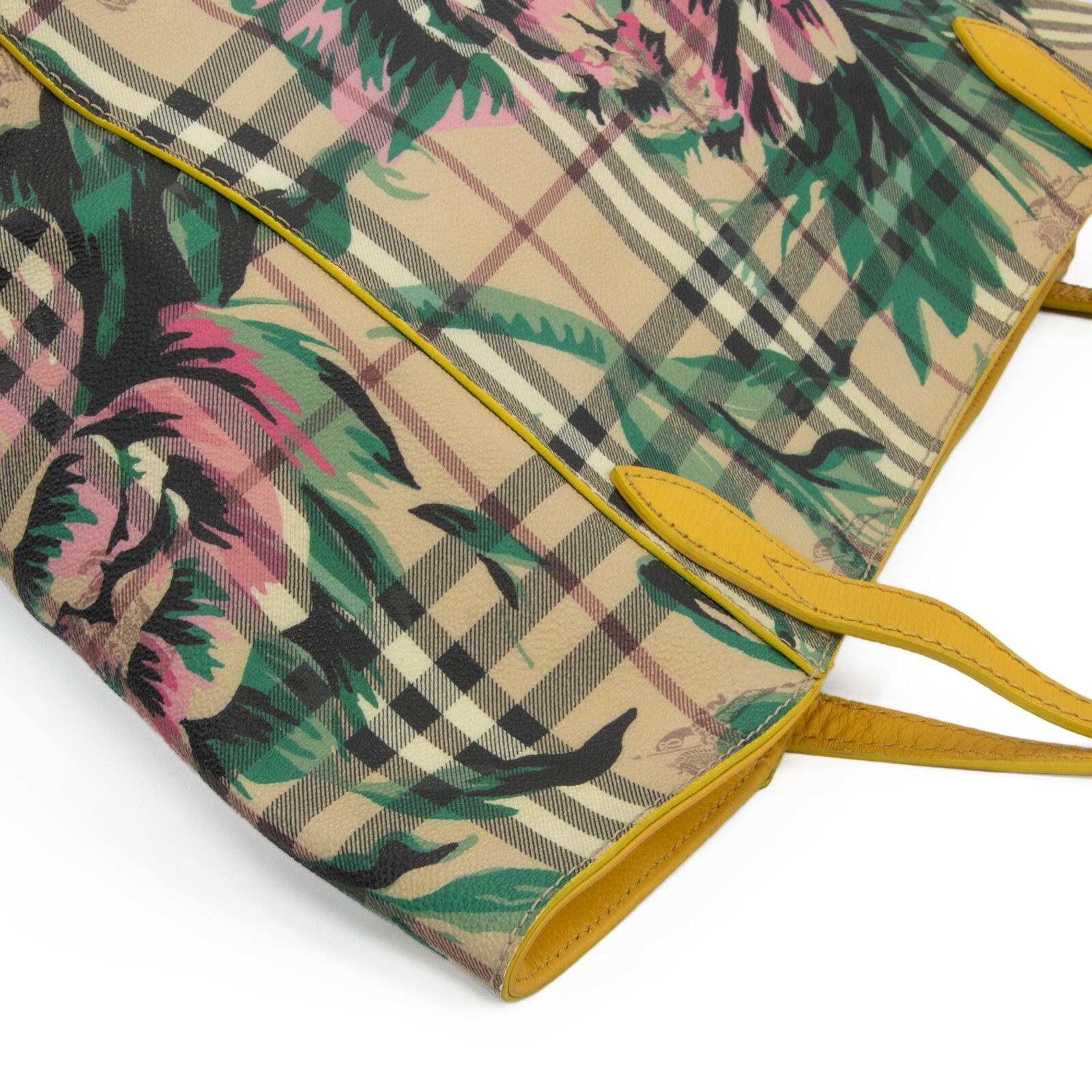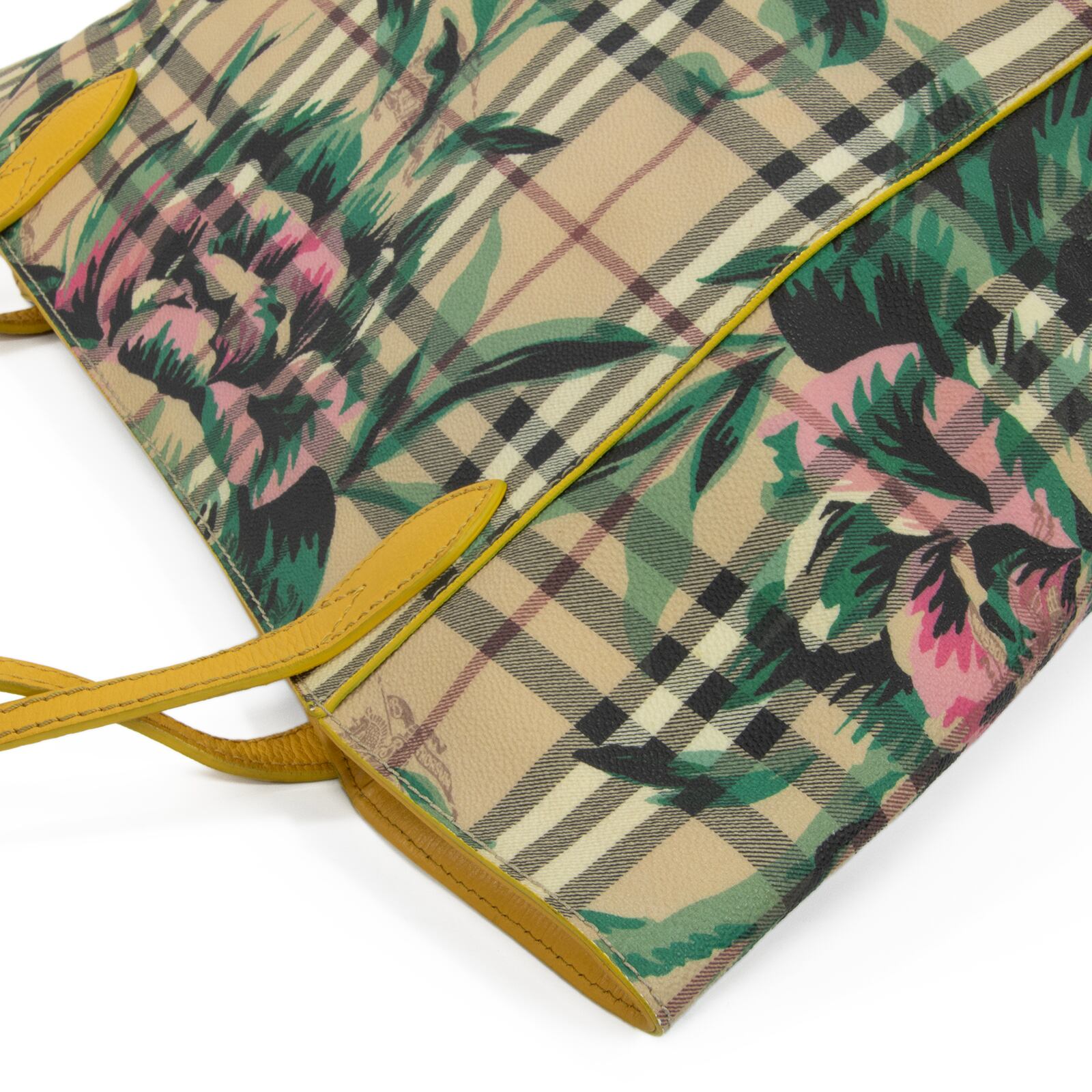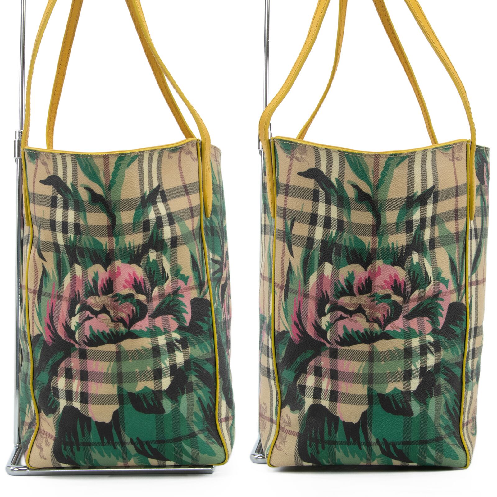 こちらは、伝統のホースロゴと共に大輪の牡丹が優雅な存在感を放っております、バーバリーのヘイマーケットチェック フローラルプリント カンタベリー・トートバッグでございます。