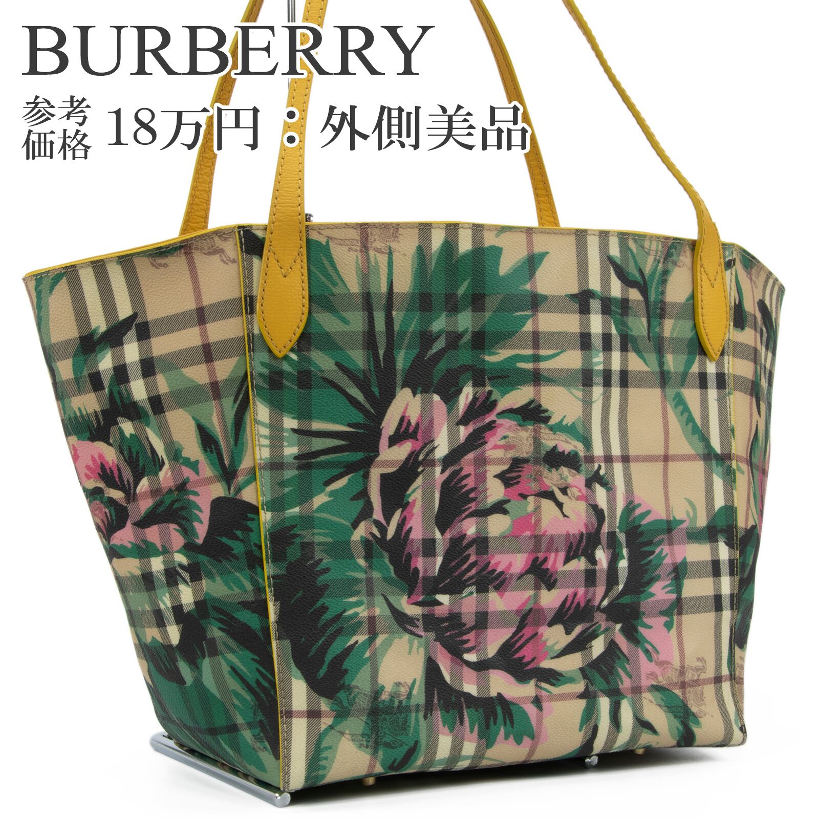本物 送料無料 バーバリー トートバッグ ショルダーバッグ レディース チェック ベージュ ピンク 黄色 大きめ 花 馬 ロゴ 鞄 バック F307