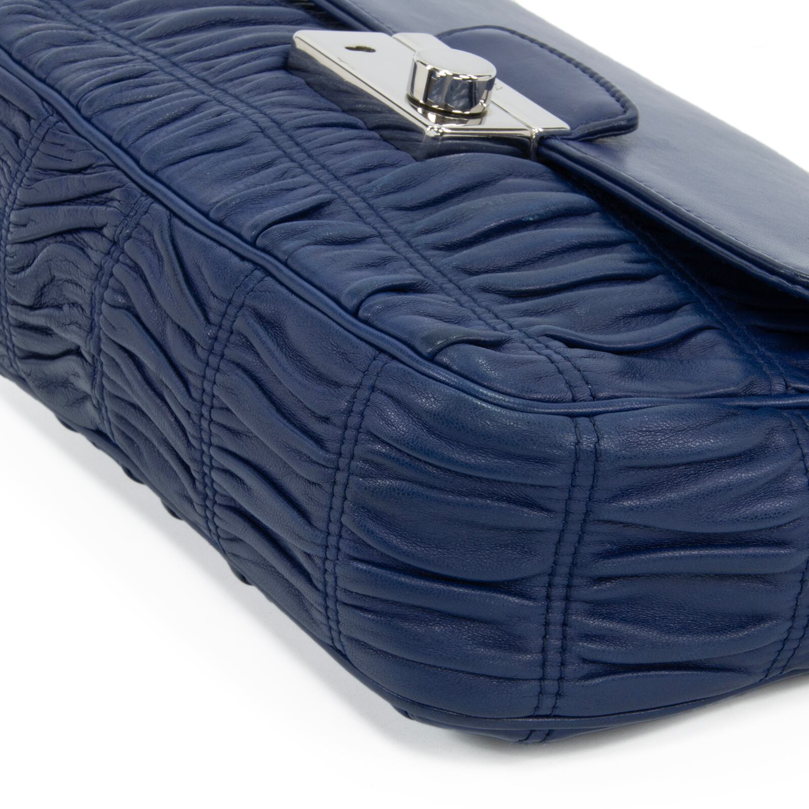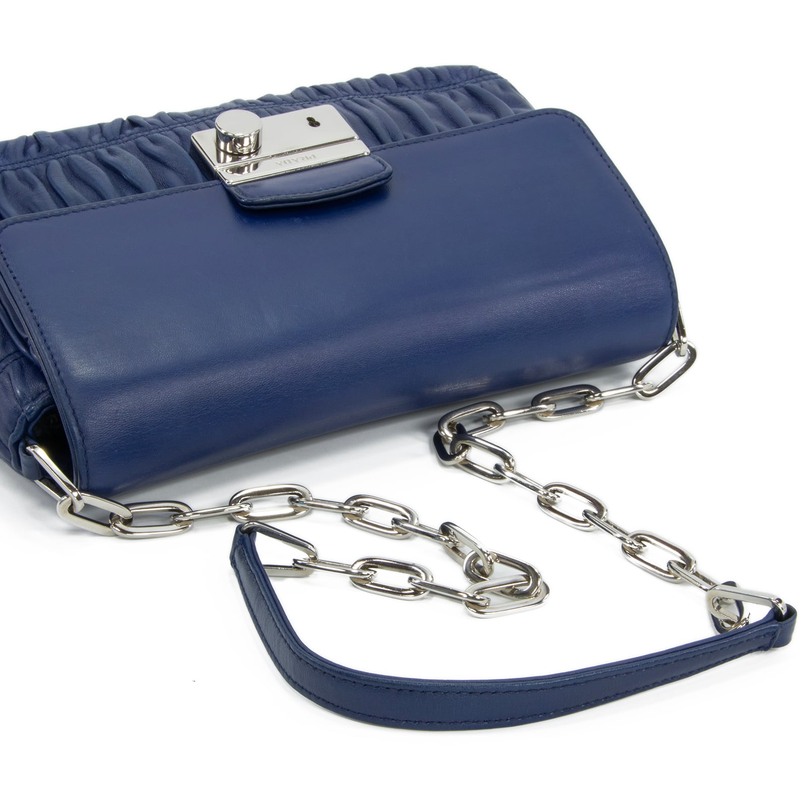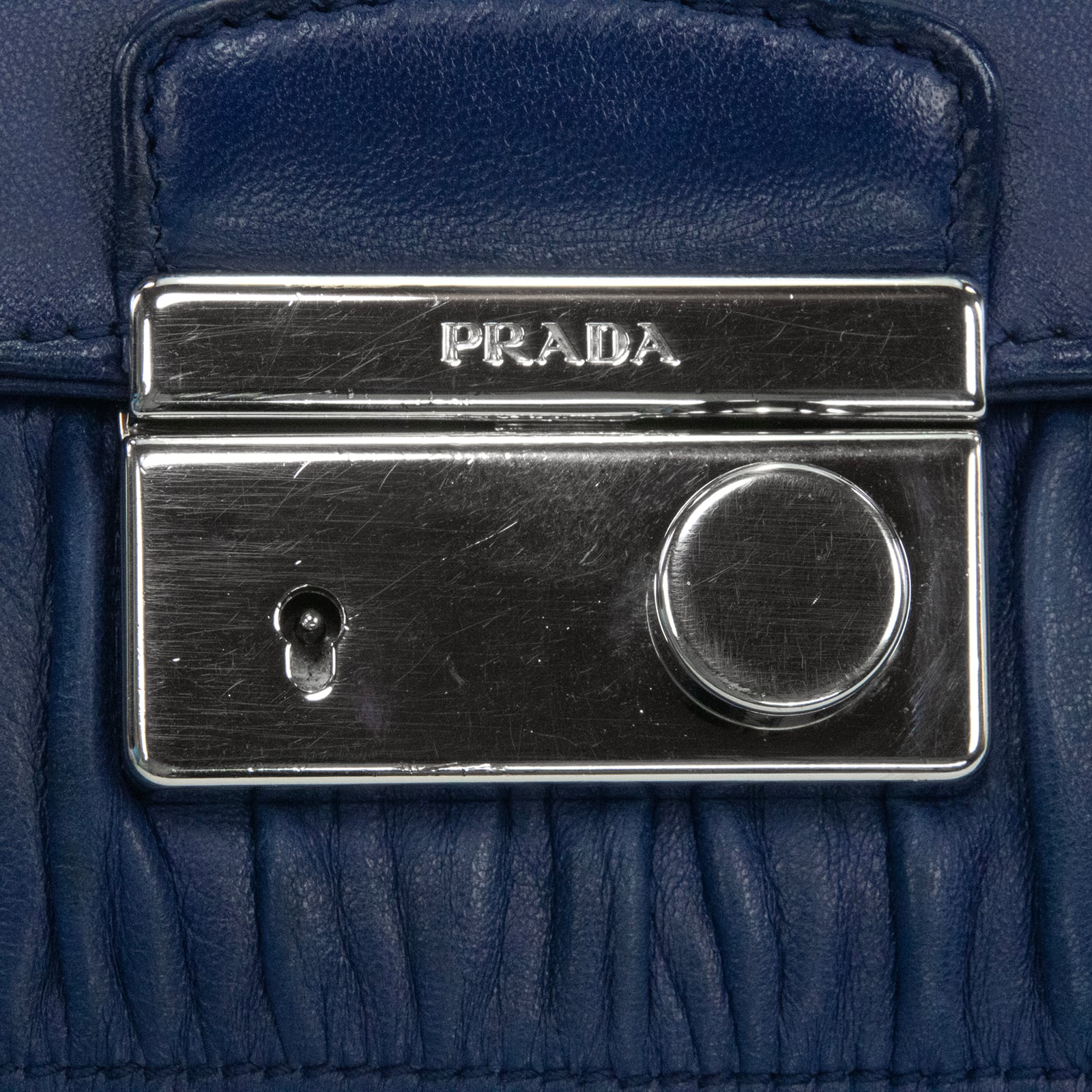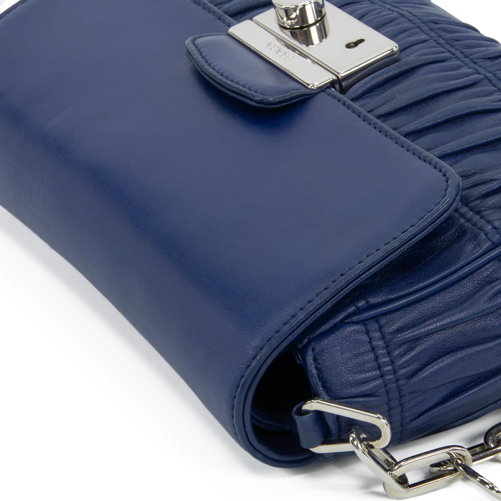 本物 送料無料 プラダ ショルダーバッグ レディース 青 ブルー 珍しい Y2K 00s 小さめ チェーン ギャザー ロゴ 本革 レザー 鞄 バック F308
