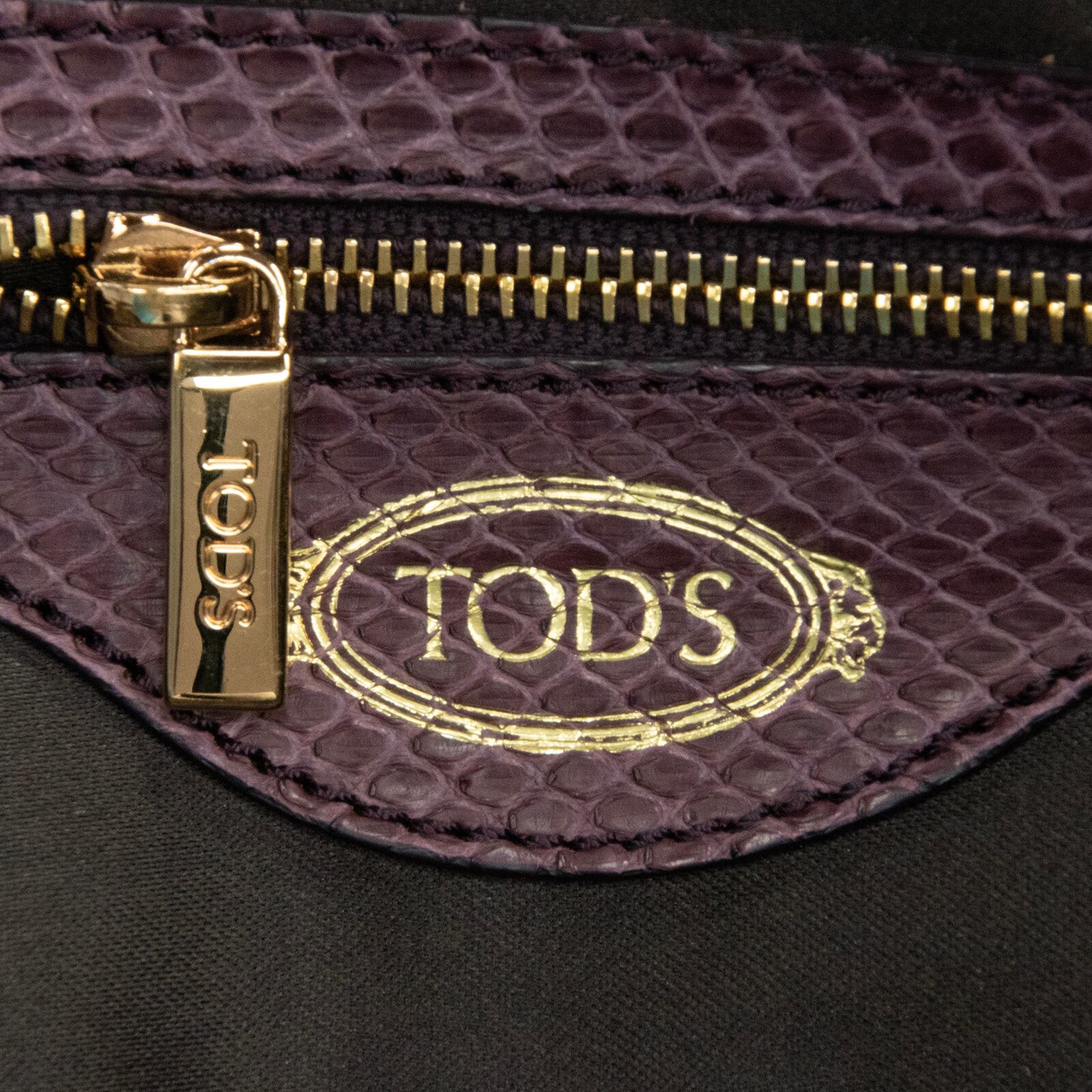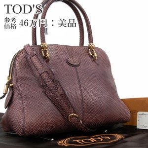 本物 送料無料 トッズ ショルダーバッグ ハンドバッグ レディース パイソン セラ 淡い紫 レア 蛇の革 斜め掛け 綺麗 ロゴ 鞄 バック F309