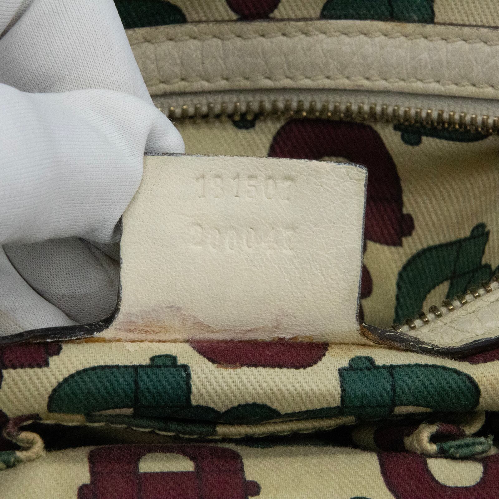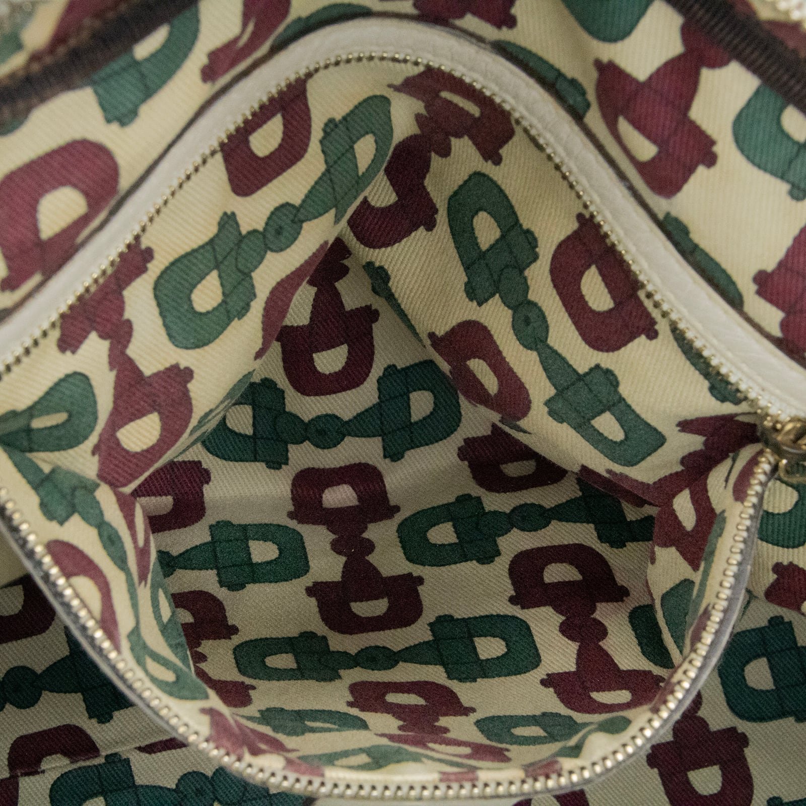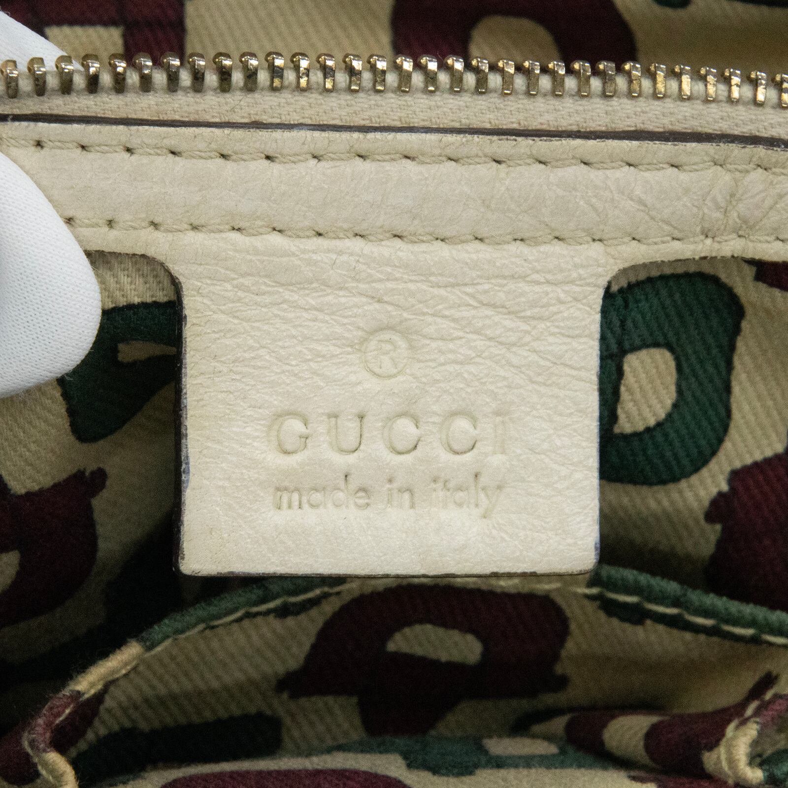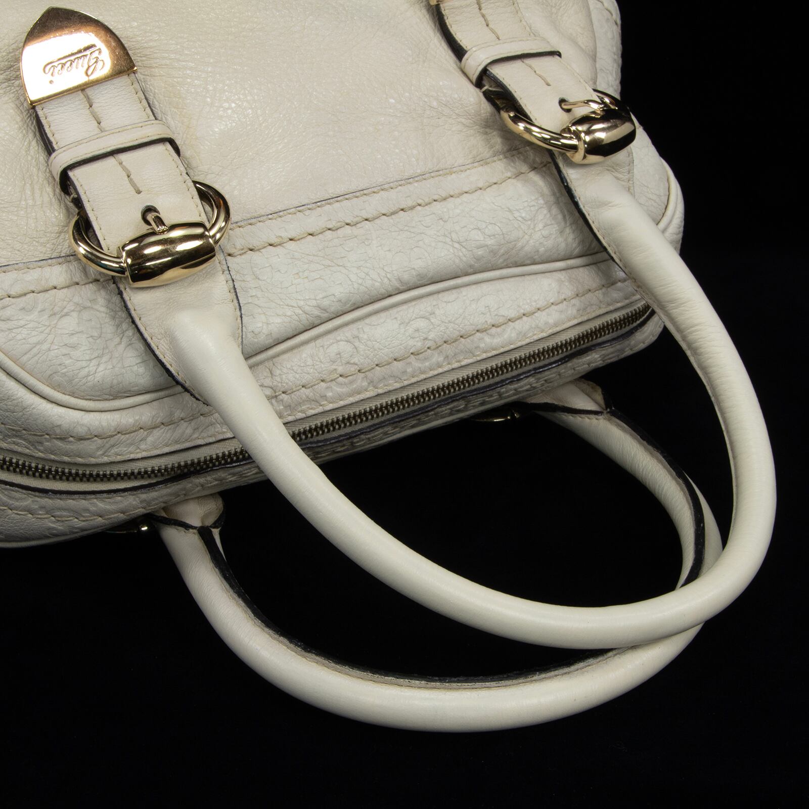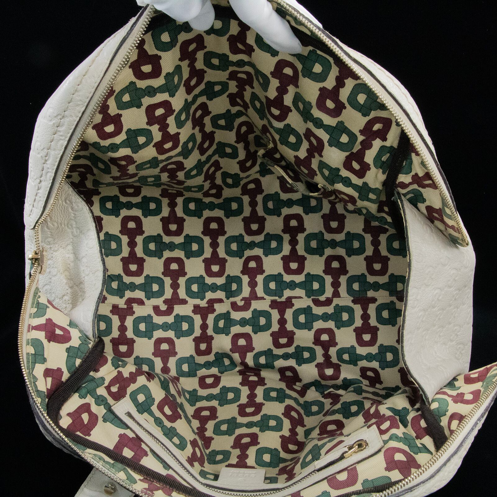こちらは、洗練された白のレザーに馬具のモチーフが映える、グッチのシニョーリア・ラージ・グッチシマ・ハンドバッグでございます。