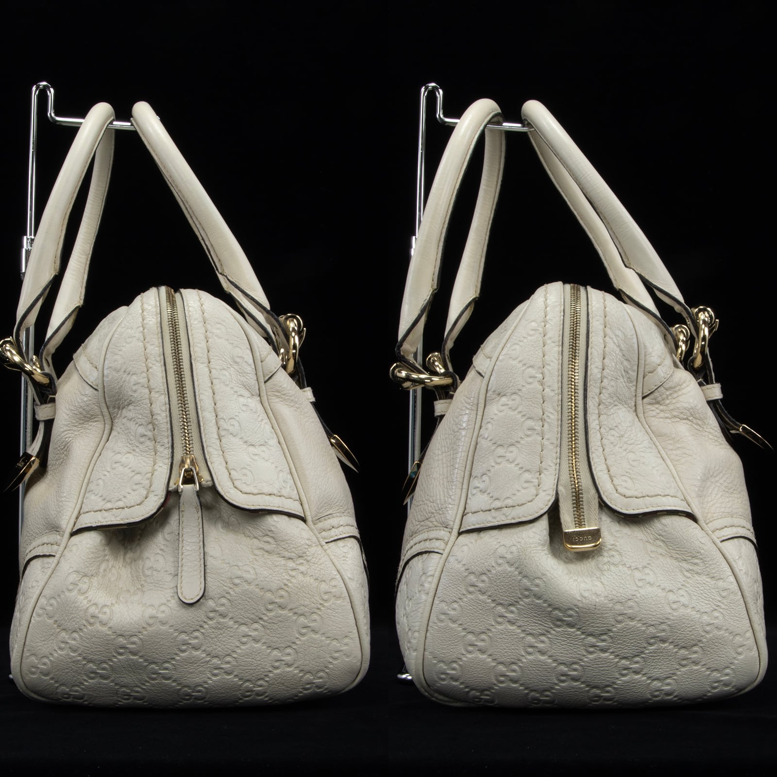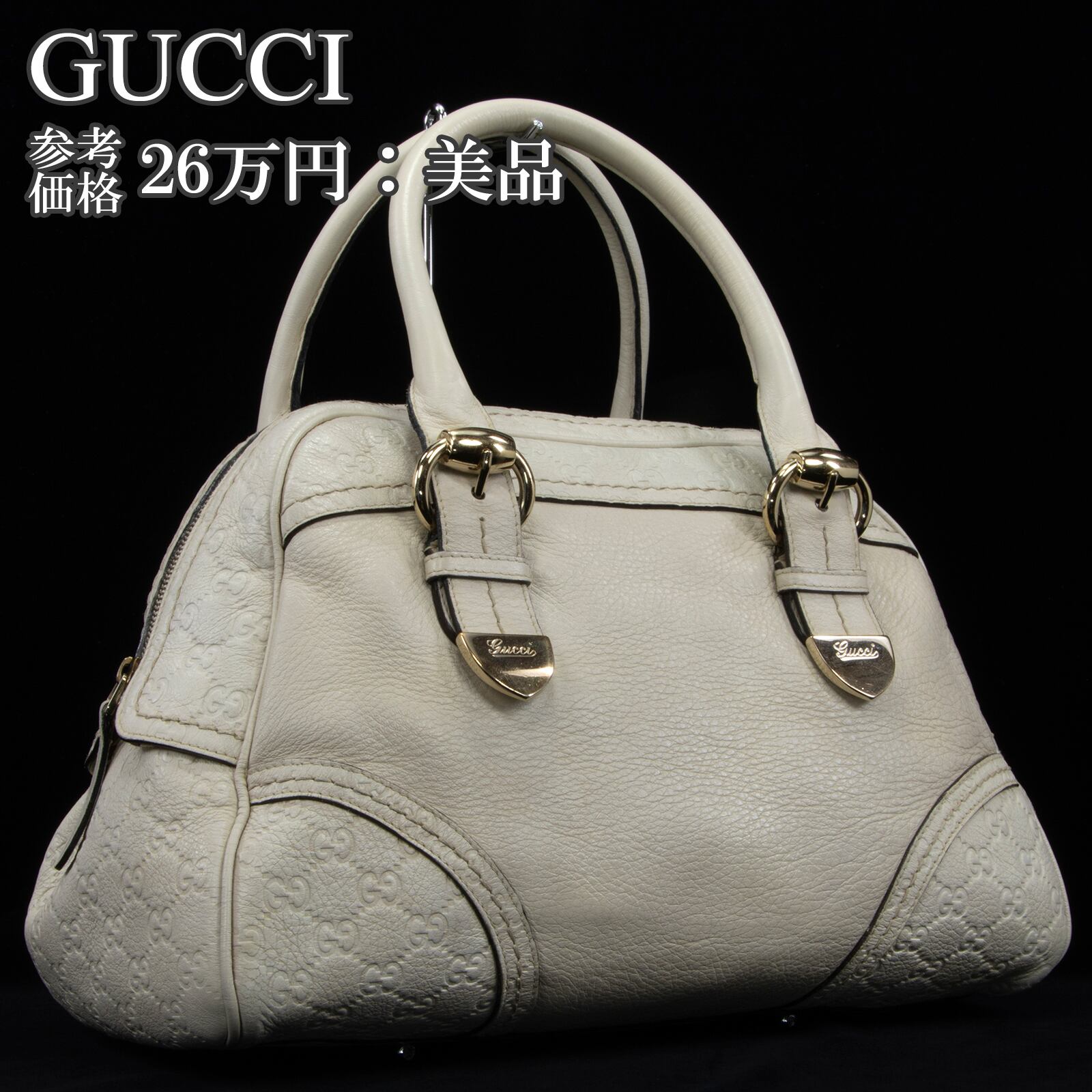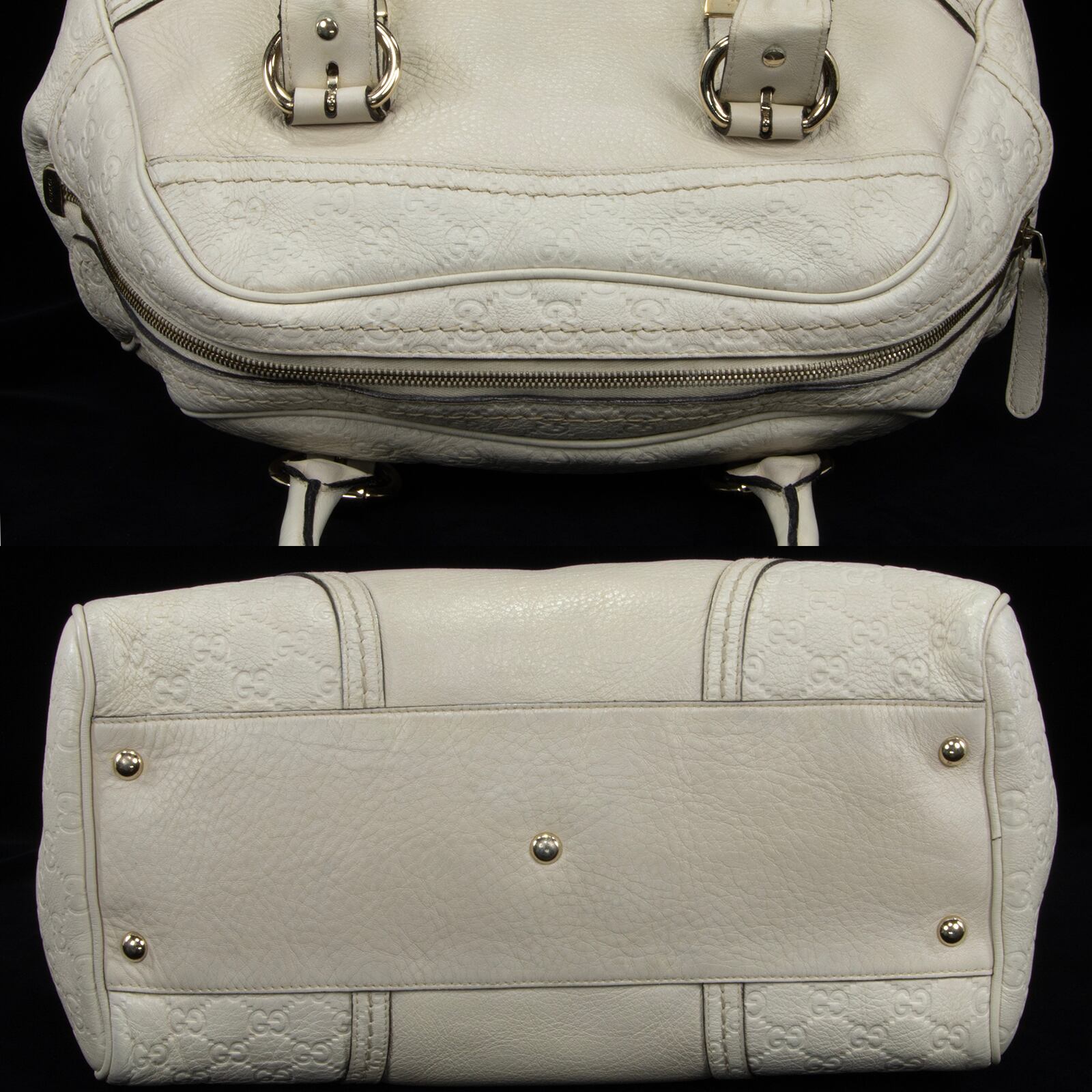 本物 送料無料 グッチ ハンドバッグ メンズ レディース グッチシマ 白 オフホワイト 旅行 大きめ GGロゴ マーク 革 レザー 鞄 バック F310