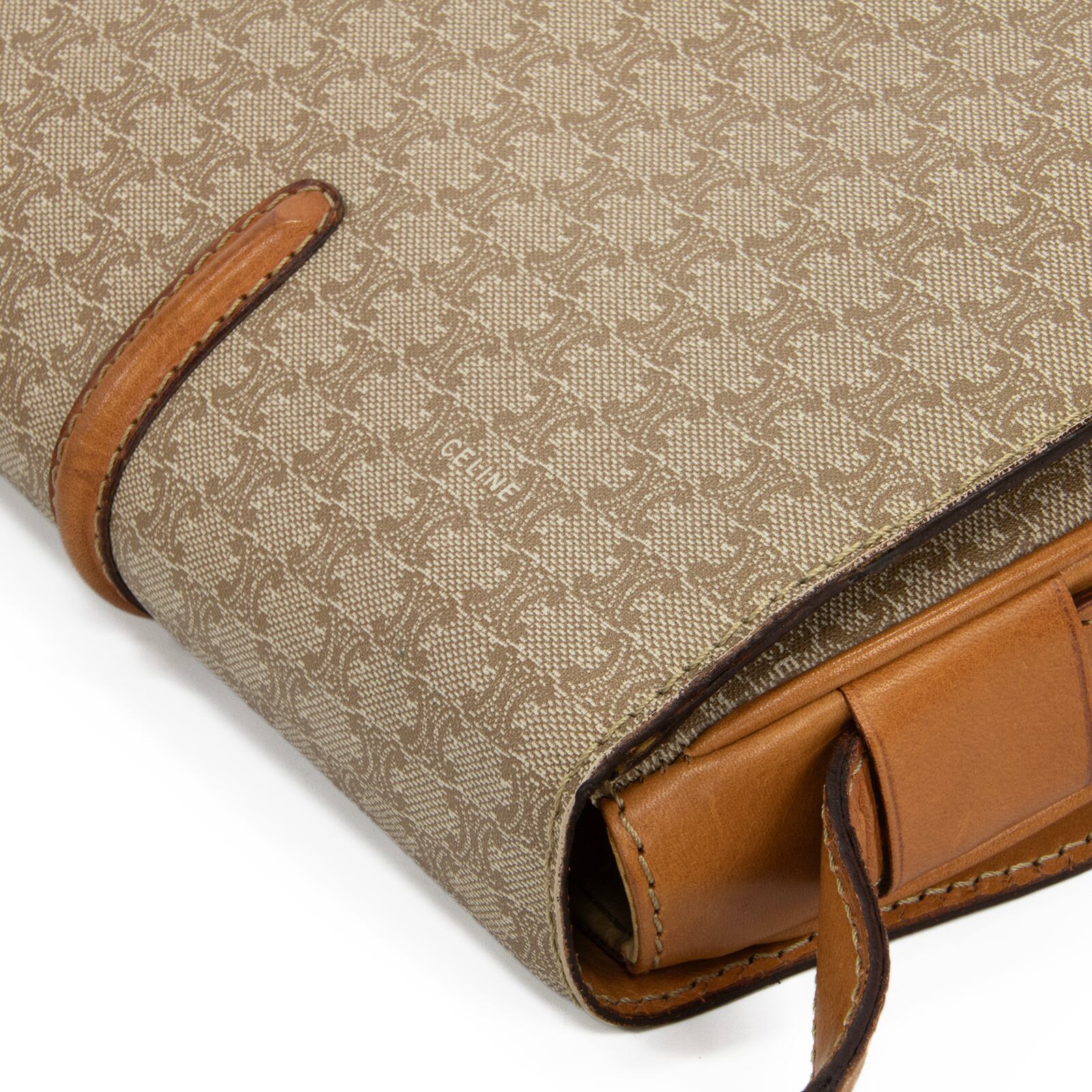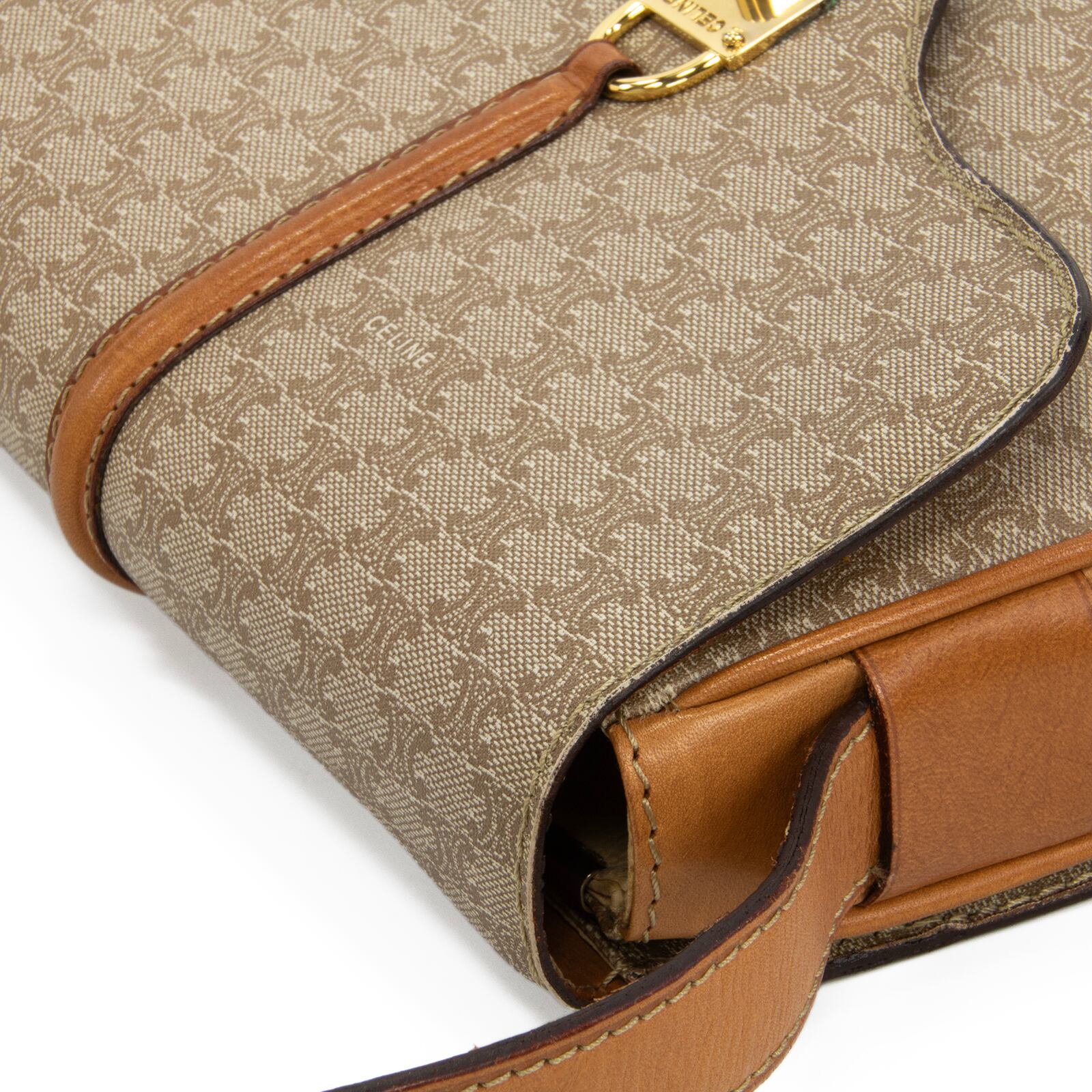 こちらは、伝統的なブラゾンロゴが気品あふれる表情を演出している、オールドセリーヌのマカダム・ショルダーバッグでございます。
