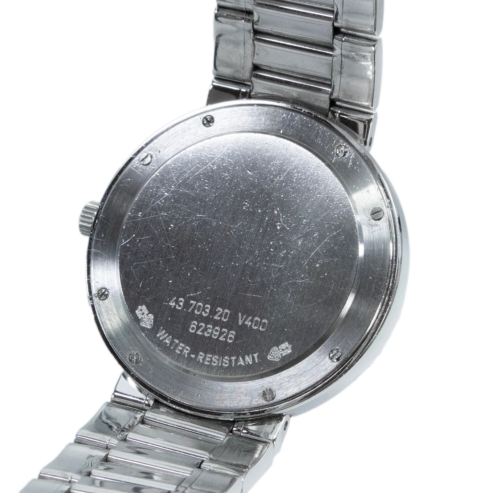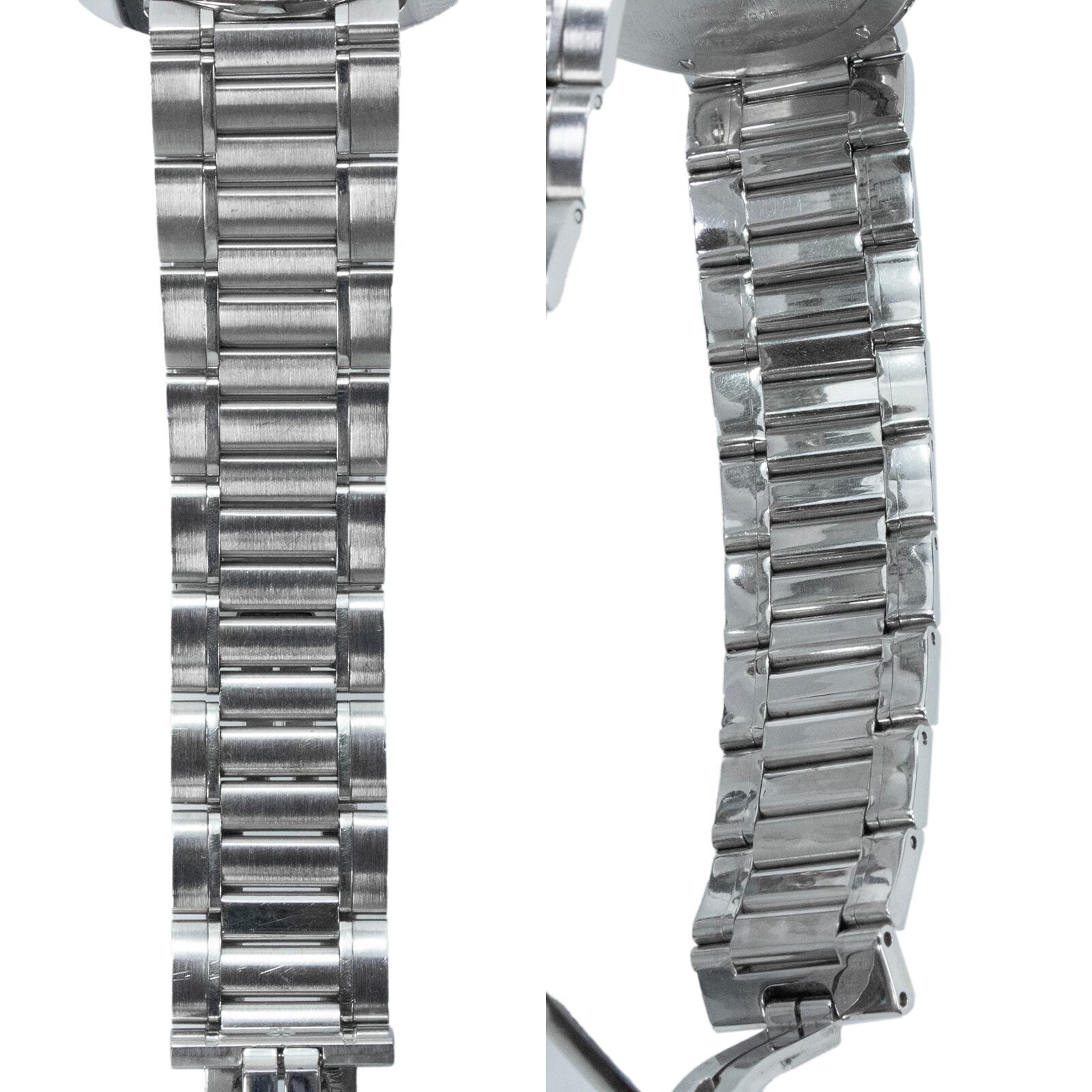 美しいネイビーブルーの文字盤とシルバーのメタルブレスレットが見事に調和し、腕元に絶妙なアクセントを与えてくれます。