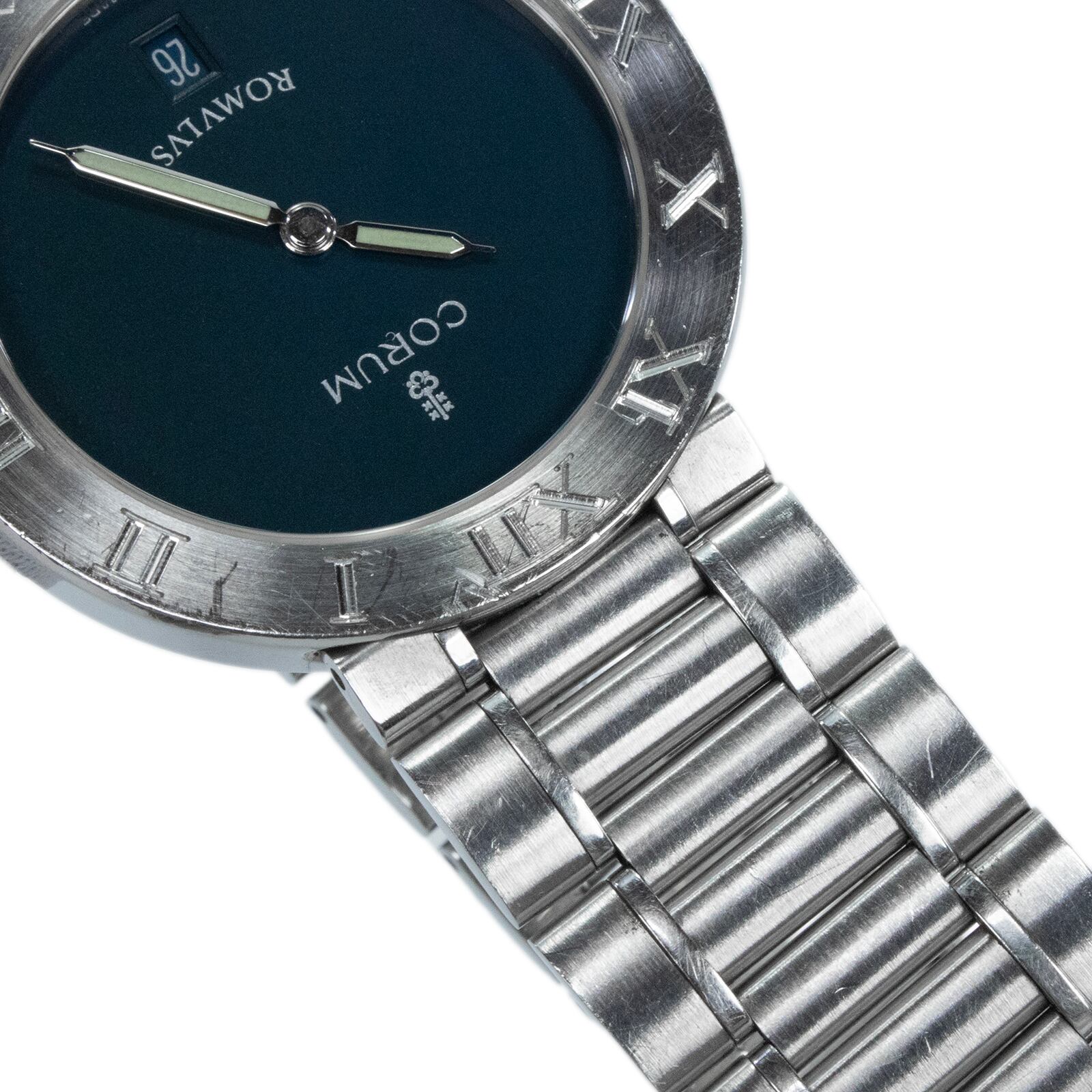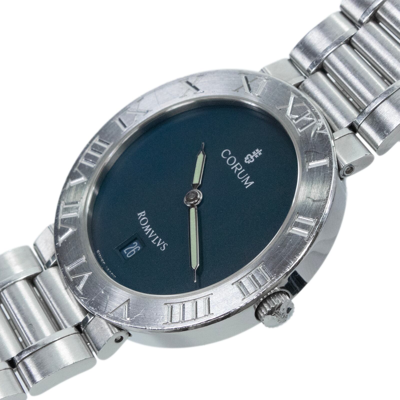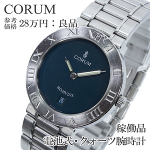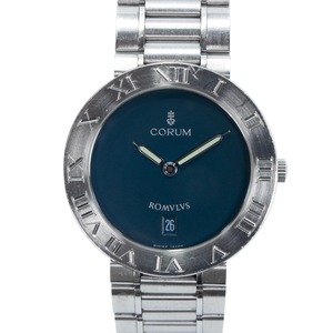 稼働品 コルム 腕時計 クォーツ 2針 メンズ ロムルス 43.703.20 V400 ネイビーブルー ローマン文字ベゼル シンプル ロゴ レア スリム X544